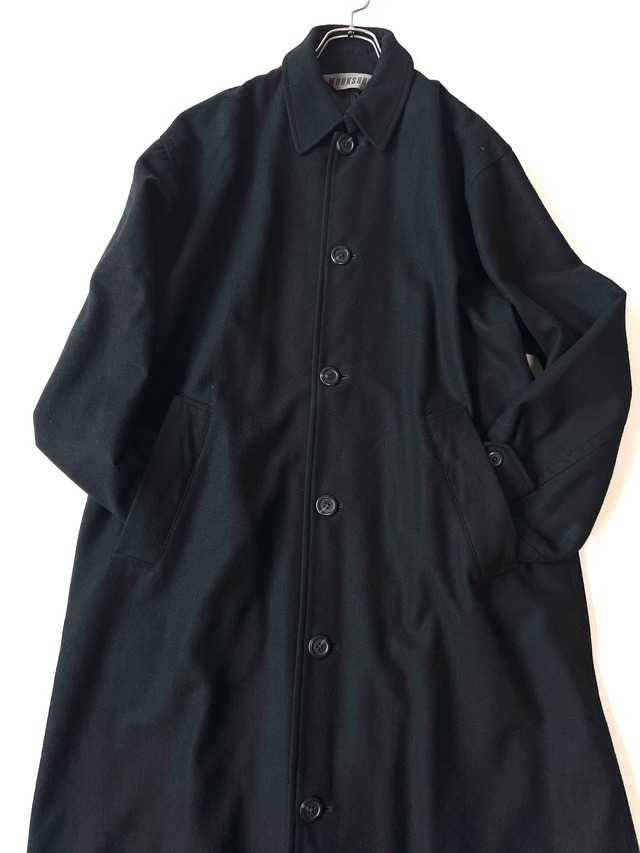 「WORKSHOP」は、メインラインである「Y's for men」よりも、もう少しカジュアルで日常的なワークウェアの要素を取り入れつつ、ヨウジヤマモトの持つ本質的な美意識を反映させたラインです。 シンプルで質の高い素材、機能的なディテール、そして着心地の良さを重視した、メインラインの哲学を受け継ぎながらも、より普段の生活に溶け込むような、親しみやすさを持つ作品です。 上質なミドルメルトンを使用し、重厚感がありながらも、体を包み込むようなゆったりとしたオーバーサイズシルエット。 当時の西洋美学、身体にフィットさせる服作りとは一線を画し、黒を基調とし、服と身体の間の空気感を大切にする山本耀司氏の美意識が反映されています。 少々の使用感や微細なキズはありますが、目立つ汚れやダメージはありません。 チンストラップのボタンは一部、代替えしてあります。 フリーサイズで男女問わず着こなしていただけます。 ブラック size FREE 着丈110cm 肩幅53cm 身幅67cm 袖丈60cm 表地 毛85% ナイロン15% 裏地 ポリエステル100%
