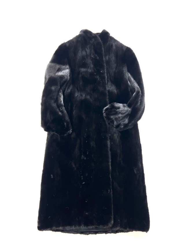 最高級のファーブランドである 【SAGA MINK 】サガミンク 厳格な品質基準をクリアした、シルバーラベルのミンクロングコートです。 SAGA MINK シルバーラベル: 『Superb Quality Ranched Mink』(極上の品質の養殖ミンク)」を証明するラベルです。数あるミンクの中から特に高品質なものだけが選ばれています。 1980年後半は毛皮の黄金期とも呼ばれ、フルレングスのミンクコートが非常に人気を博していました。 光沢のある艶やかな漆黒のミンクで、毛足が密で均一に揃っています。指で触れると、とろけるような滑らかさと、ずっしりとした豊かな量感が感じられます。 裏地には美しい光沢のあるサテン生地が使用されており、毛皮と裏地の継ぎ目には丁寧なパイピング処理が施されています。細部にわたる丁寧な仕立てが、このコートの耐久性と着用時の快適性、そして高級感を高めています。 クラシックなロング丈で、全身を暖かく包み込むエレガントなデザインです。袖はゆったりとしたボリュームラインで動くたびに毛皮の持つゴージャスなドレープが際立ちます。 最高品質で保温性を誇り、寒い季節のフォーマルな場はもちろん、日常の装いにもワンランク上の気品と華やかさを添えてくれます。 毛皮特有の匂いはありますが、特筆するようなダメージや汚れはありません。毛並みの良い上質なコンディションです。 size 13号 着丈109cm 肩幅43cm 身幅55cm 袖丈56cm ミンク