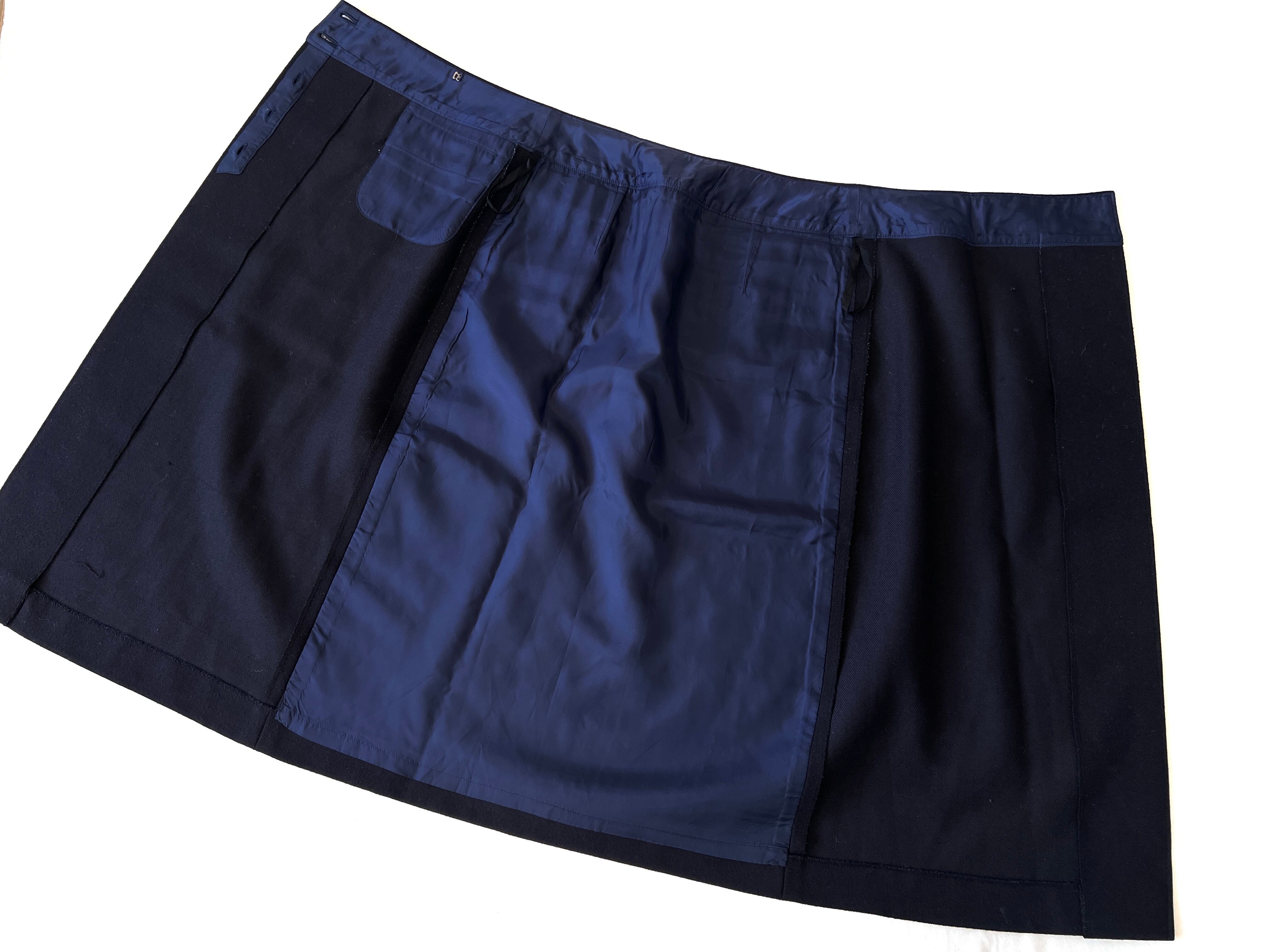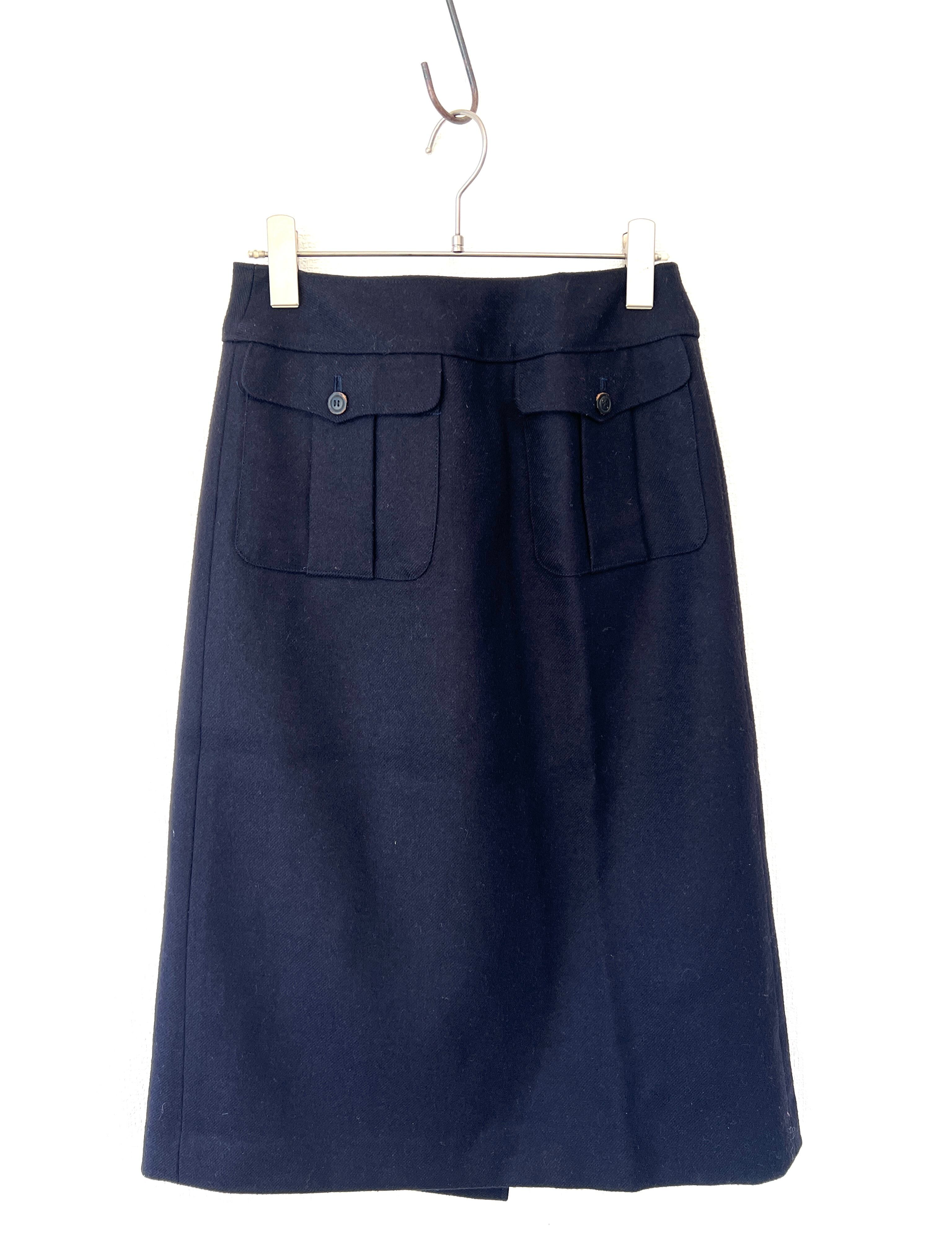 スカートはラップ式でフラップポケットを使用したこちらもカジュアルな雰囲気。