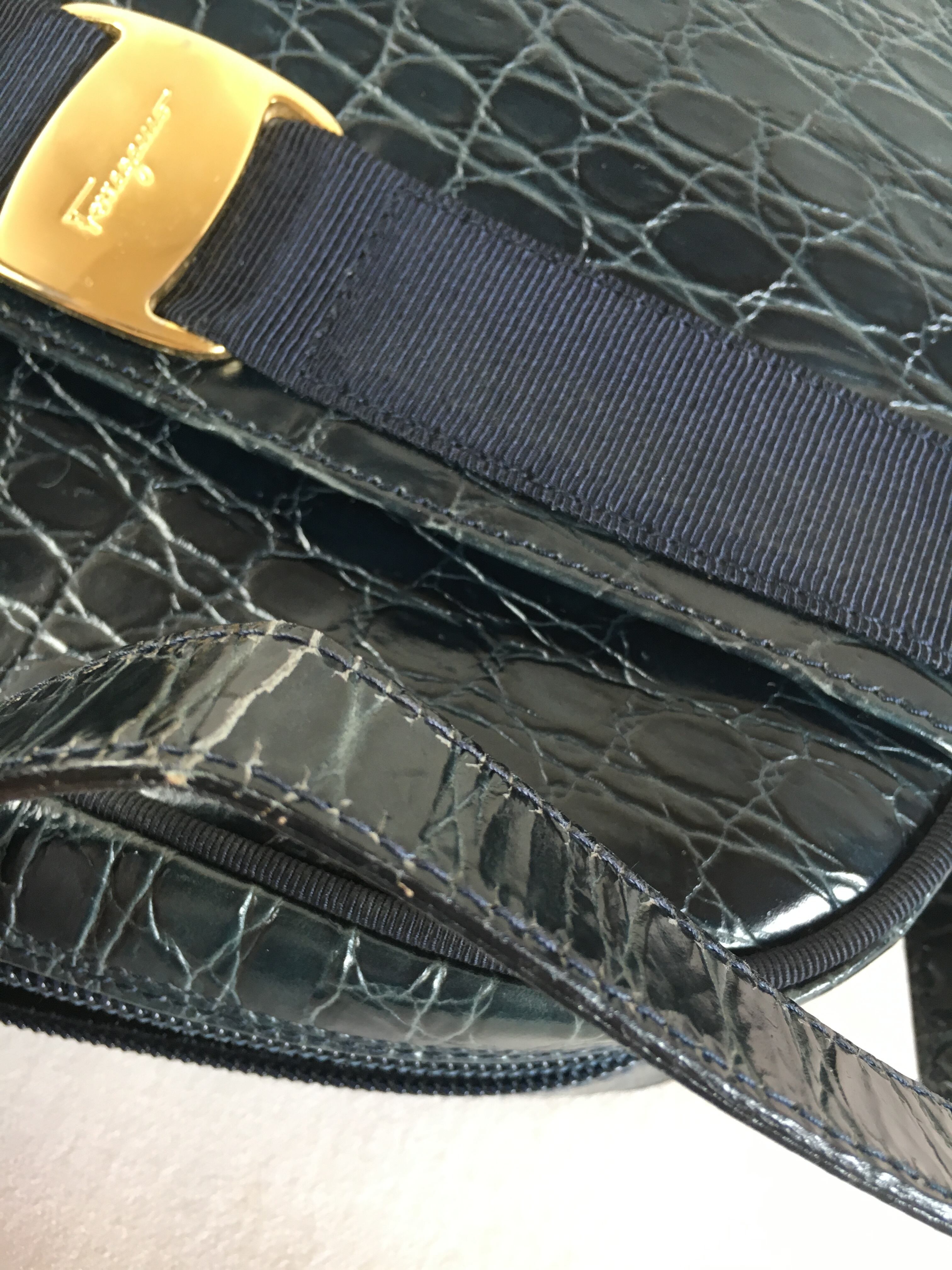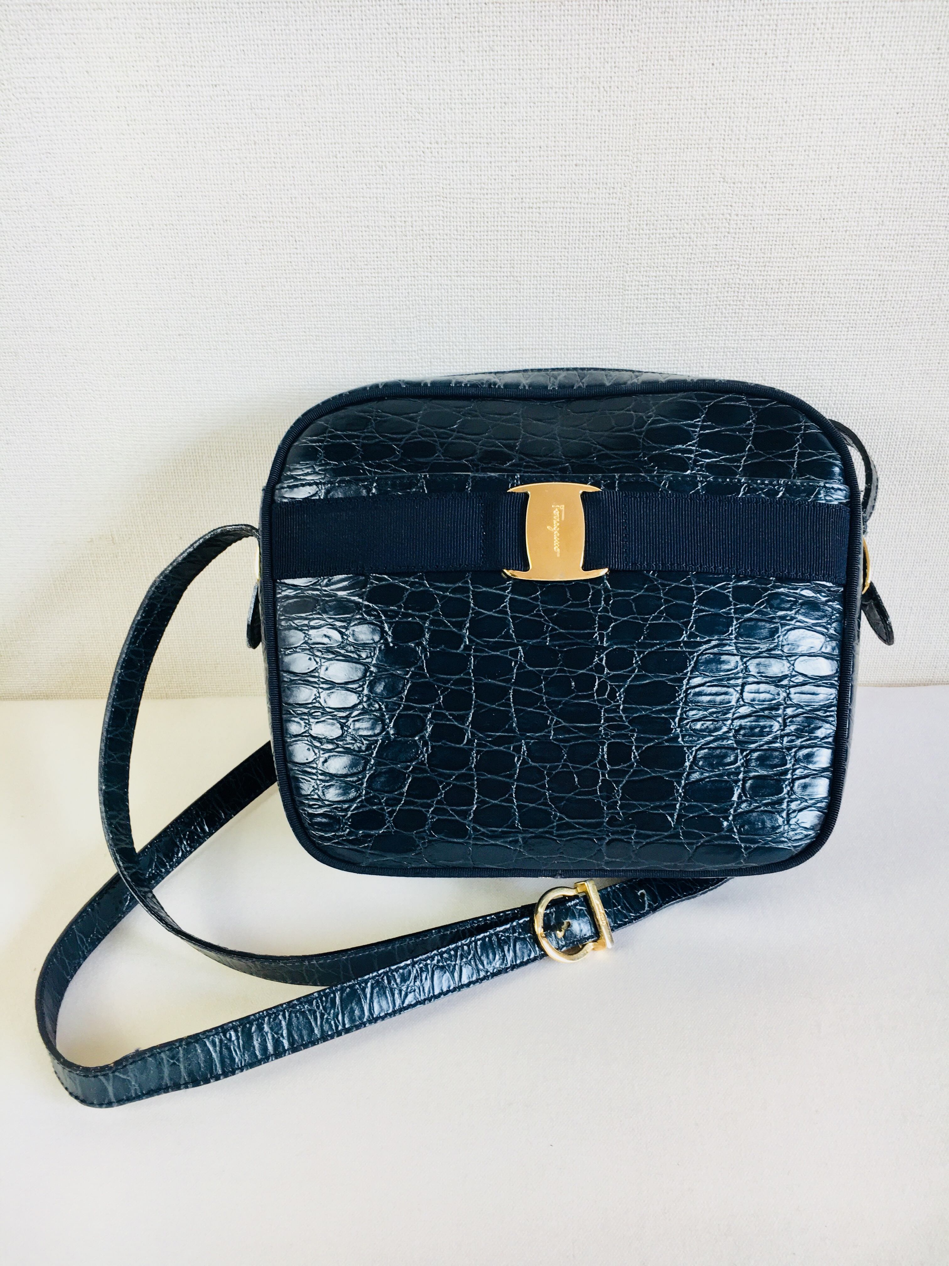 Salvatore Ferragamo クロコ型押しレザー ショルダーバッグ