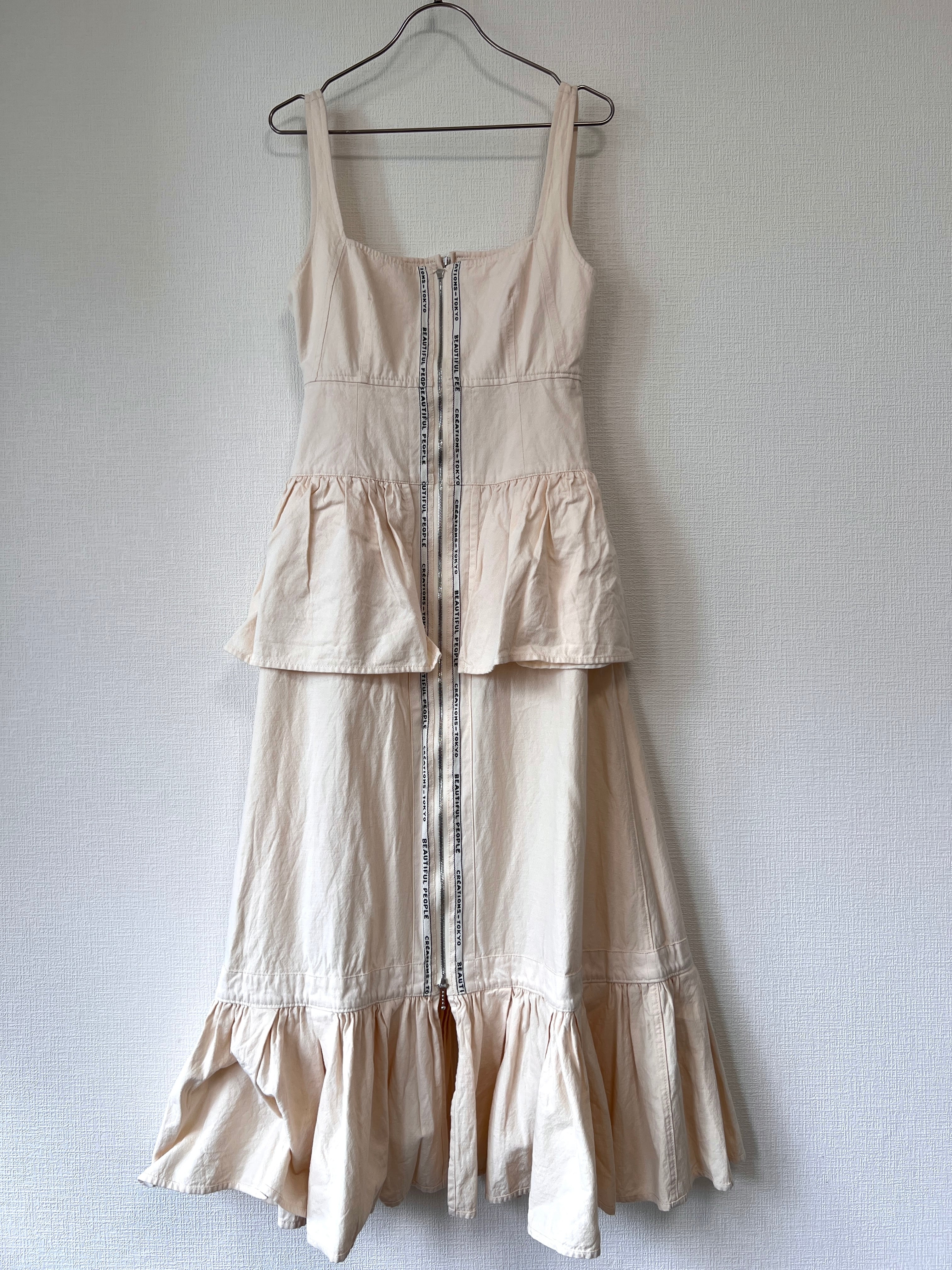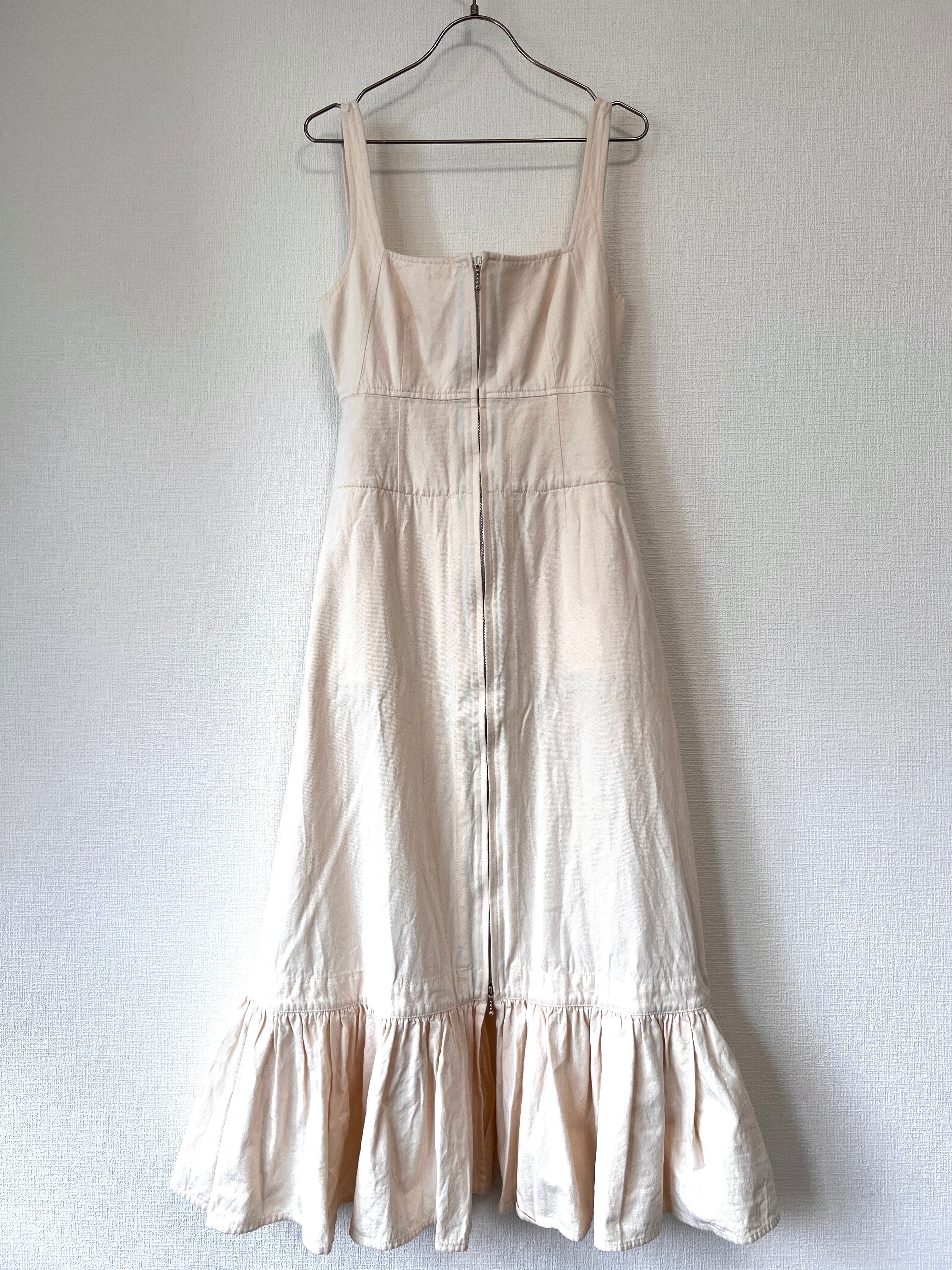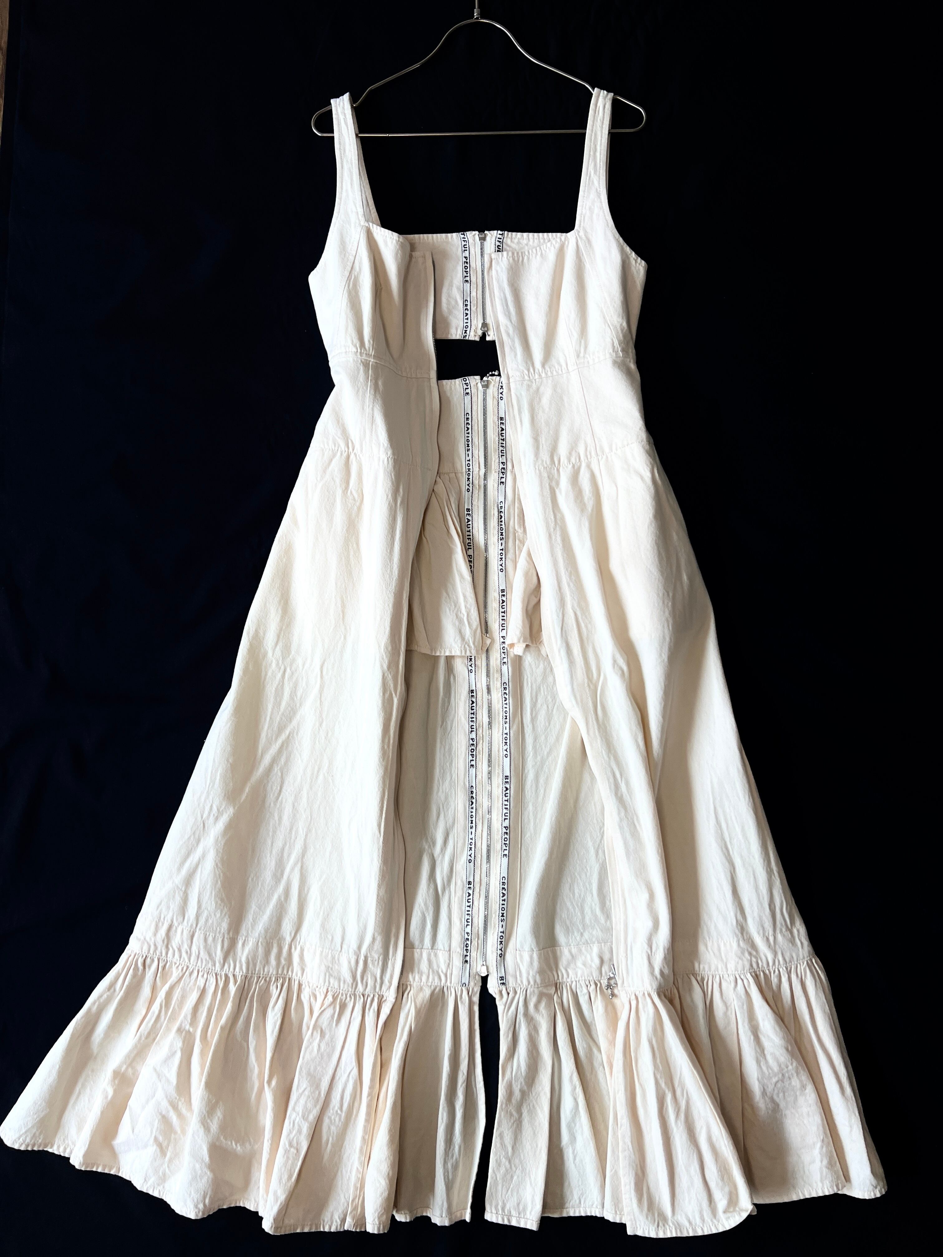 背中にカットアウトを施したキャミソールのギャザースカートワンピース。定価 ¥77,000