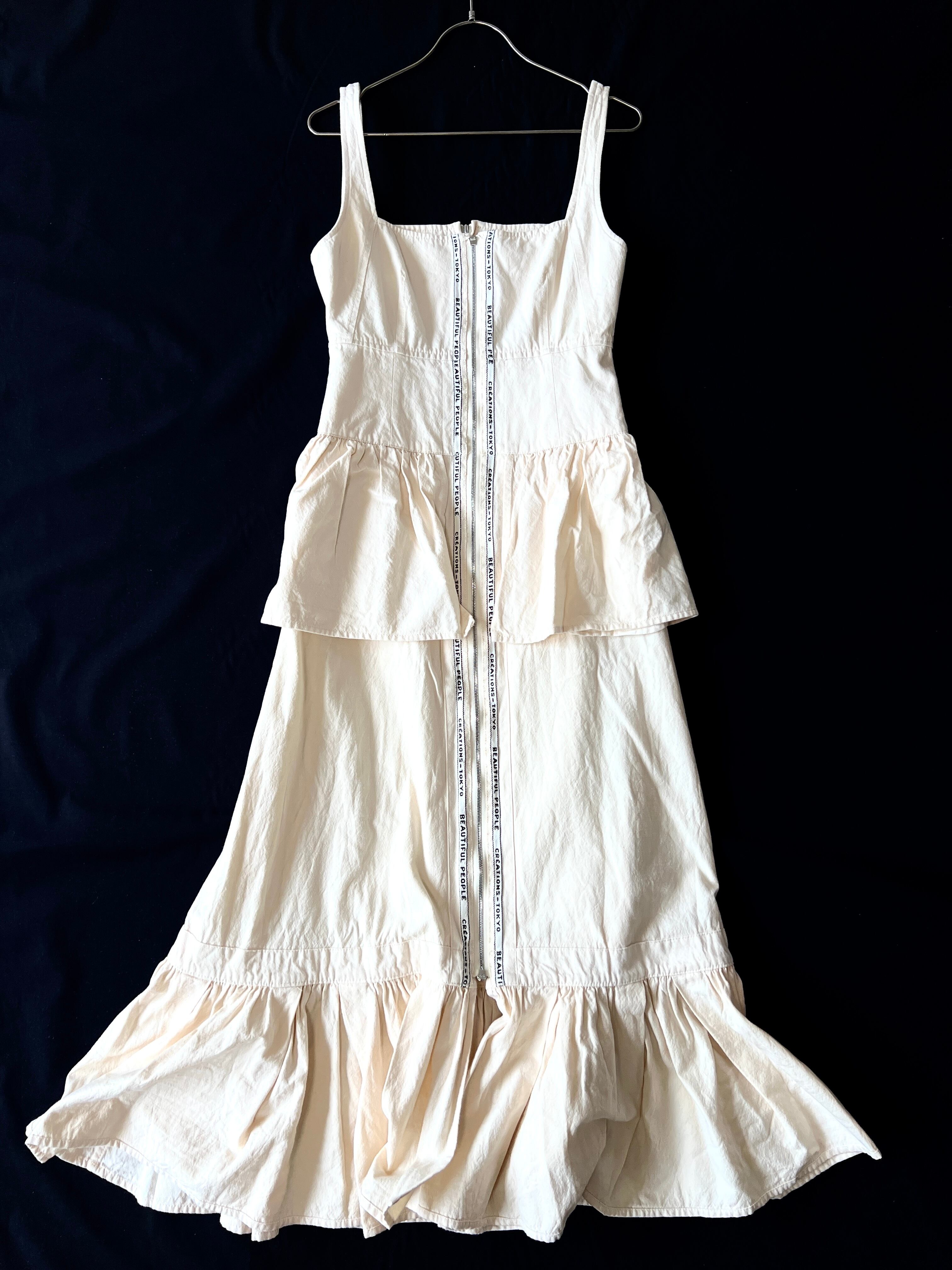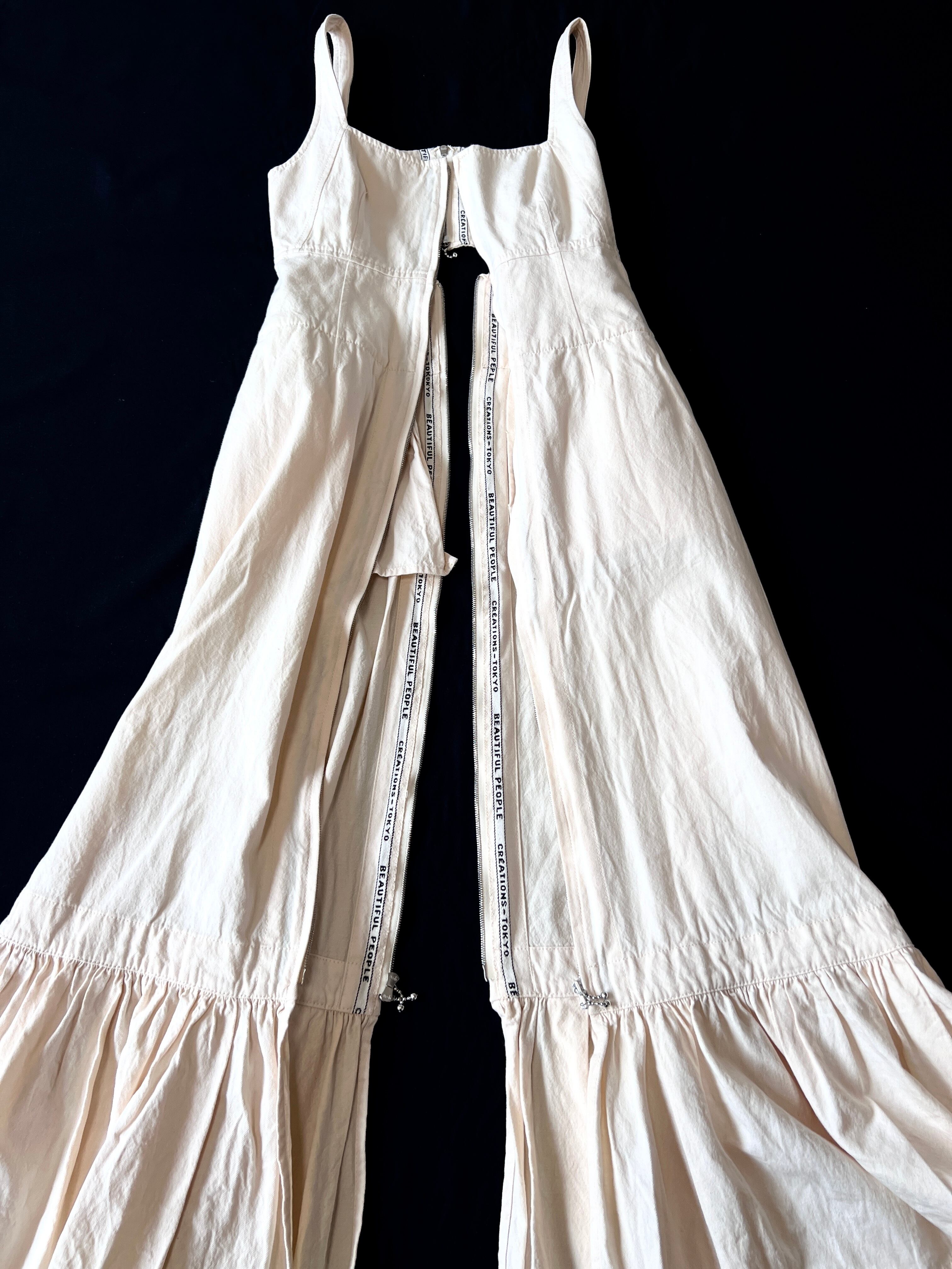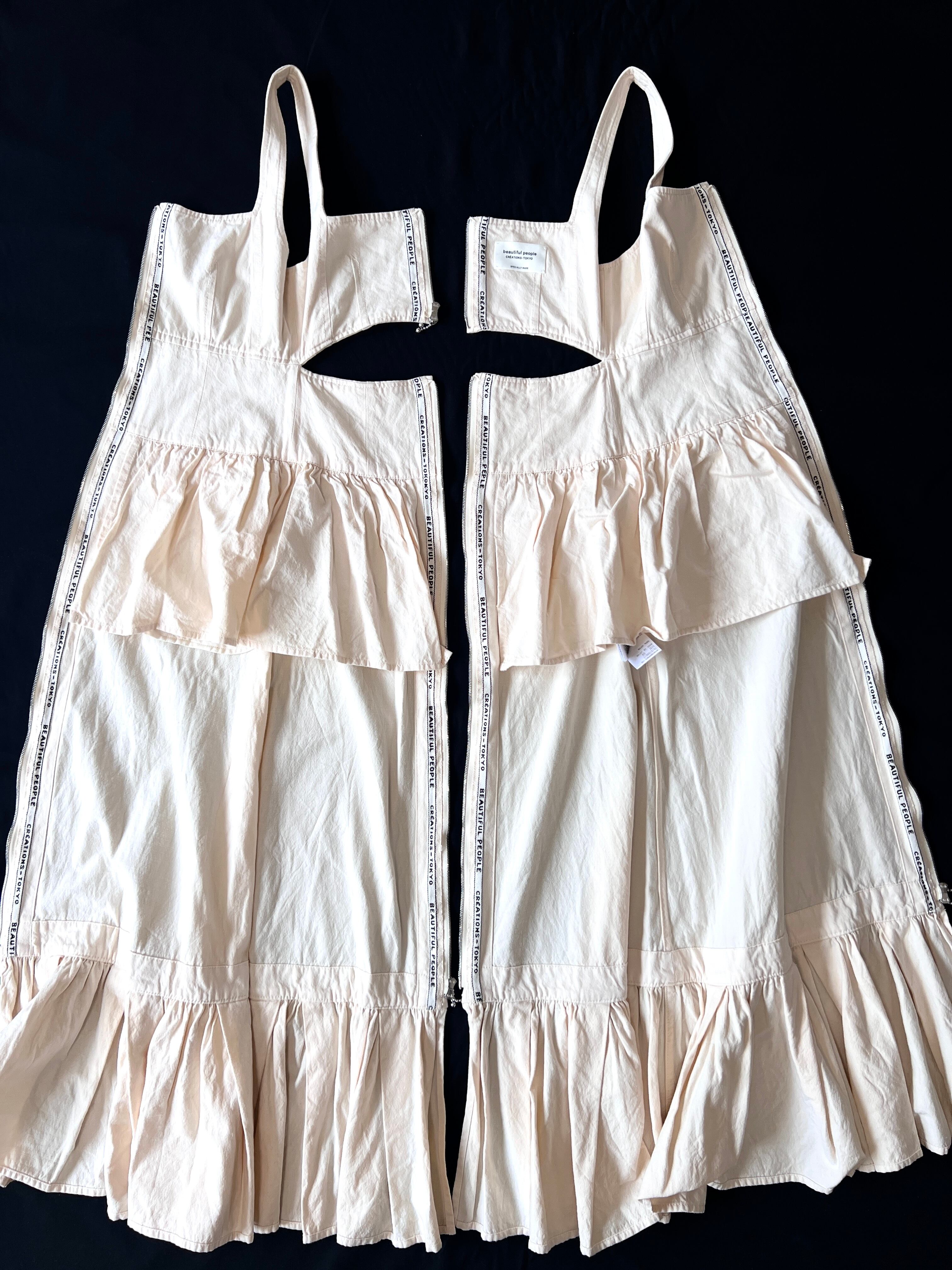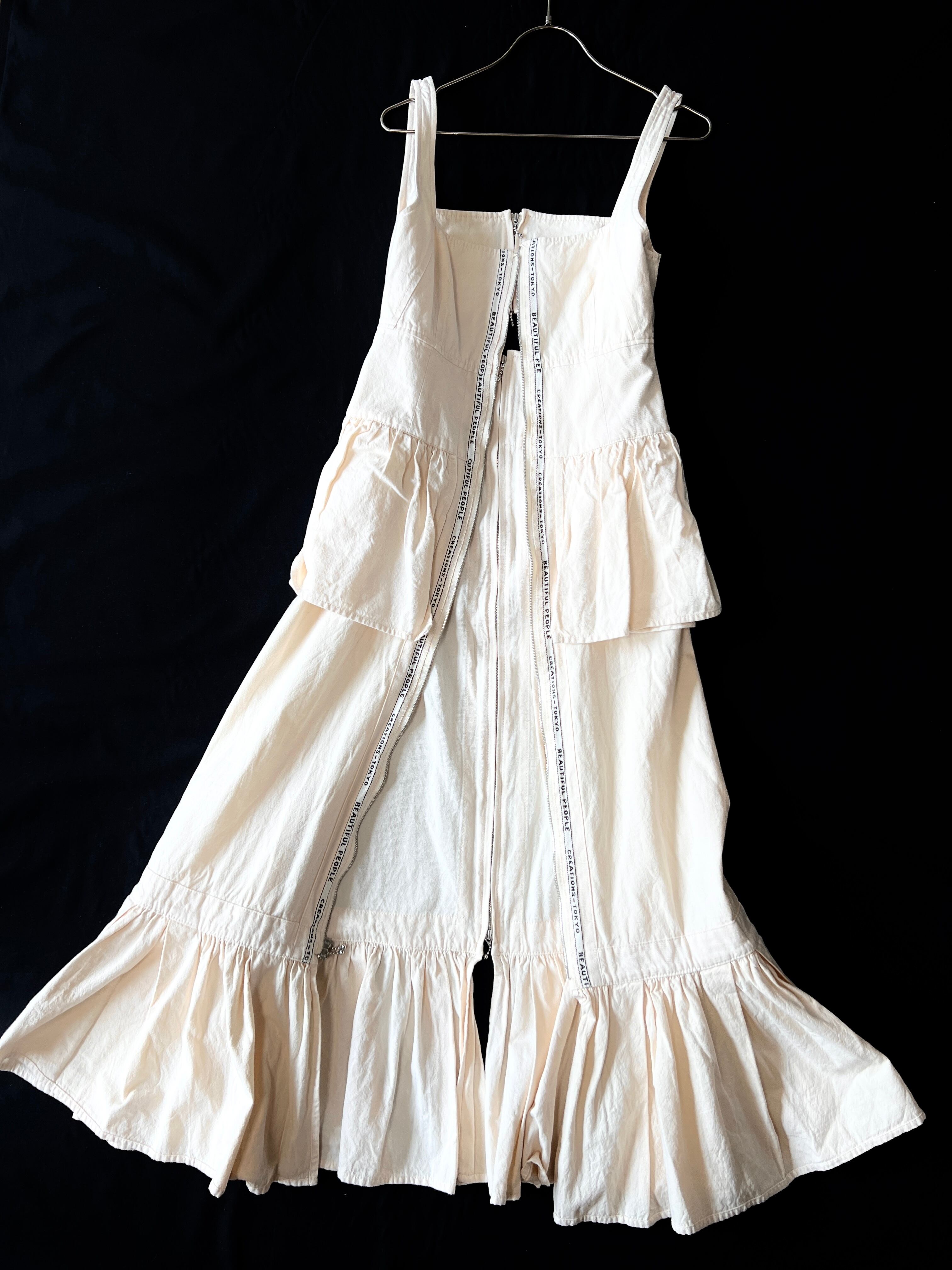 背中にカットアウトを施したキャミソールのギャザースカートワンピース。定価 ¥77,000