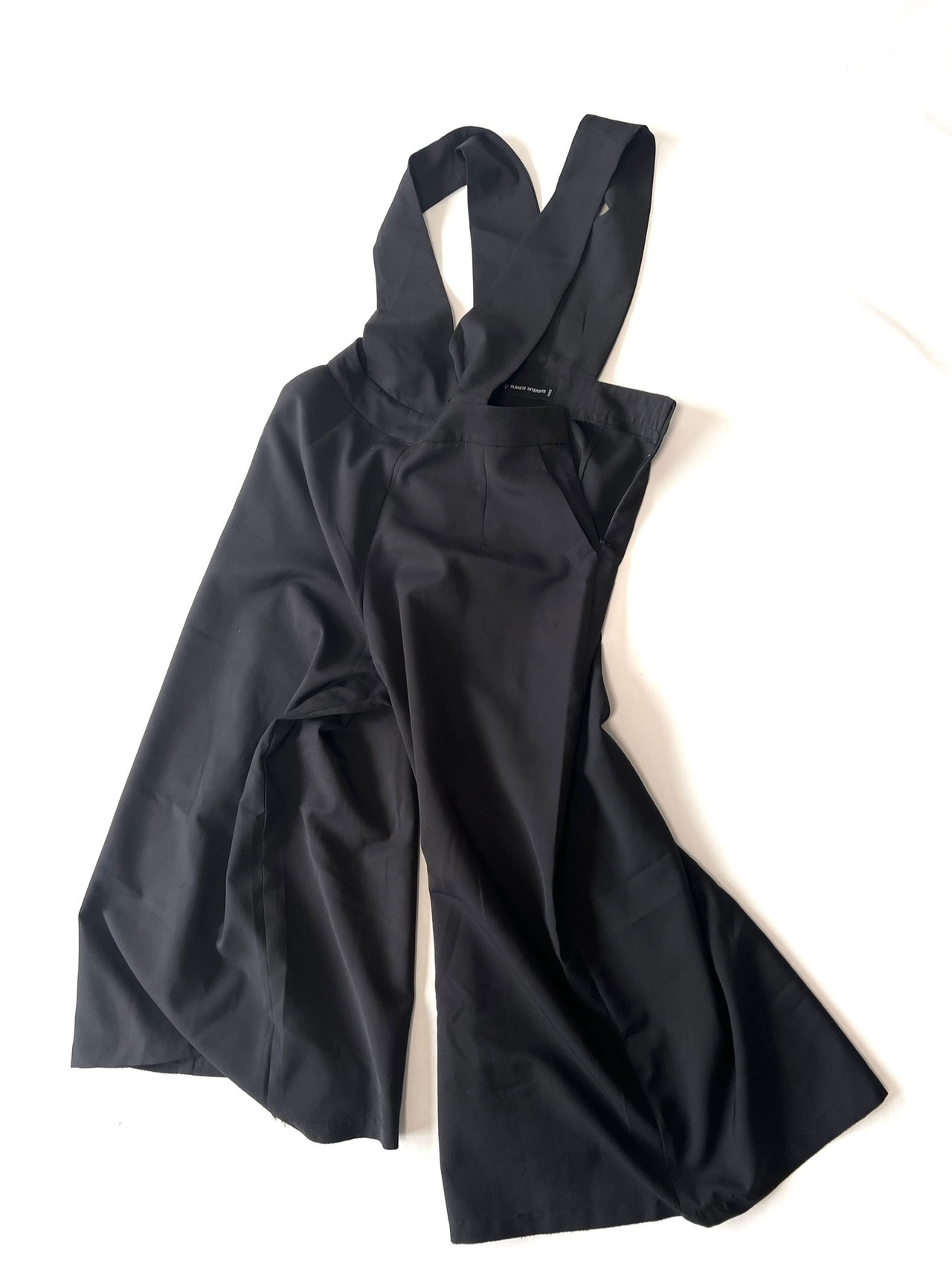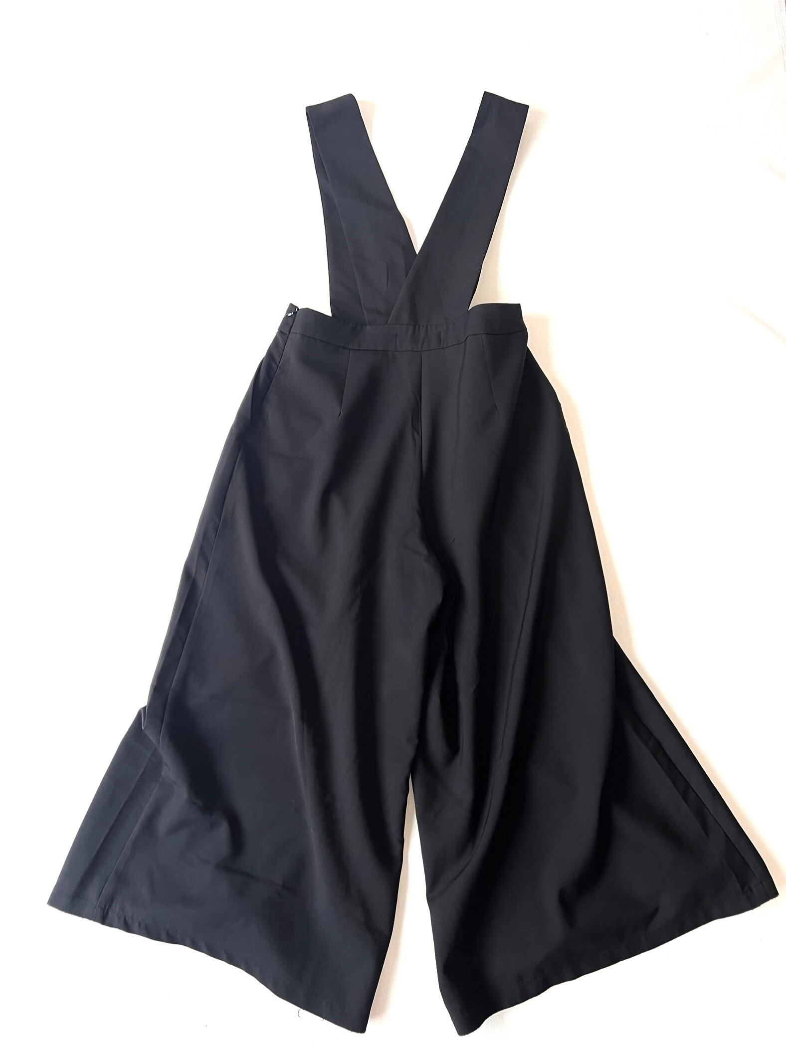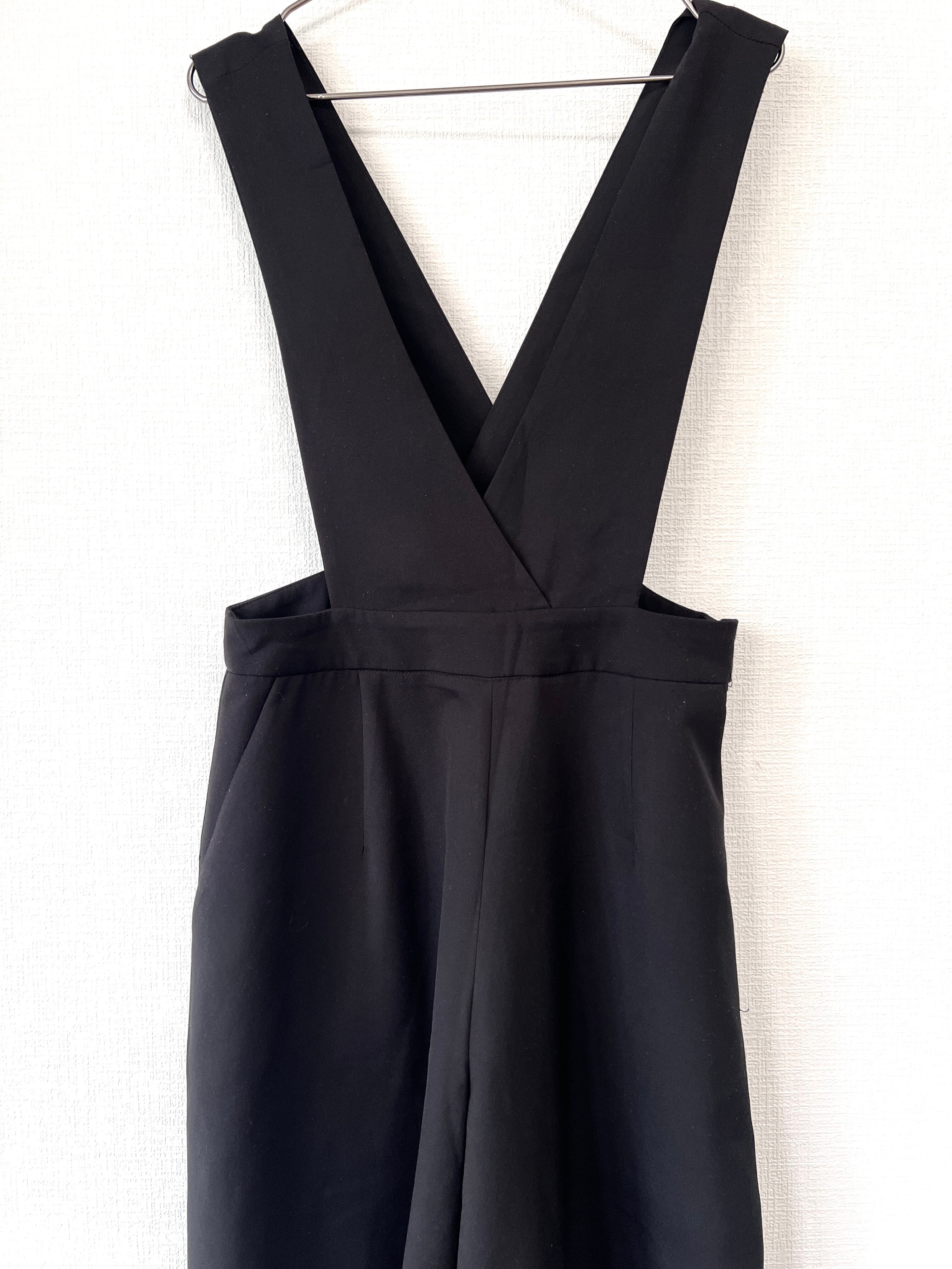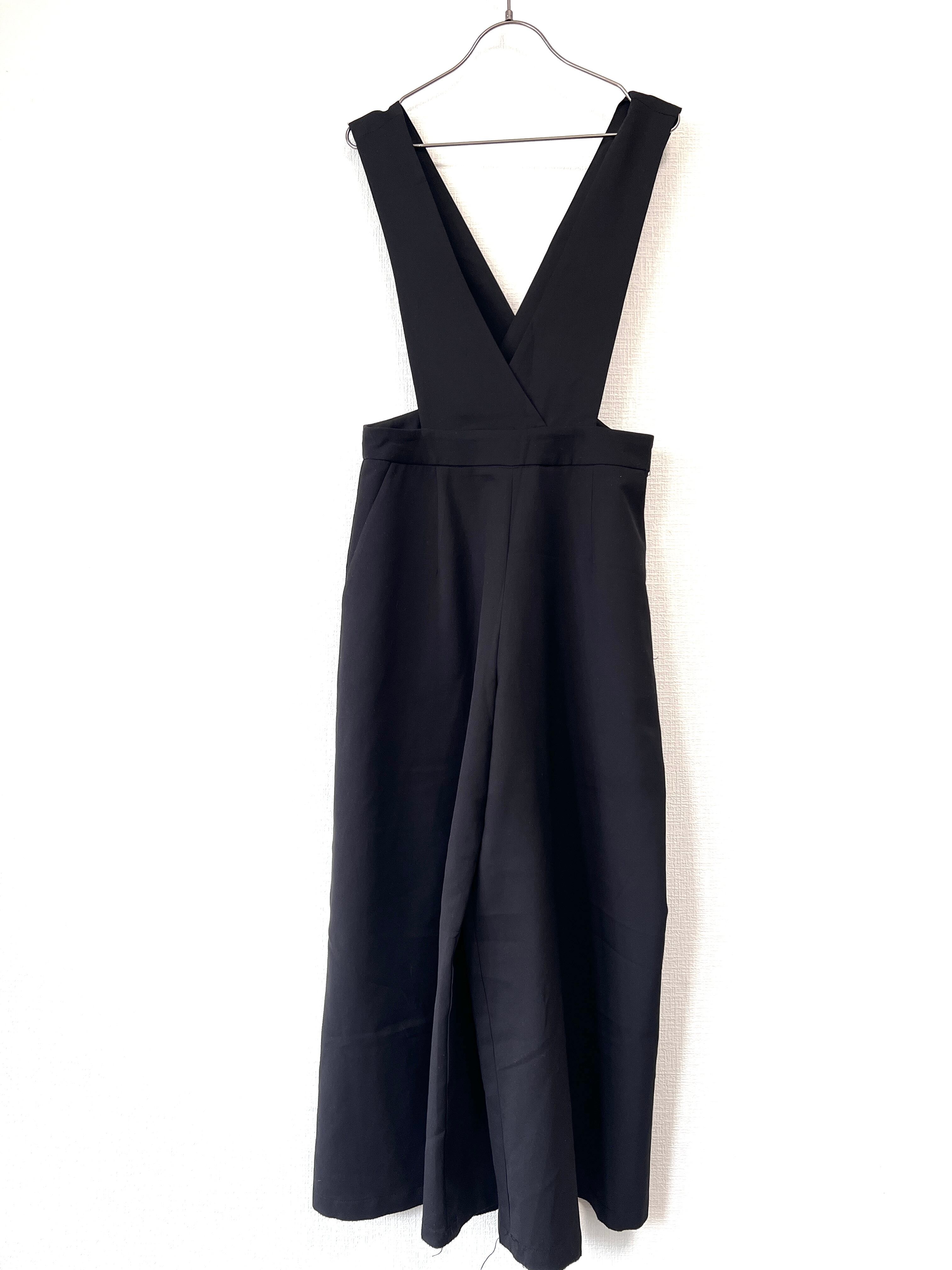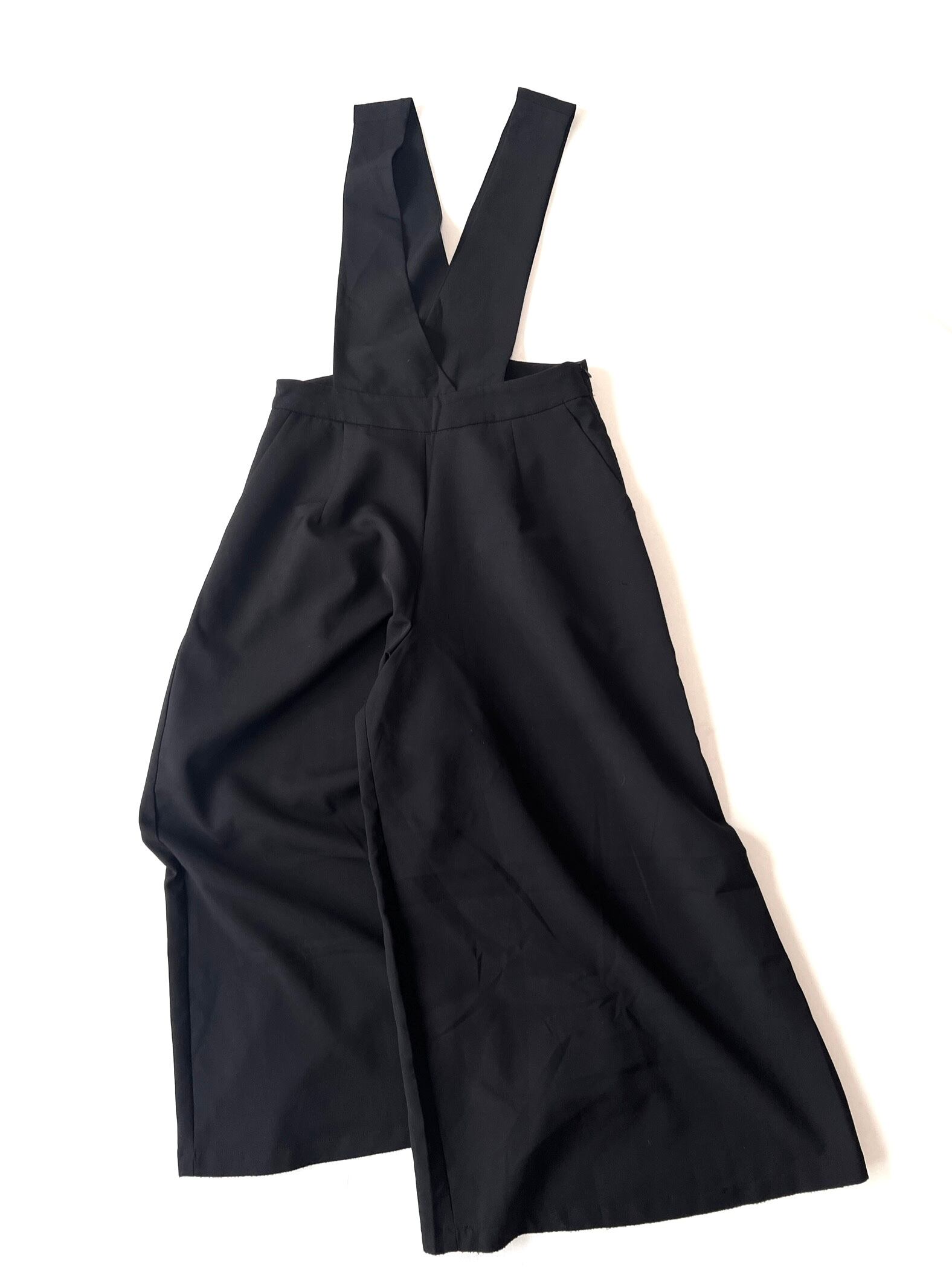 ワイドレッグで裾に向かって大きく広がったワイドパンツがドッキングしたシンプルなサロペット です。