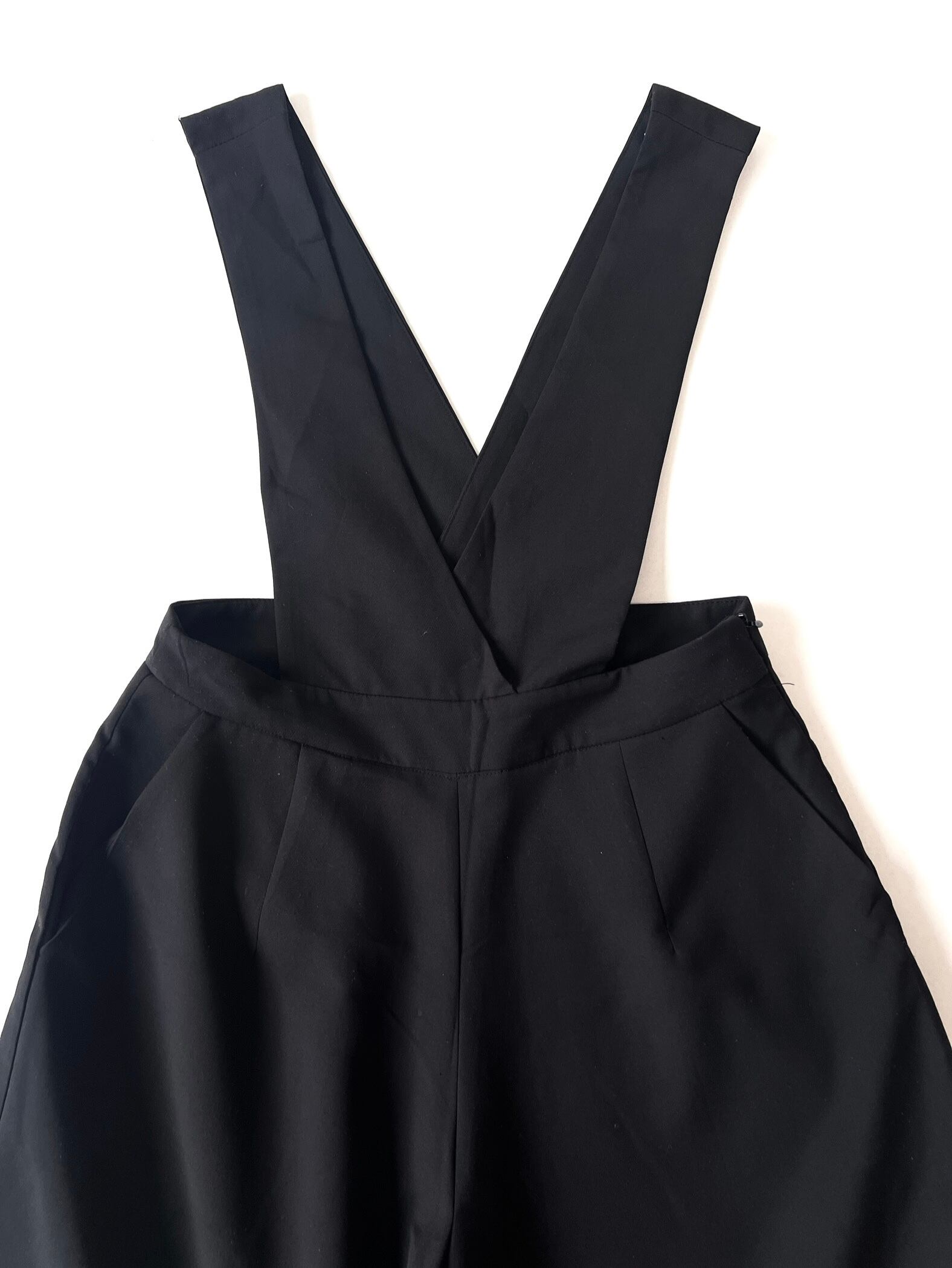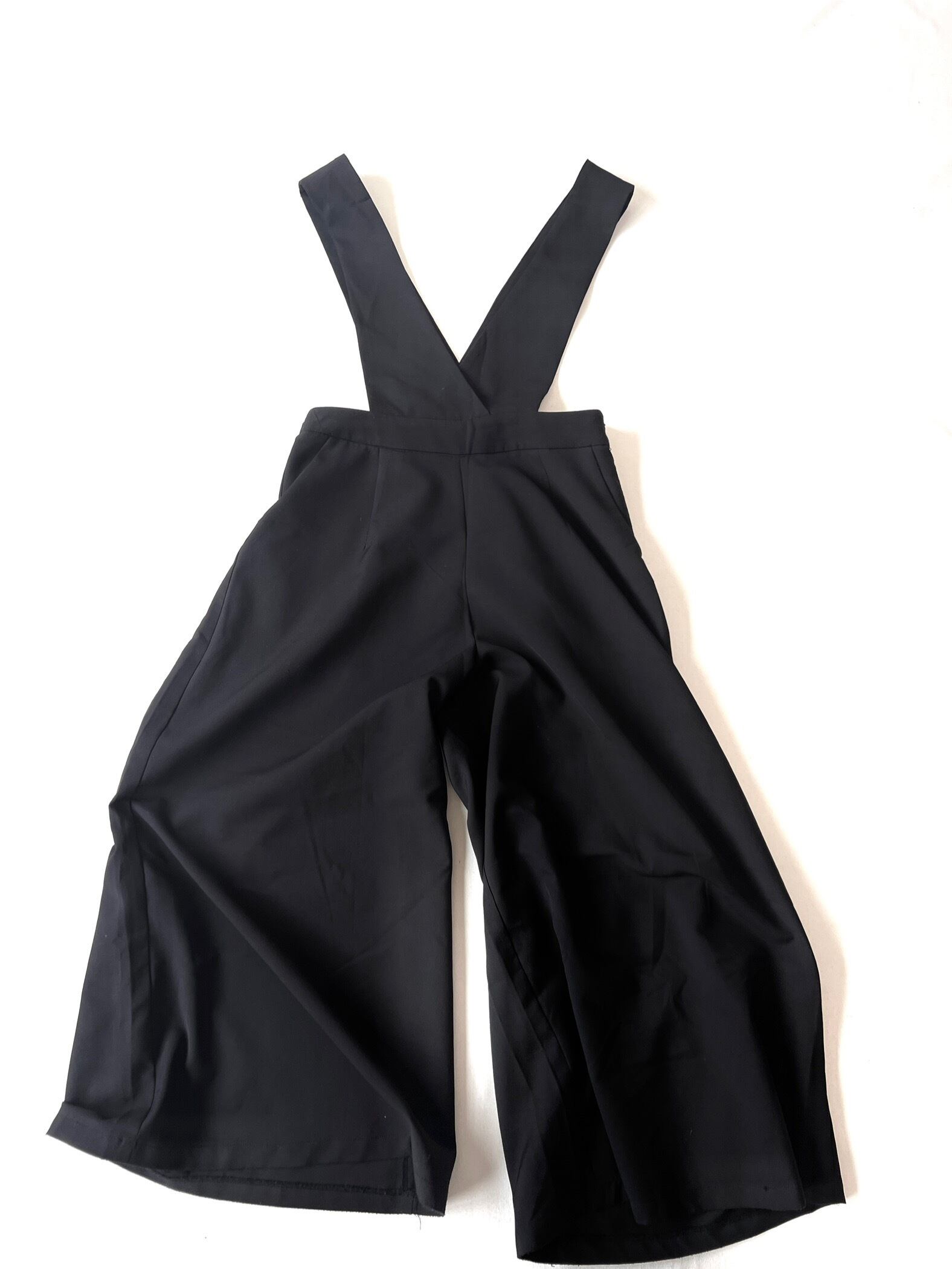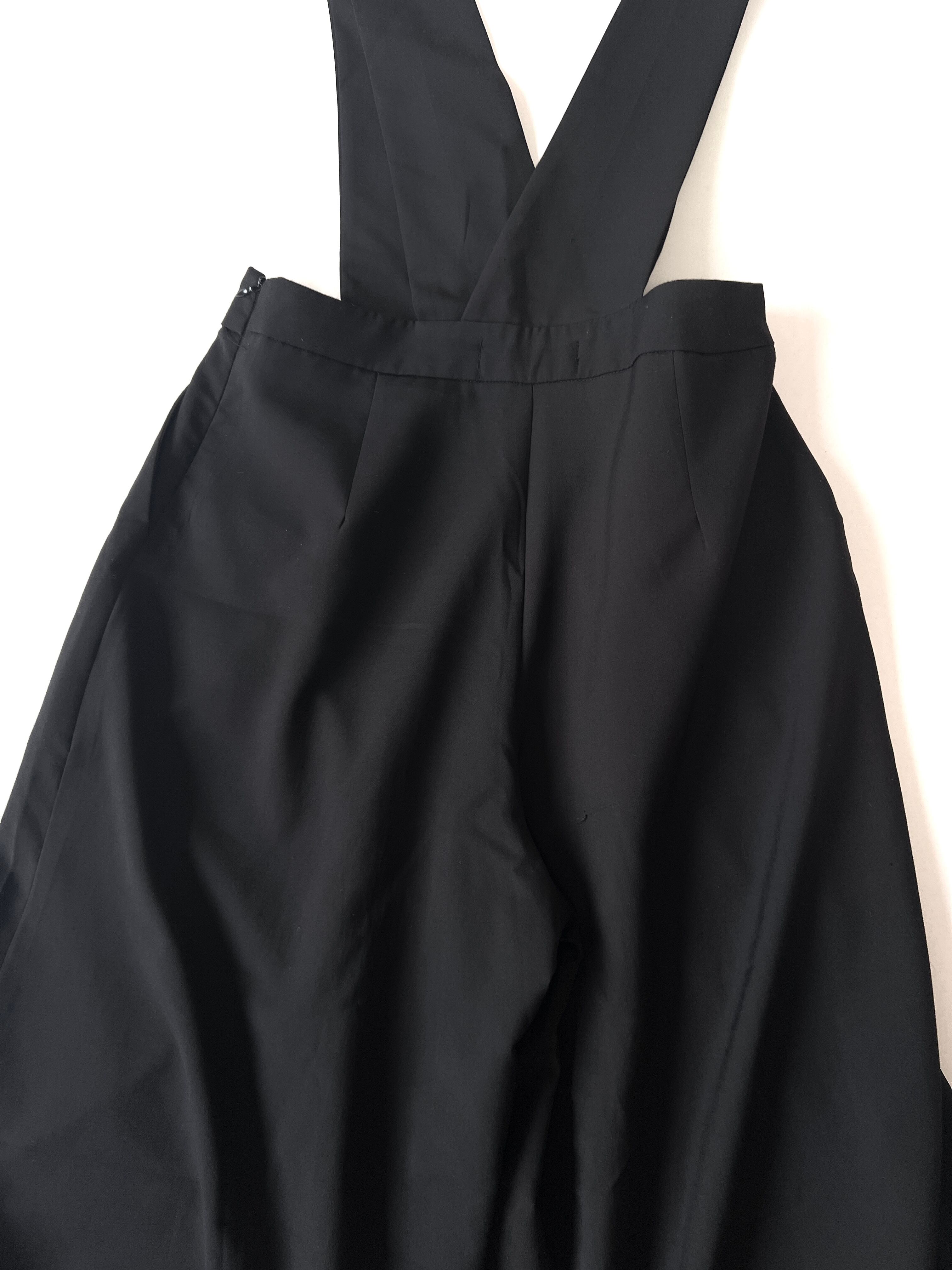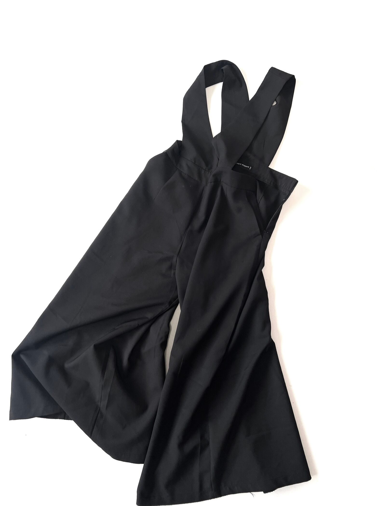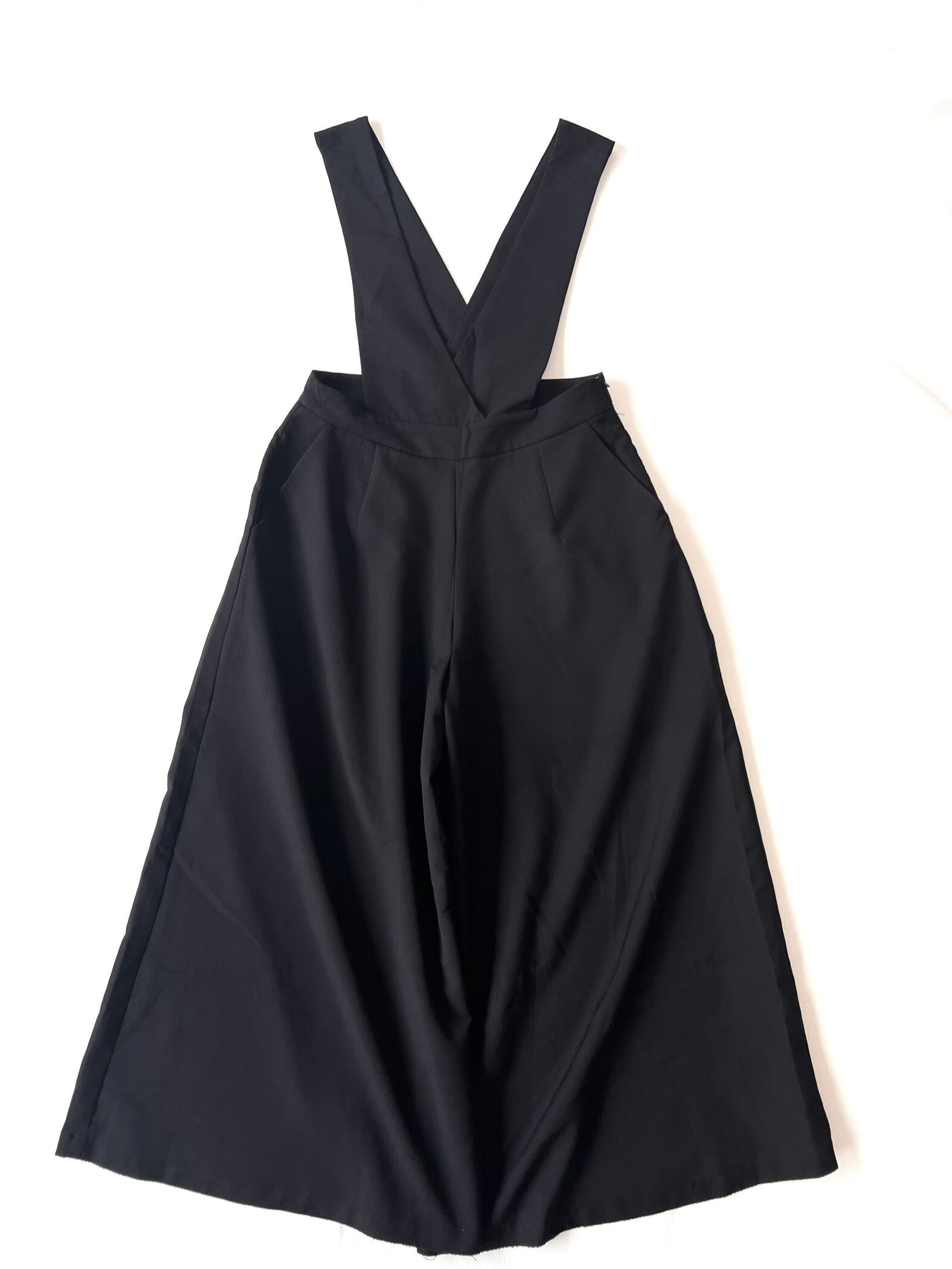 ワイドレッグで裾に向かって大きく広がったワイドパンツがドッキングしたシンプルなサロペット です。