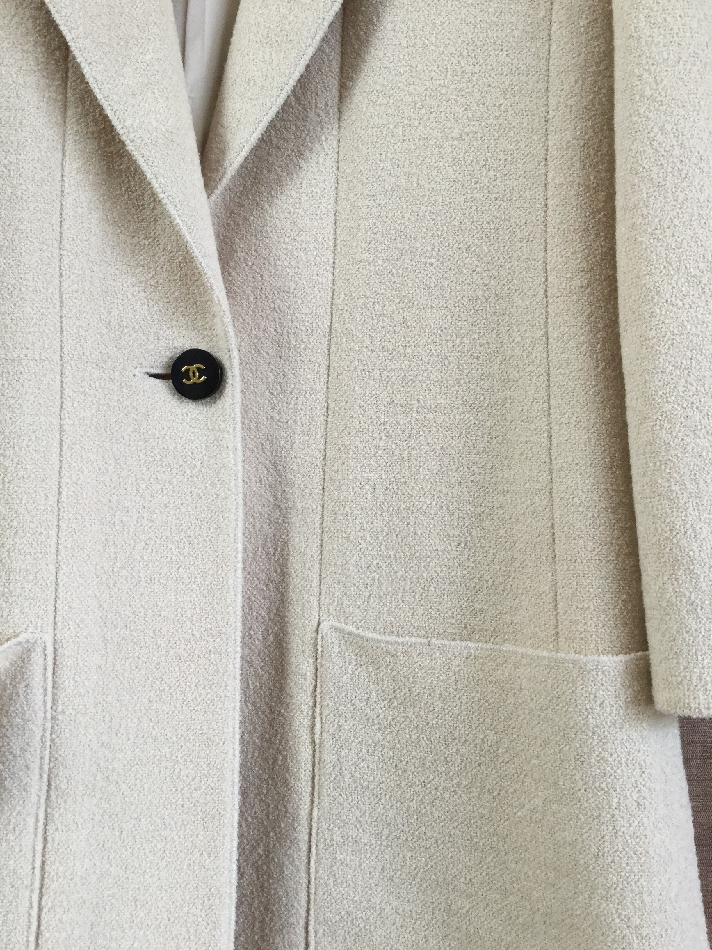 1つボタンのシンプルなデザイン、クリームベージュの色合いが品のある一着です!!