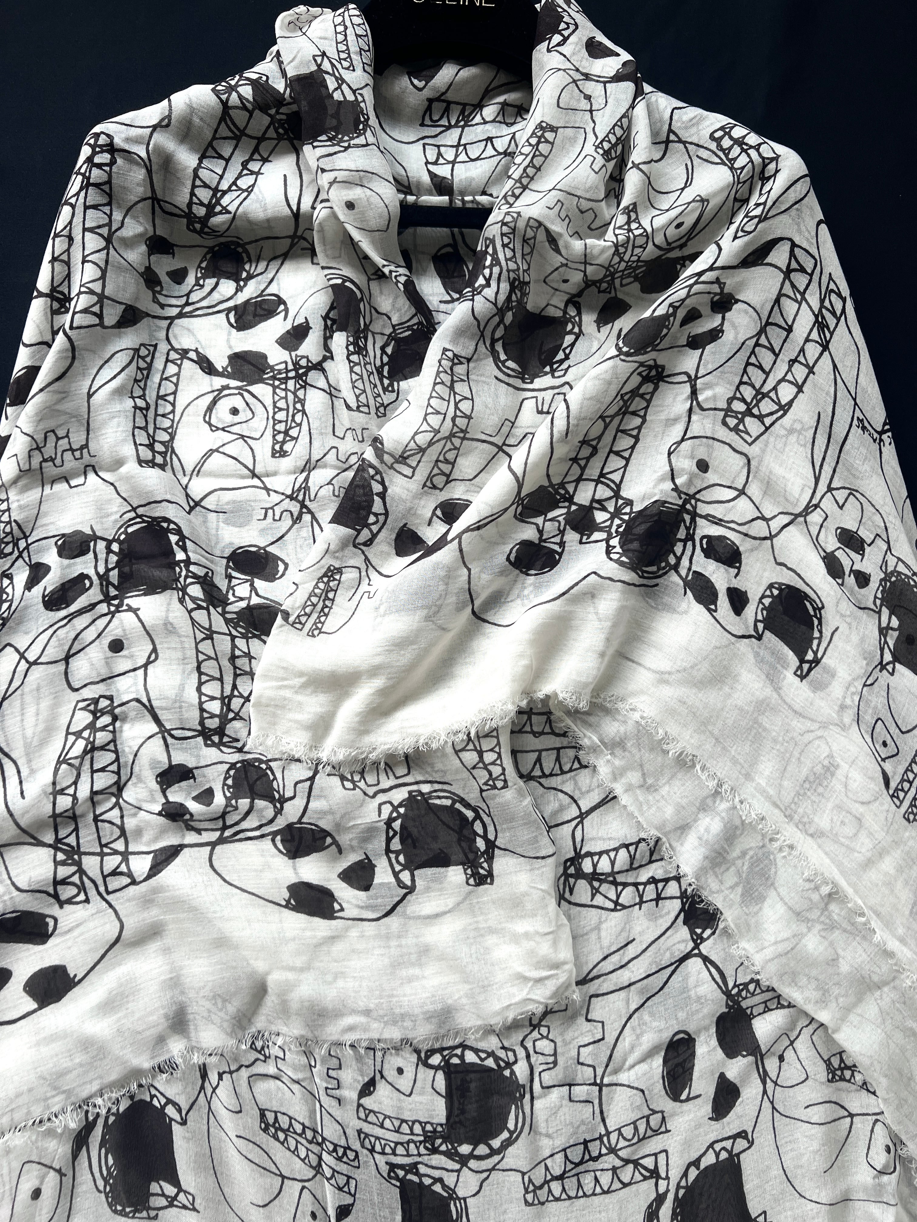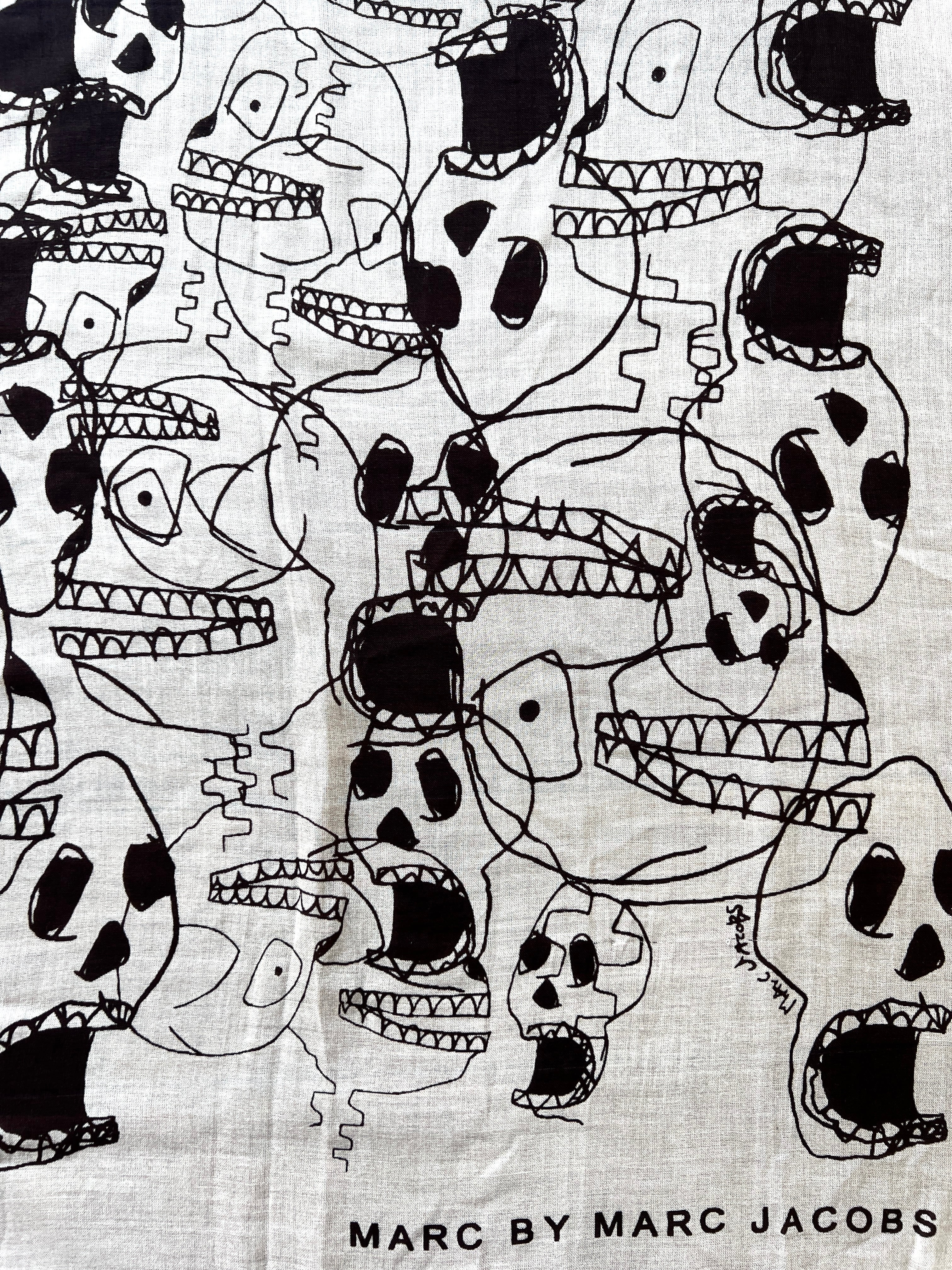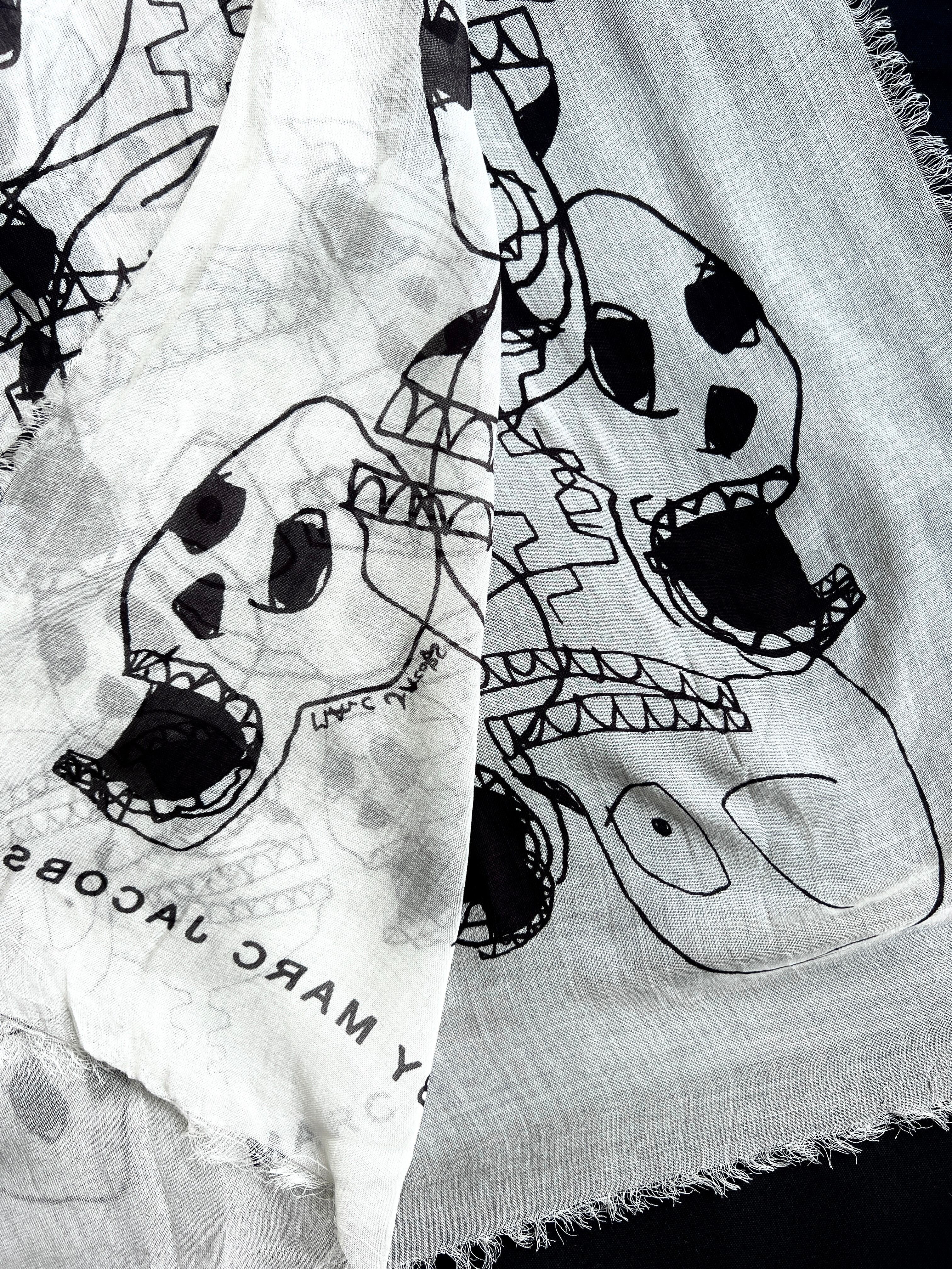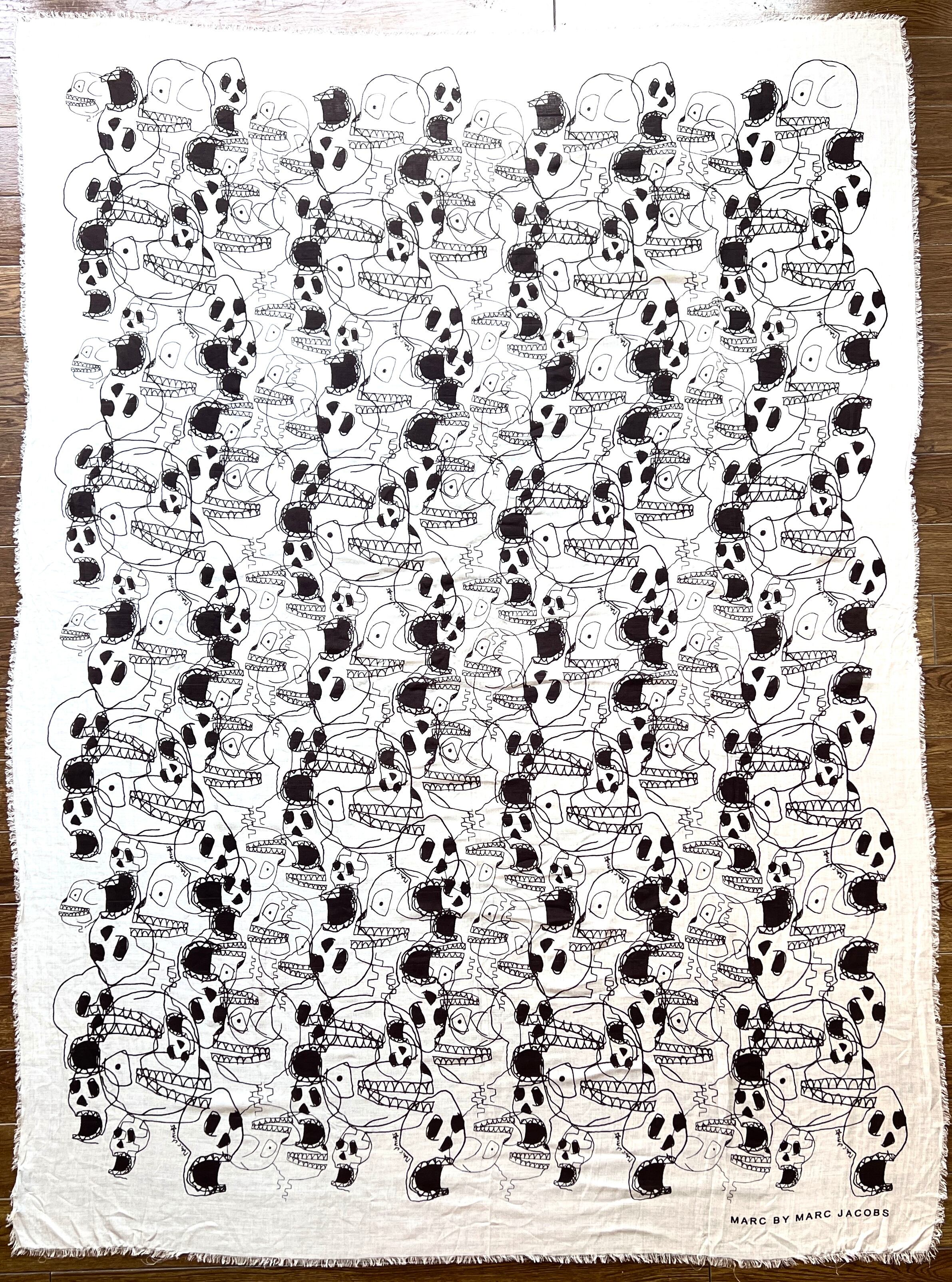 遊び心のあるスカルプリントが魅力的なマークジェイコブスの大判スカーフです。