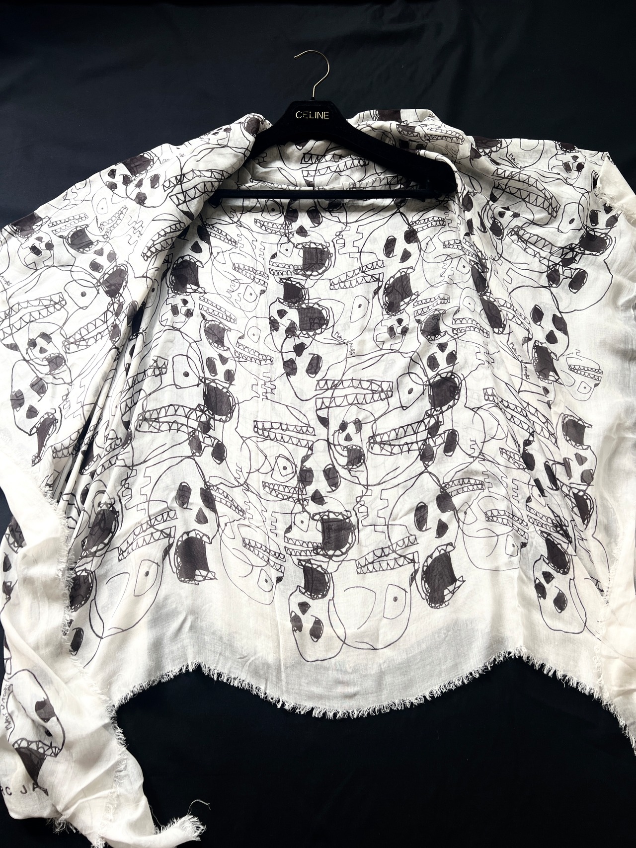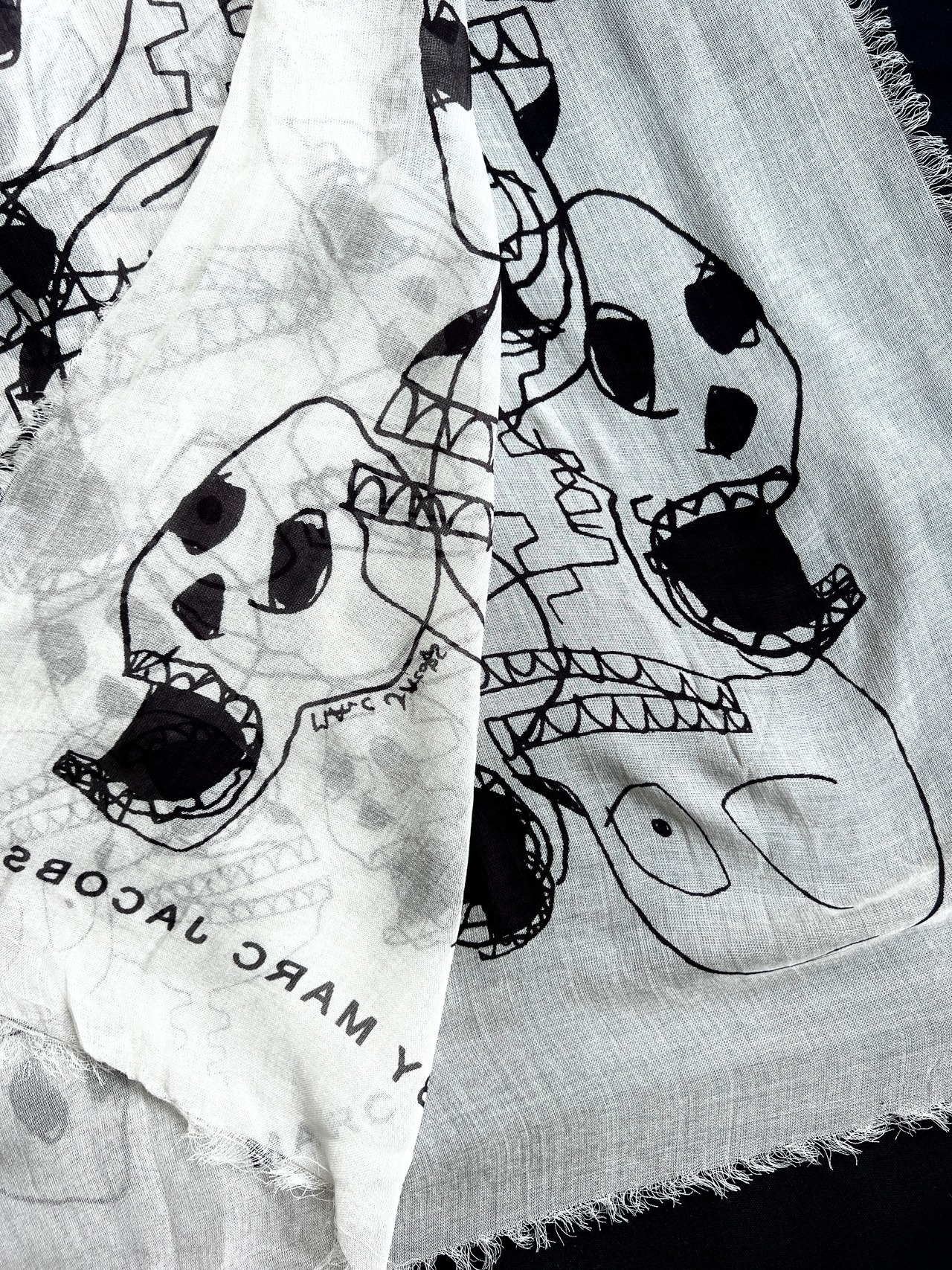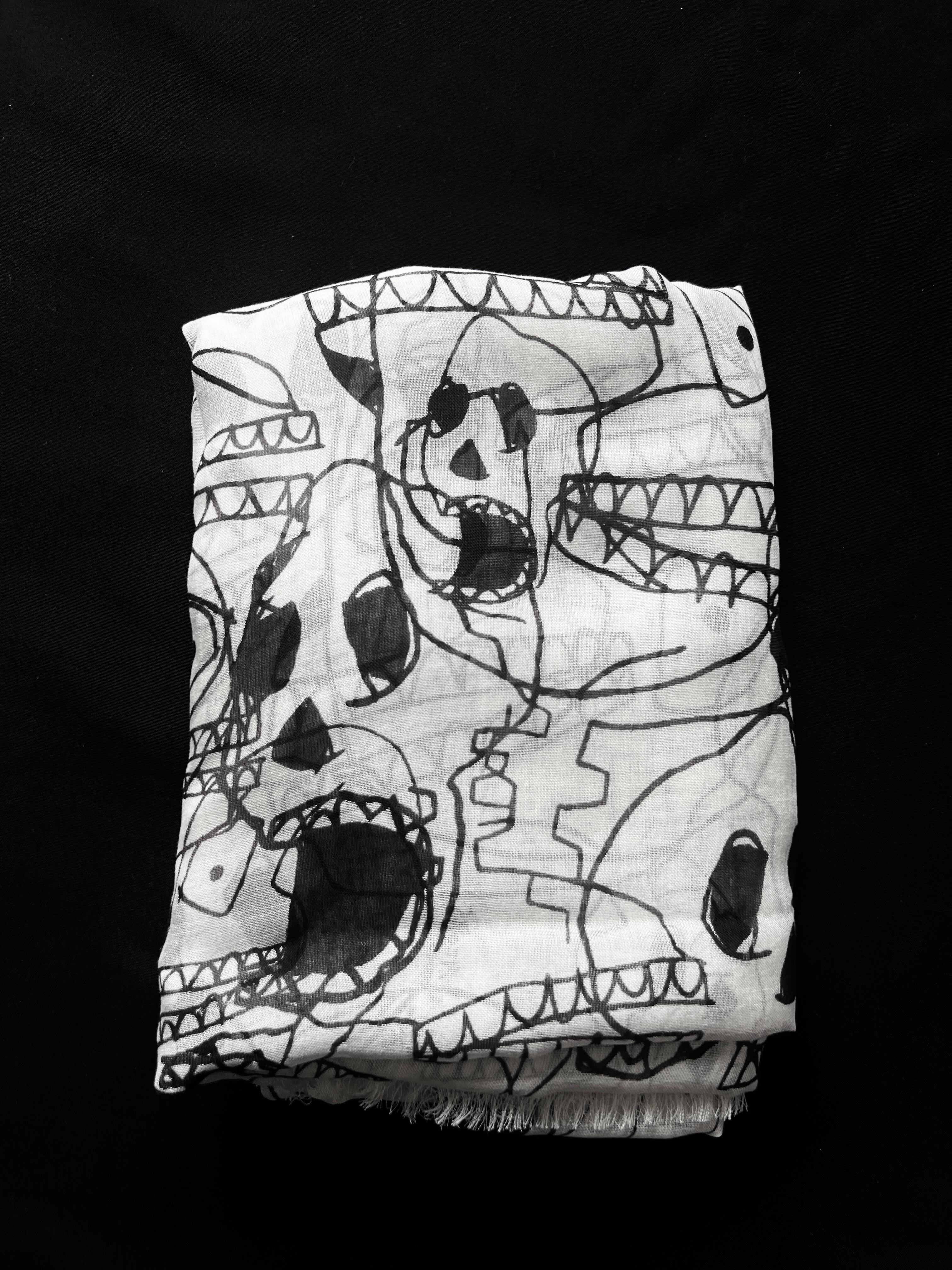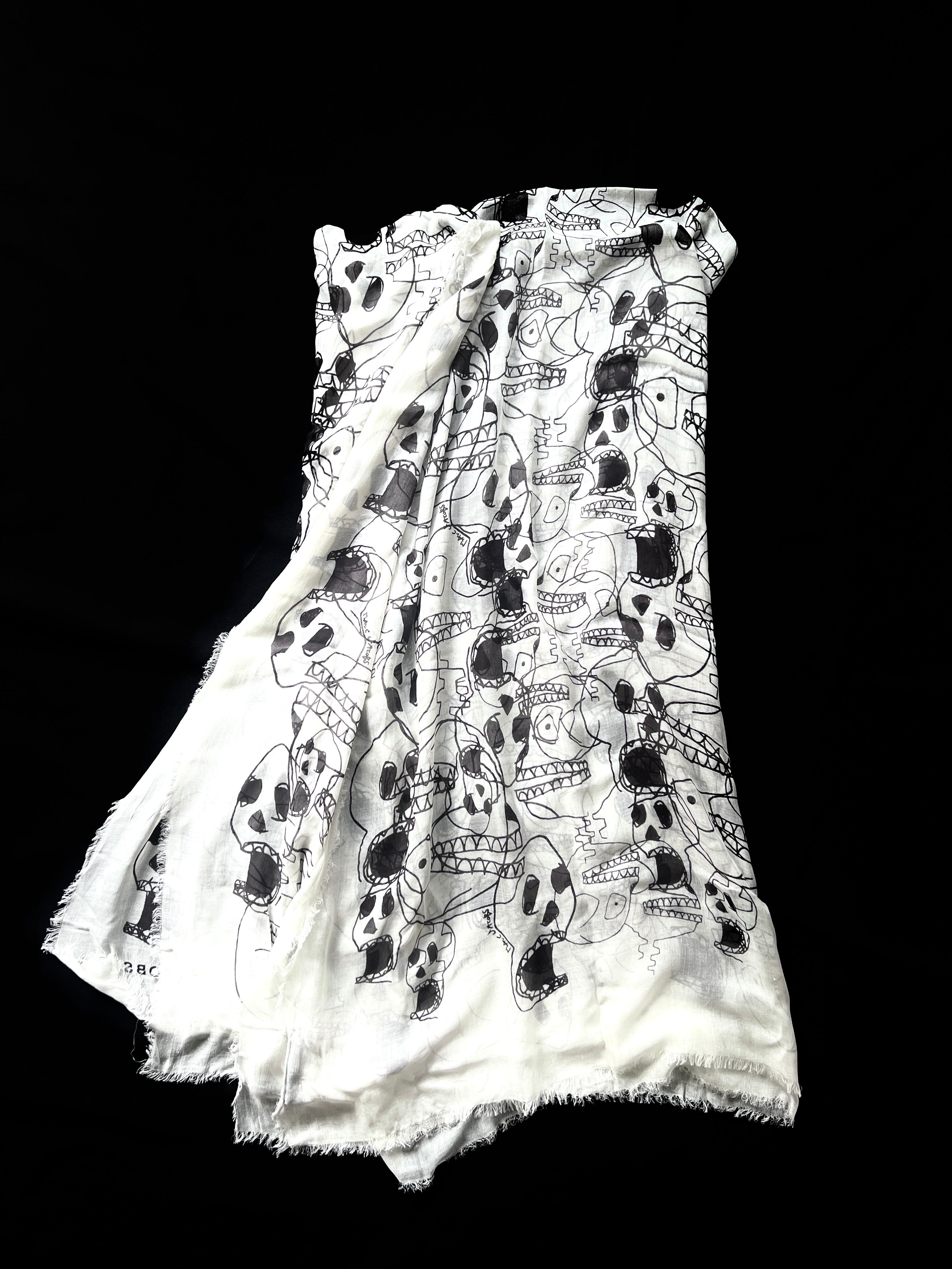 遊び心のあるスカルプリントが魅力的なマークジェイコブスの大判スカーフです。
