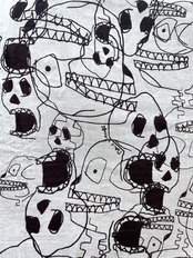 モノトーンのタッチで描かれたキュートなスカルたちがエッジィなアクセントに!