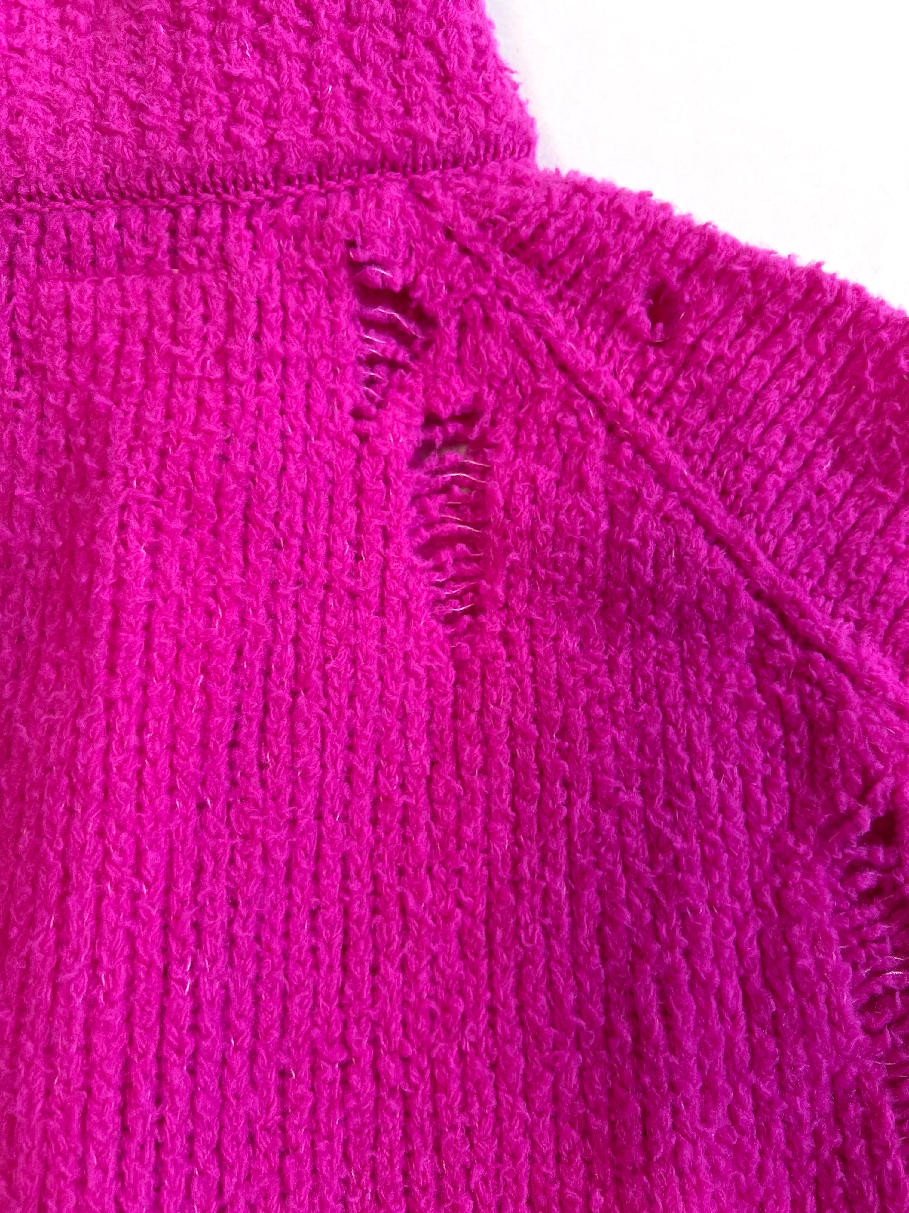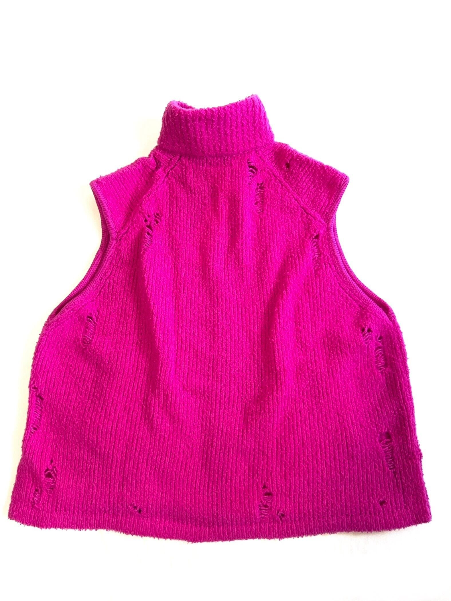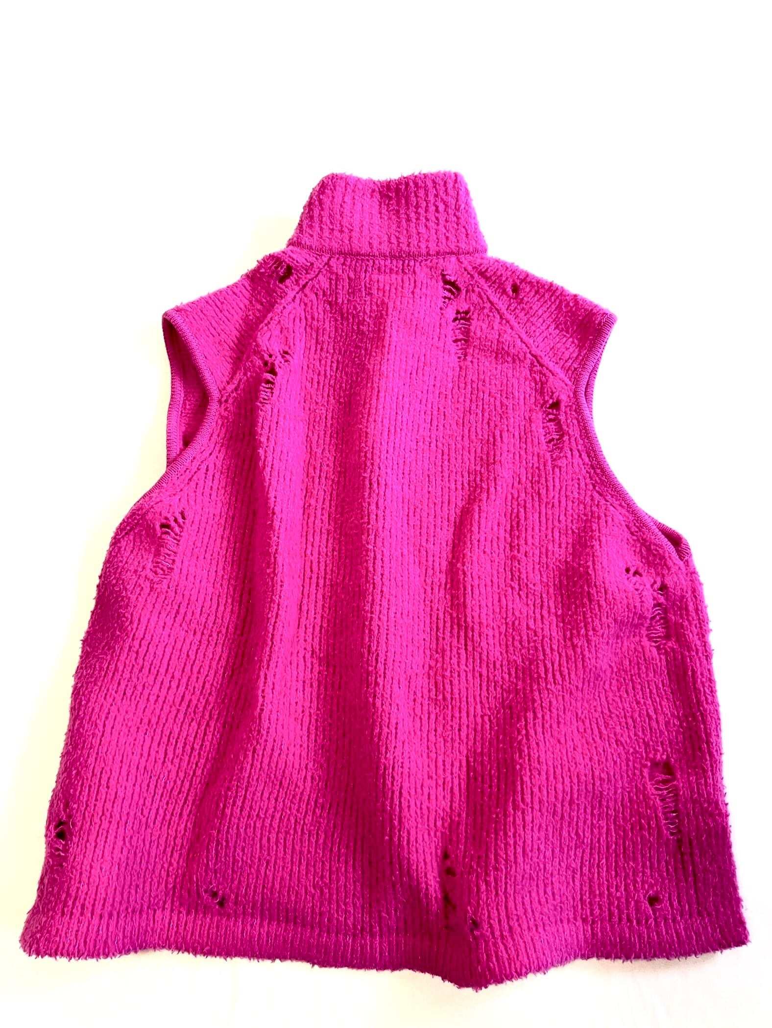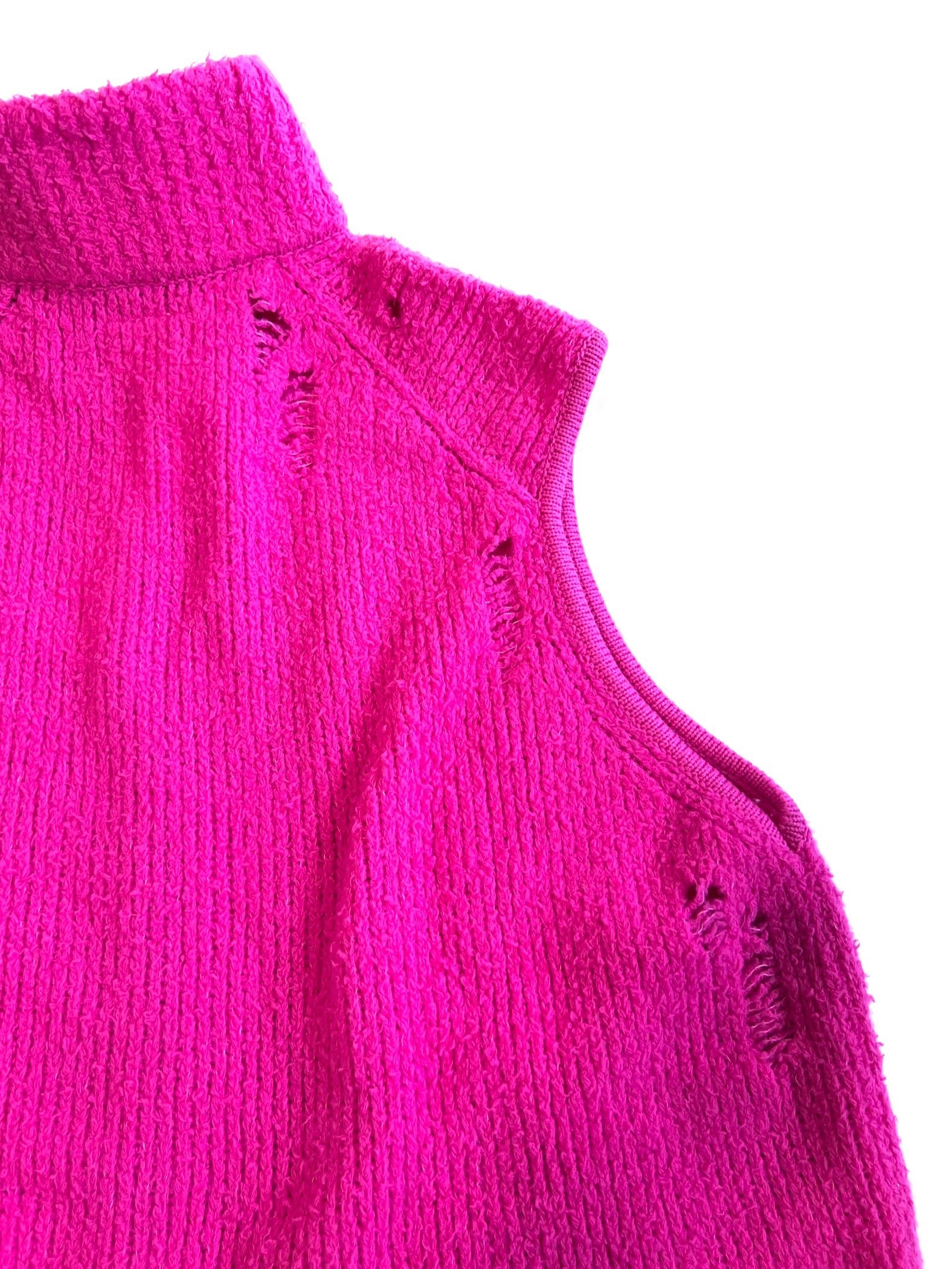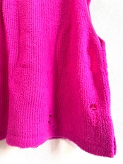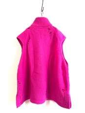 ボリューミーな見た目に反して驚くべき軽さになった糸で編んだオーバーサイズのニットベスト。ダメージ加工を施してあります。
