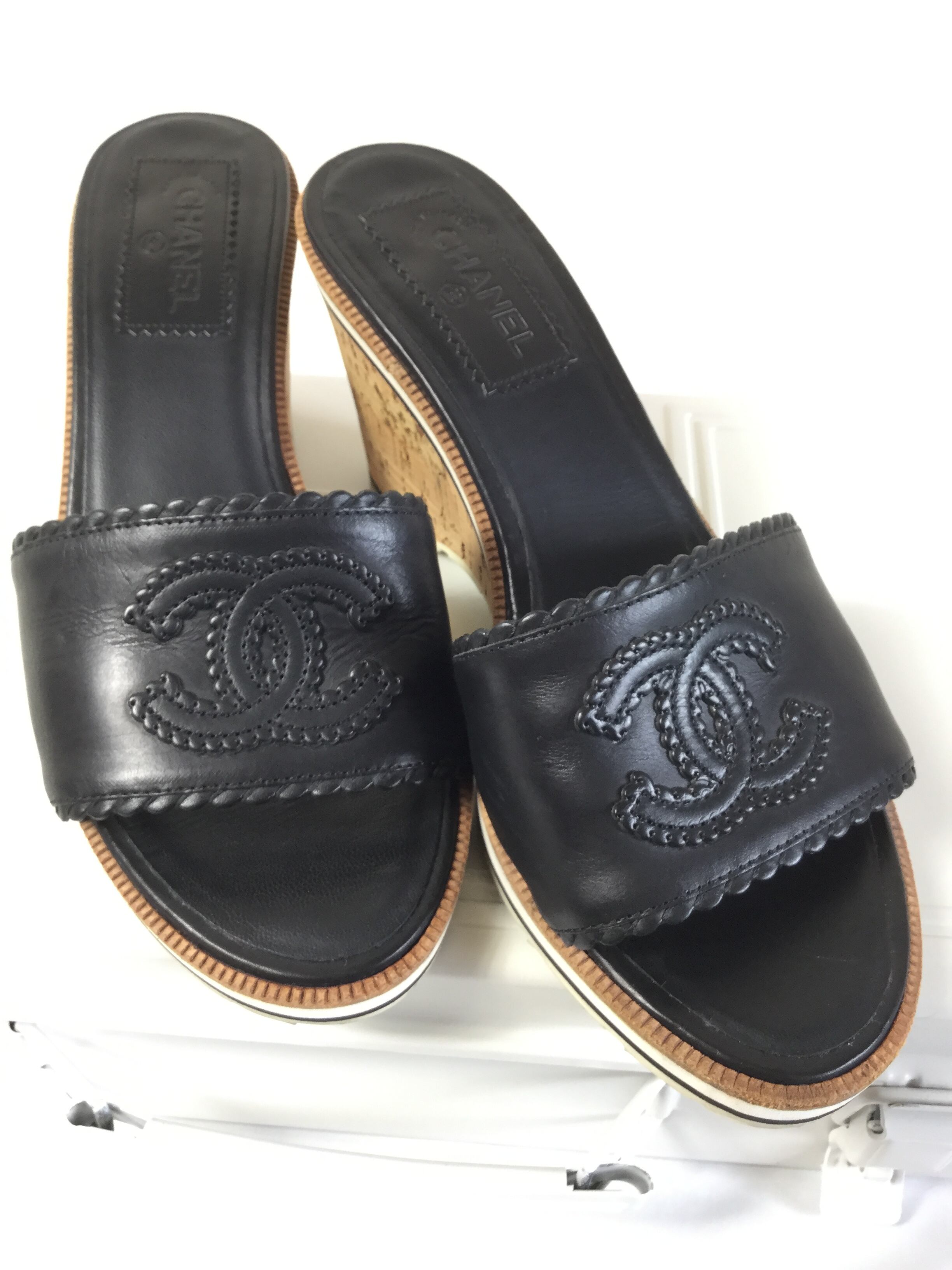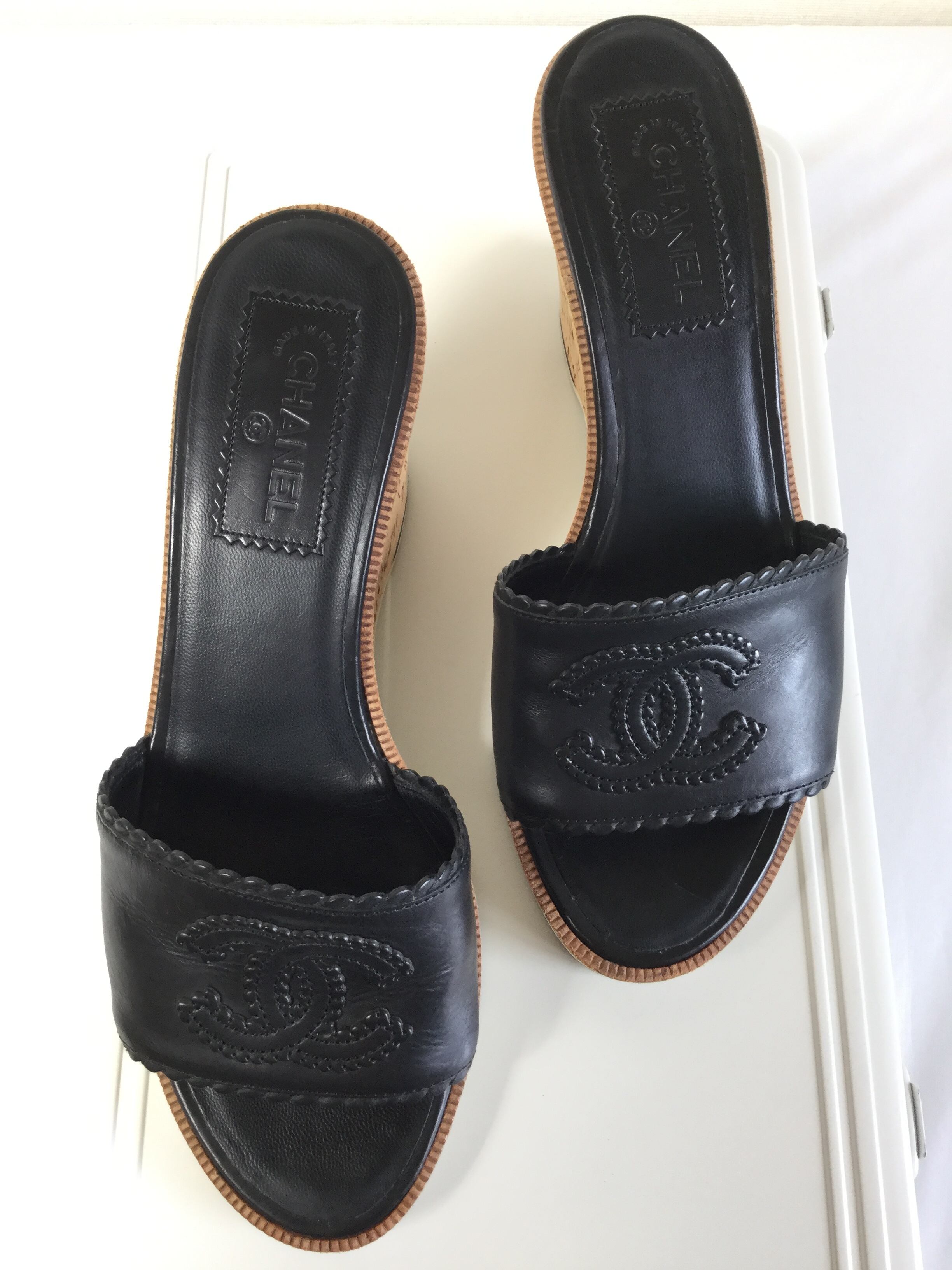 CHANEL ココマーク レザーサンダル 37 コルクソール