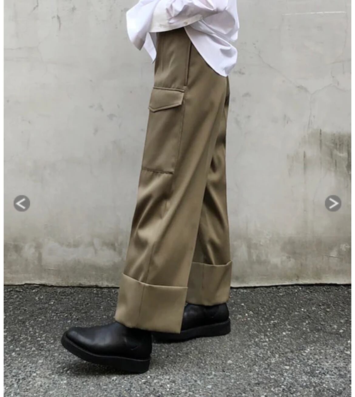 大きなフラップポケットと両サイドにシームポケット付、太めのシルエットながら上質なウールツイル生地で仕立てているので、きれいめな印象をキープできます。
