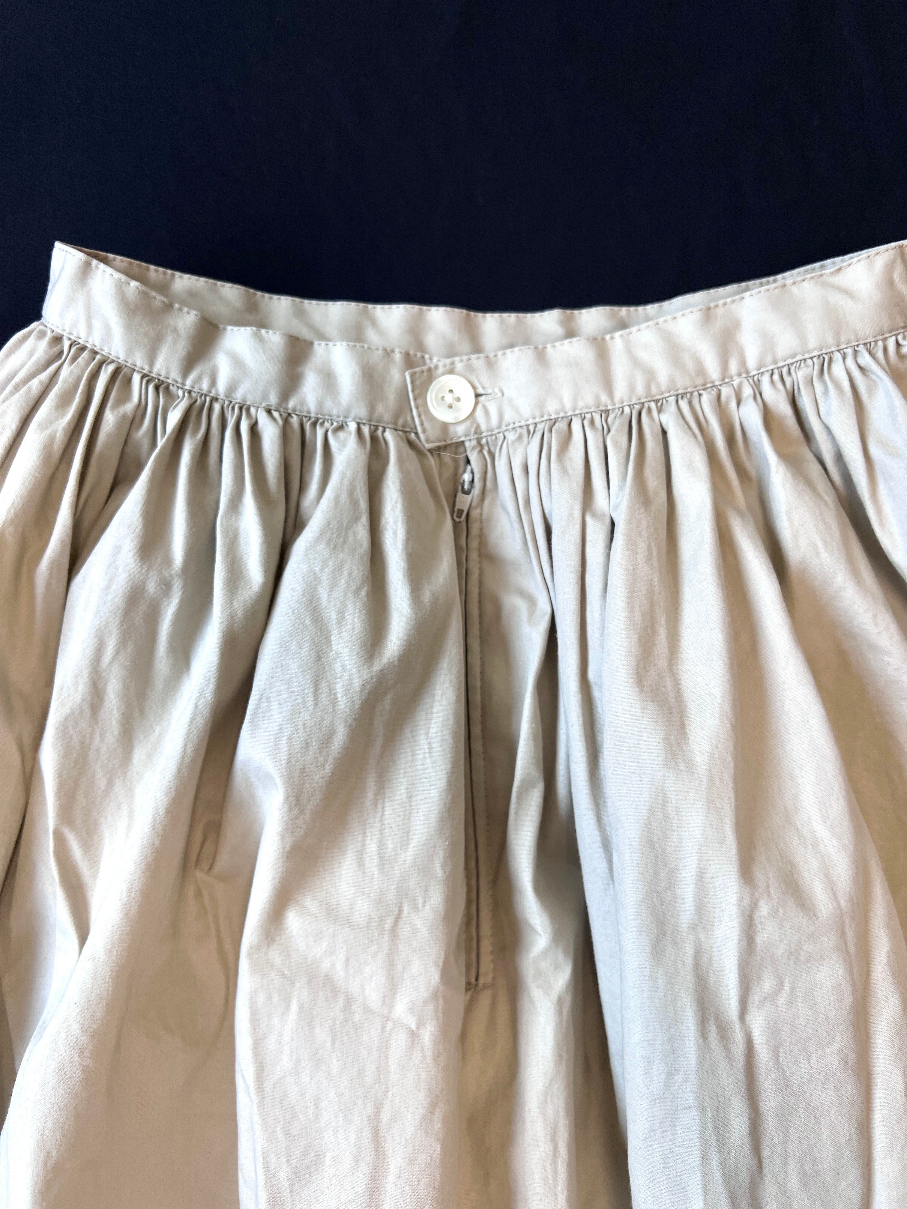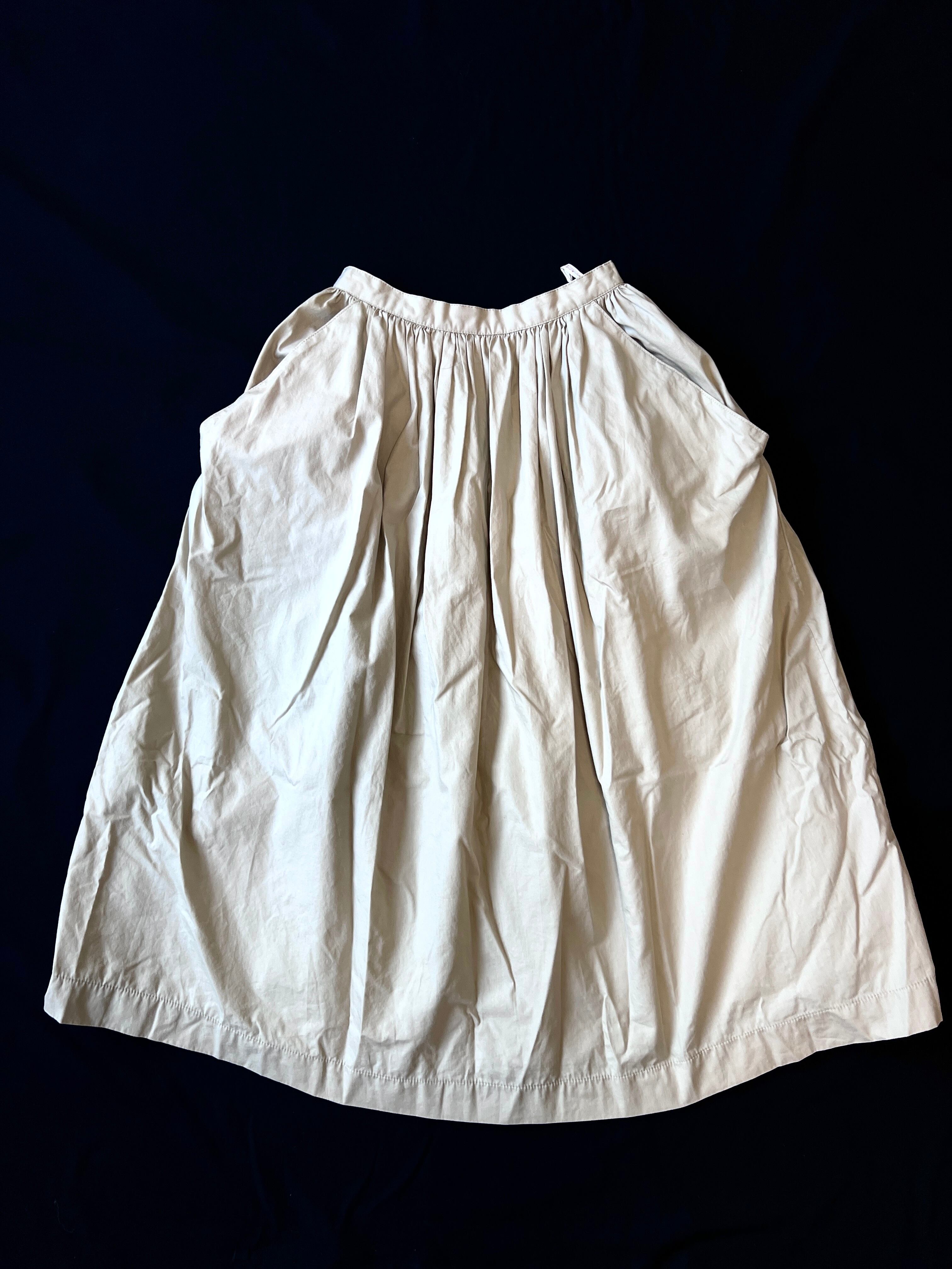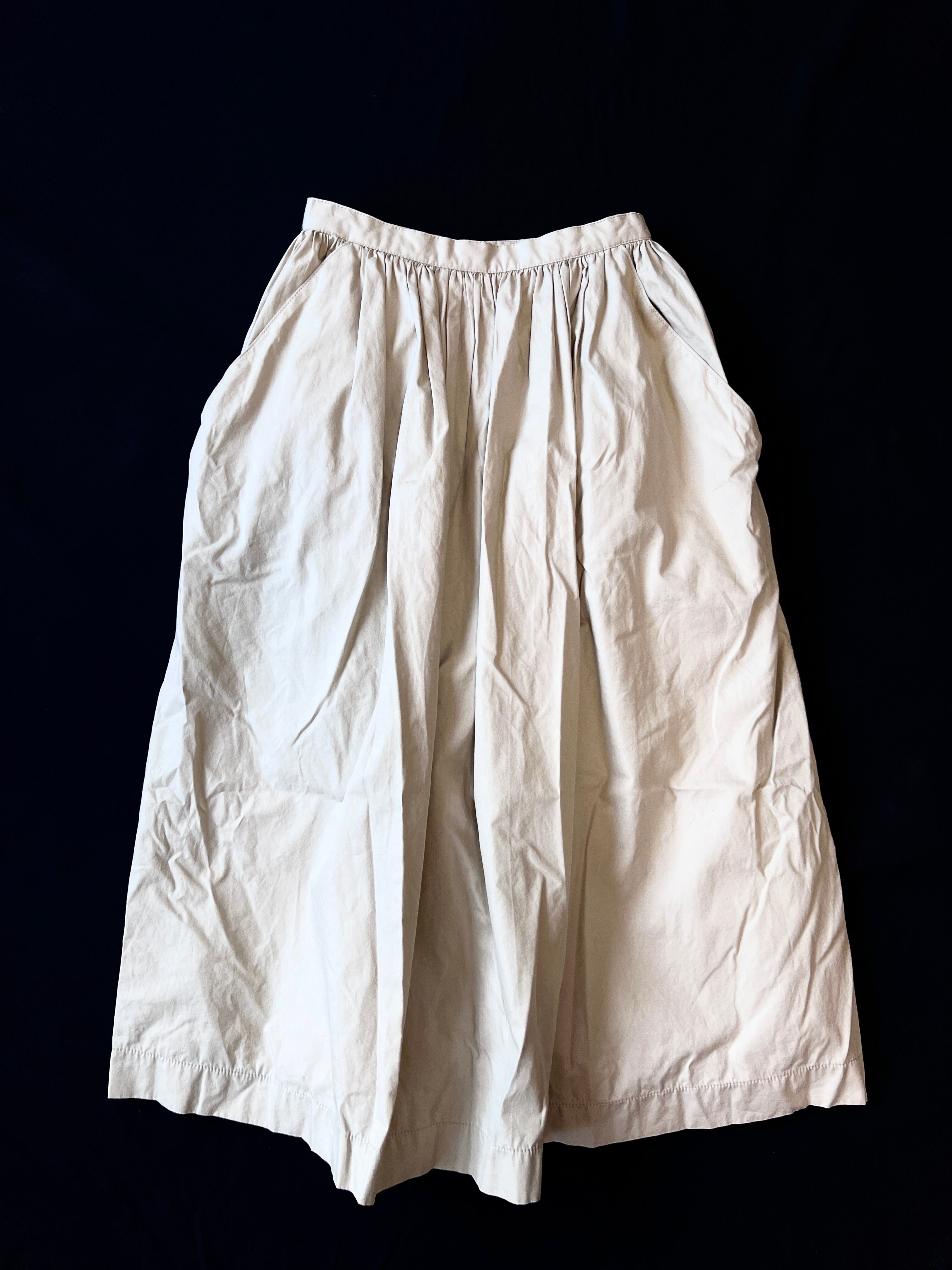 ウエストに配置されたギャザーからのボリューミーなラウンドシルエット、シンプルな無地素材ながら存在感を充分に感じるヴィンテージスカートです。
