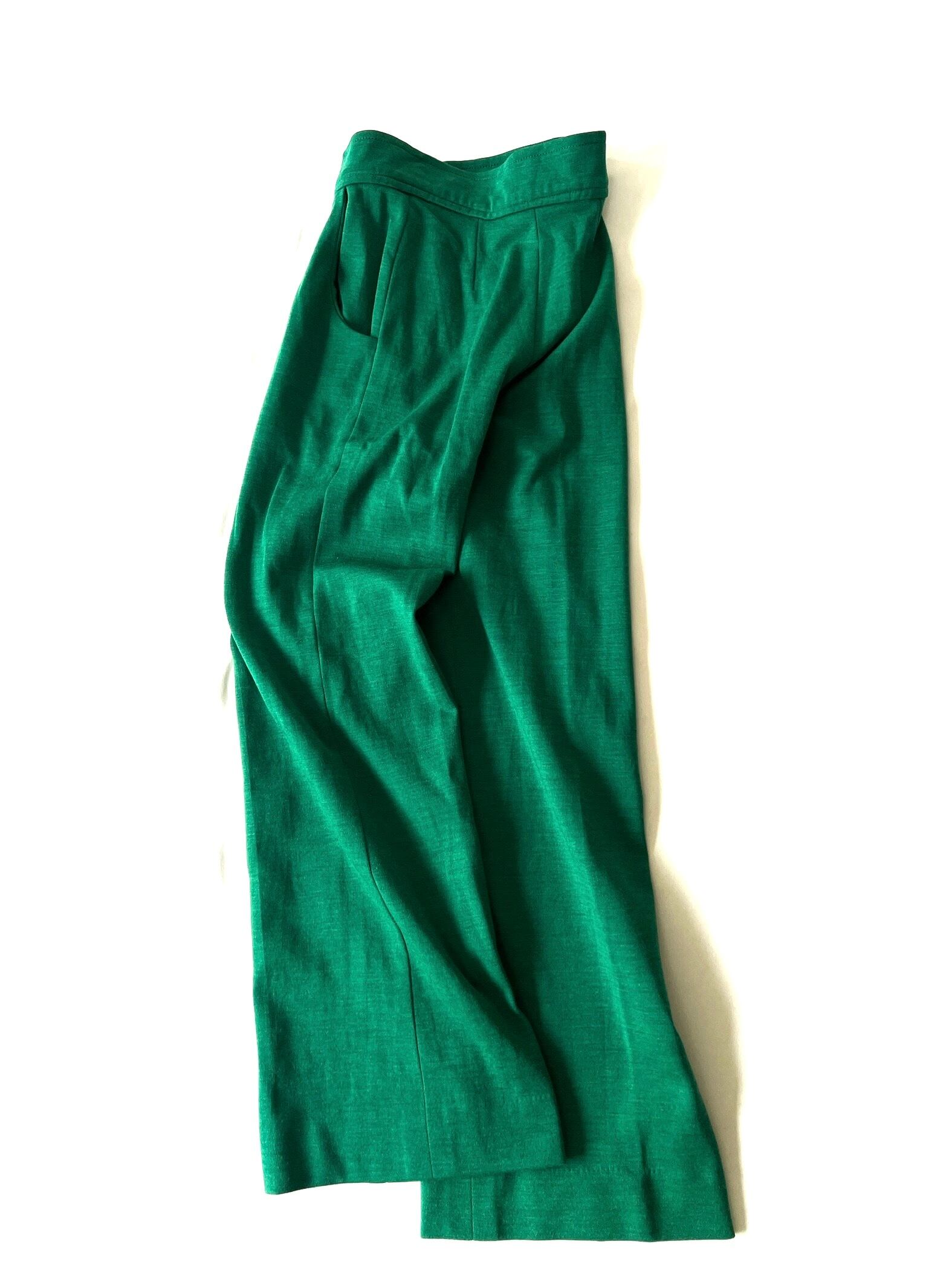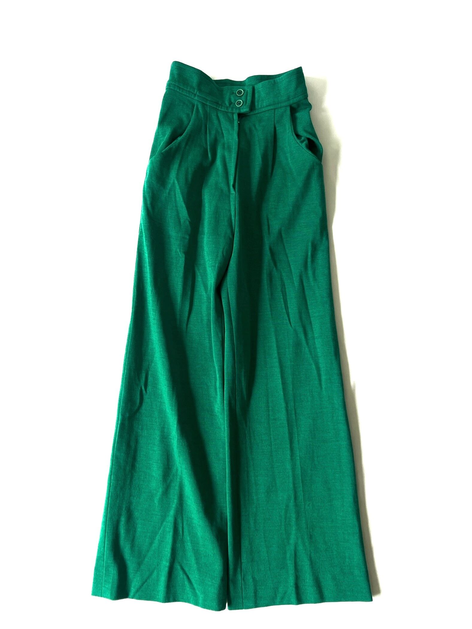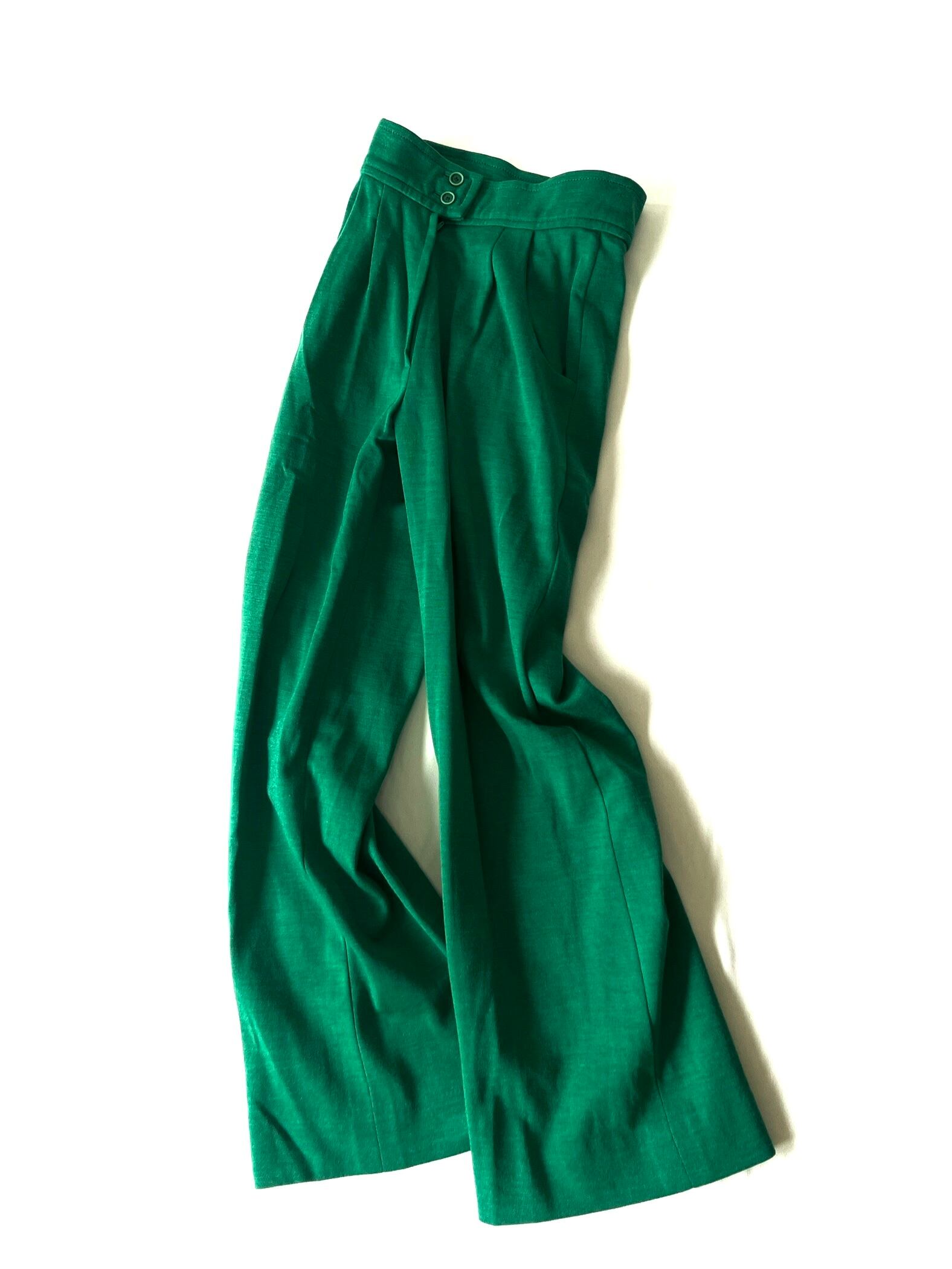 鮮やかグリーンのハイウエストワイドパンツです。