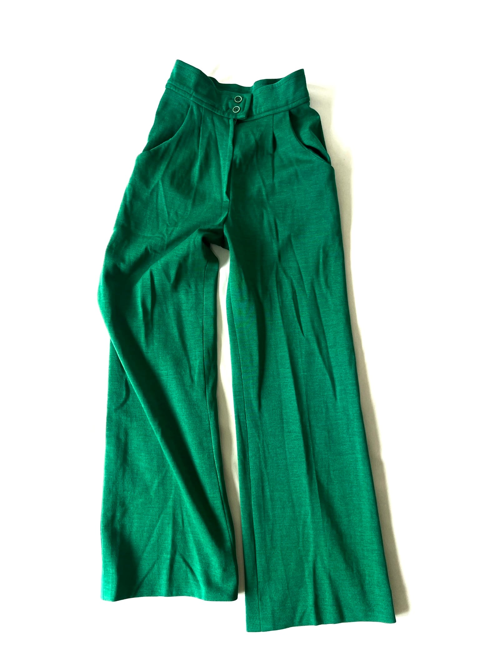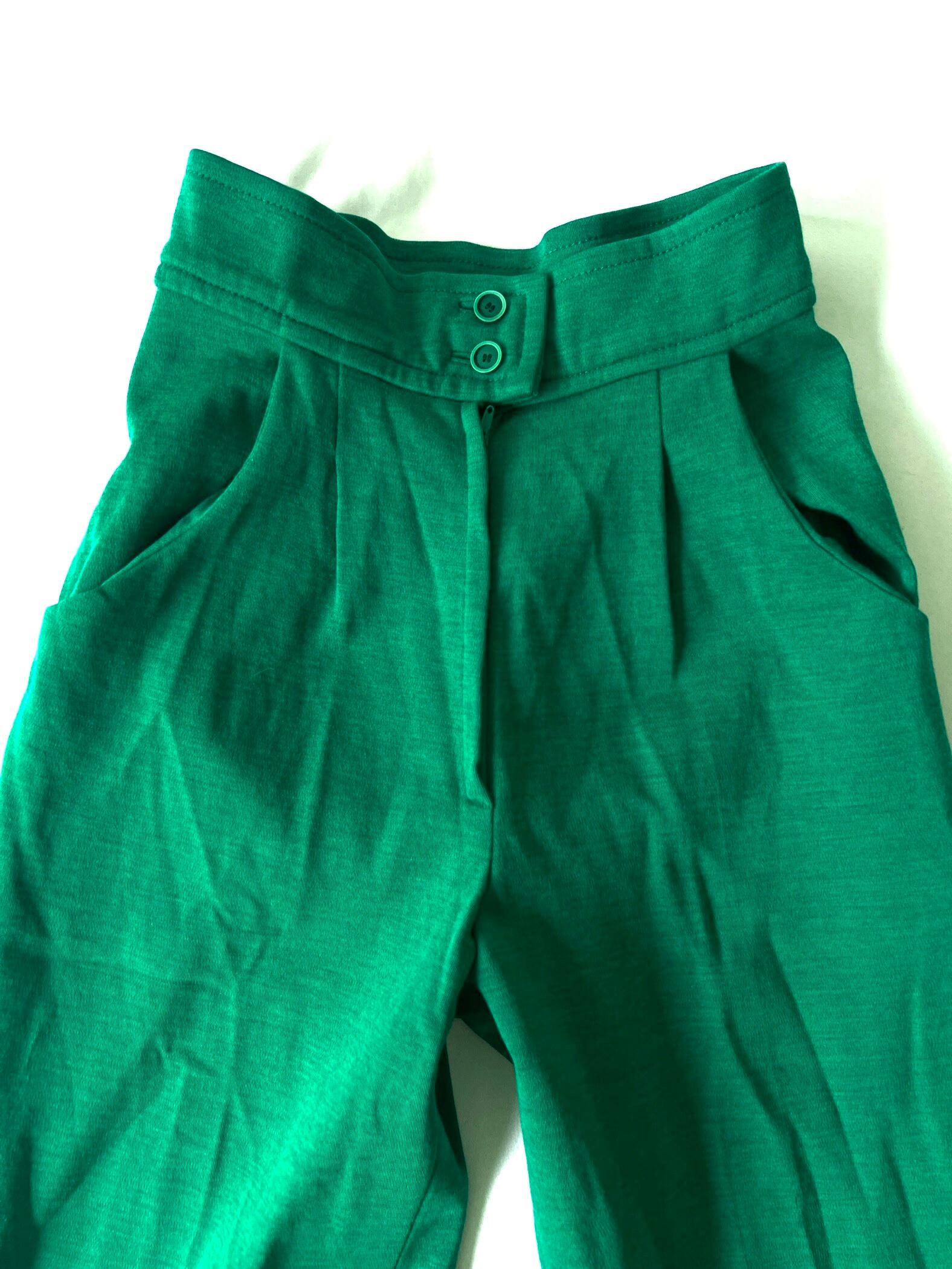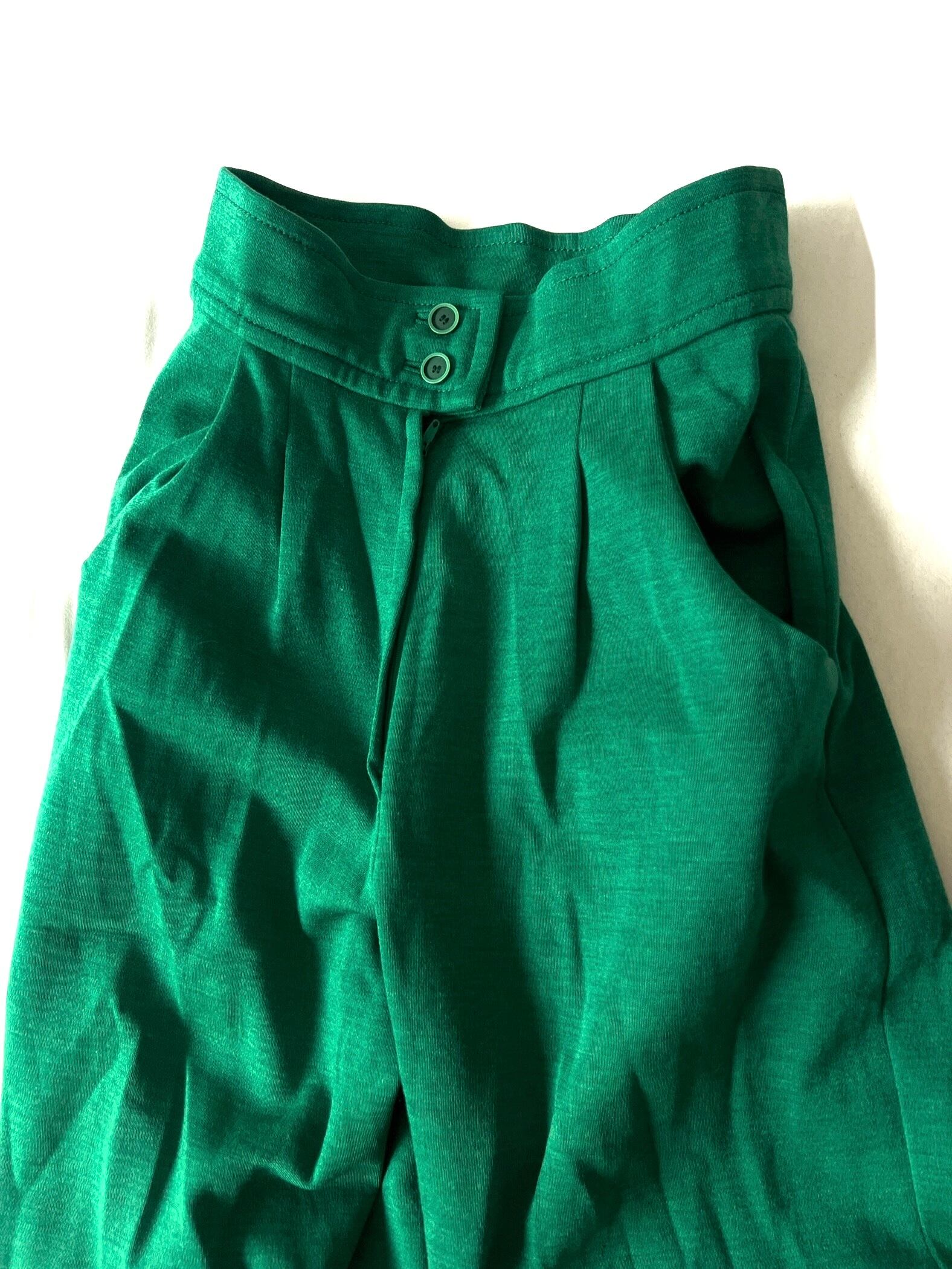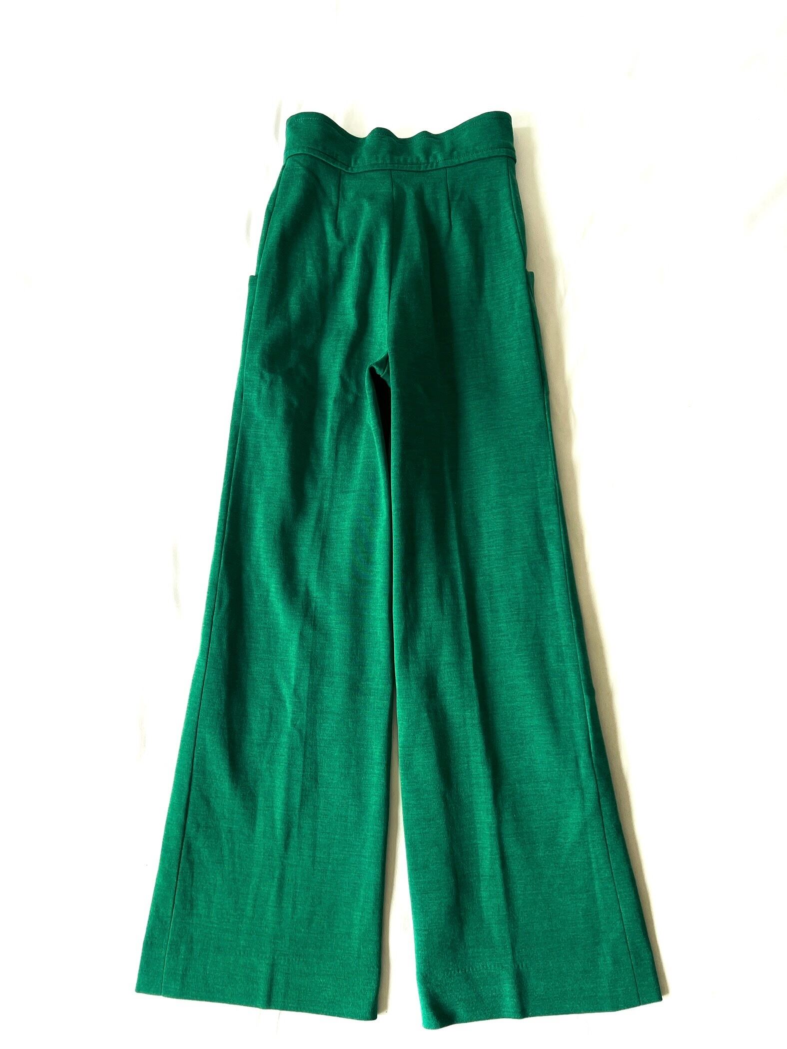 鮮やかグリーンのハイウエストワイドパンツです。