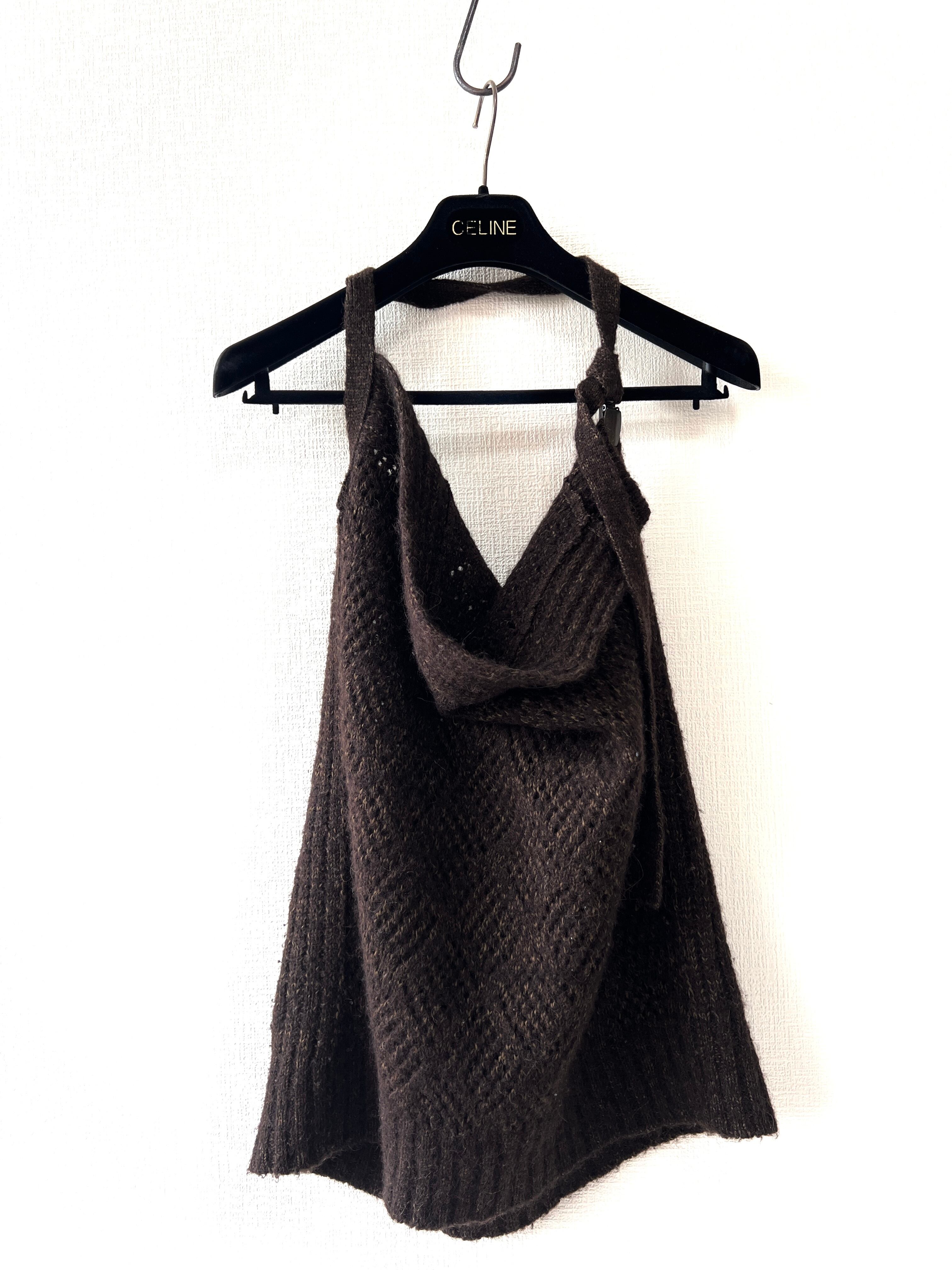Y's(ワイズ)のクリエイションが光る、編み目の表情豊かなヴィンテージのホルターネックニットです。