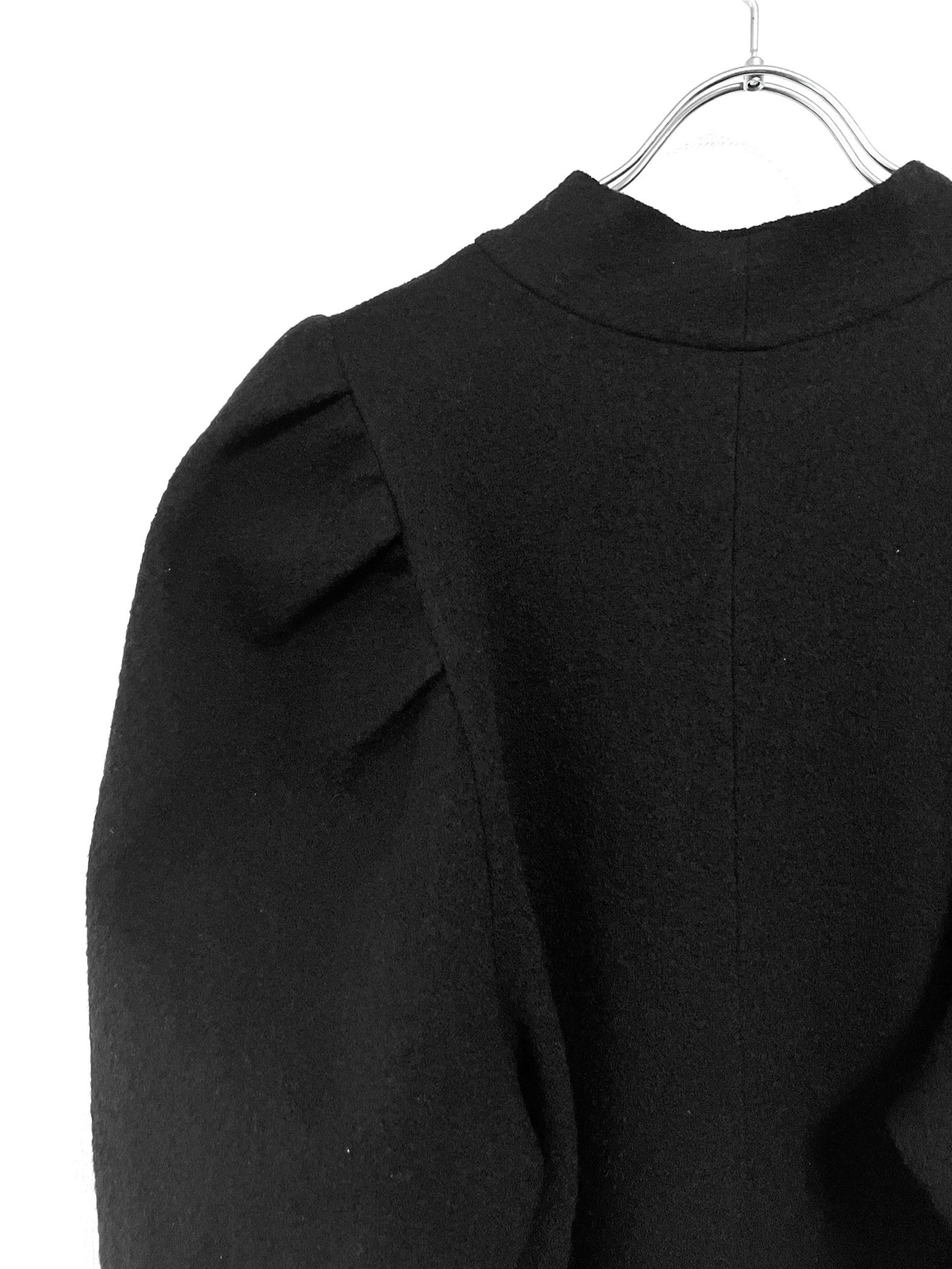肩幅は小さめに設計することで華奢に見えるよう工夫されており、ボリュームスリーブとの対比で洗練されたバランスを生み出します。