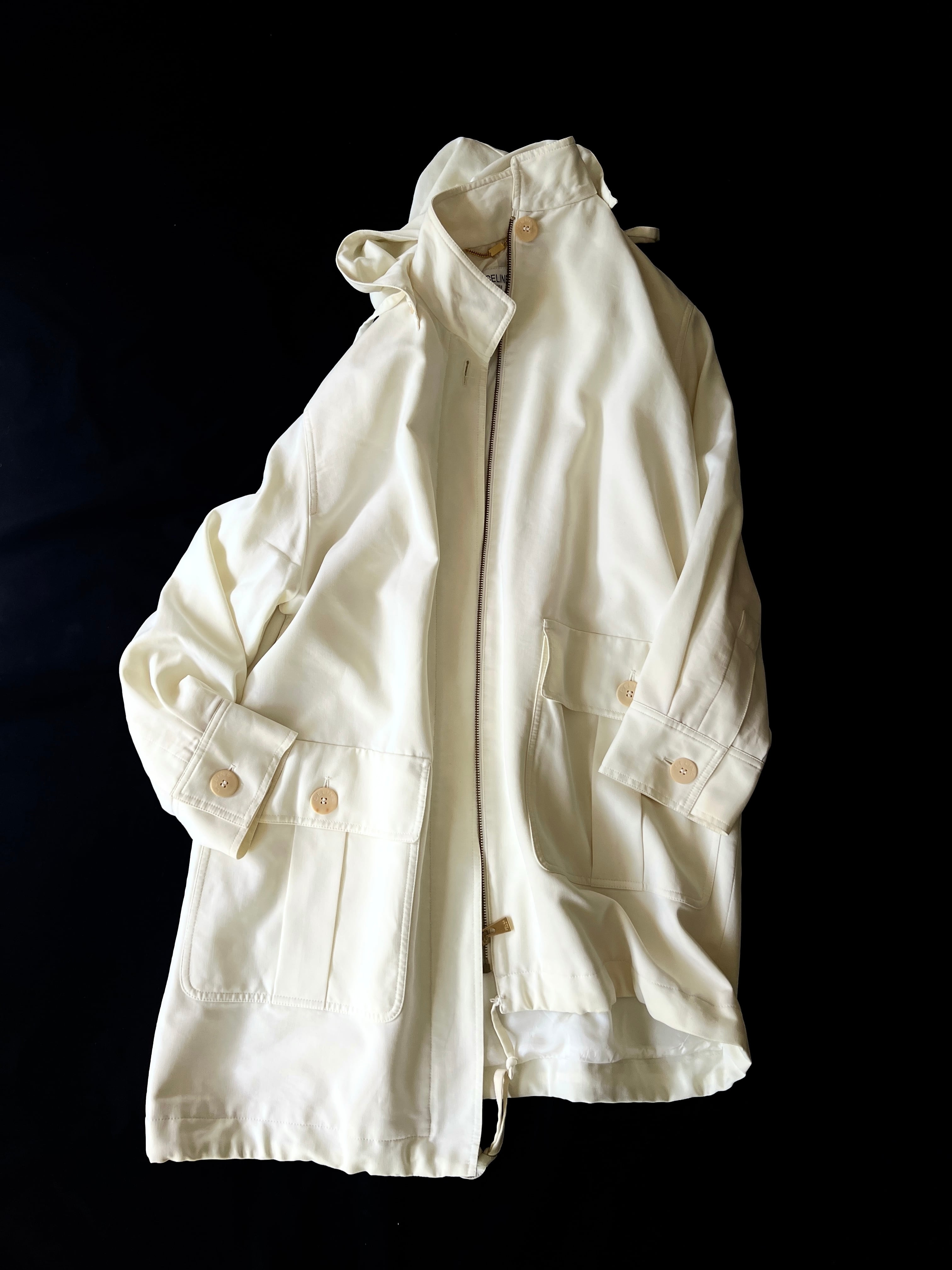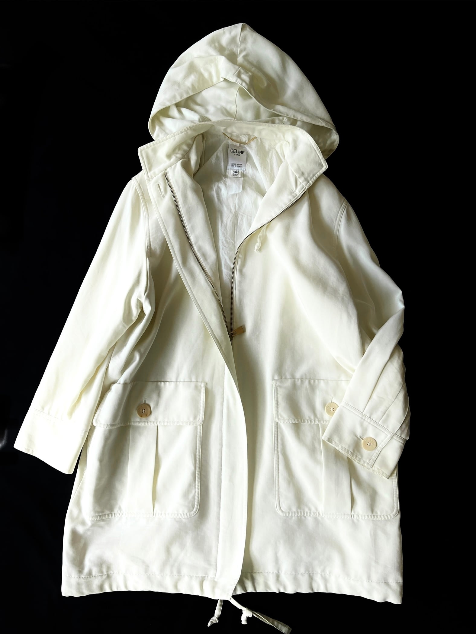 1990年代に全盛期を迎えたミニマリズムのムードを体現したセリーヌのフーデッドコート。