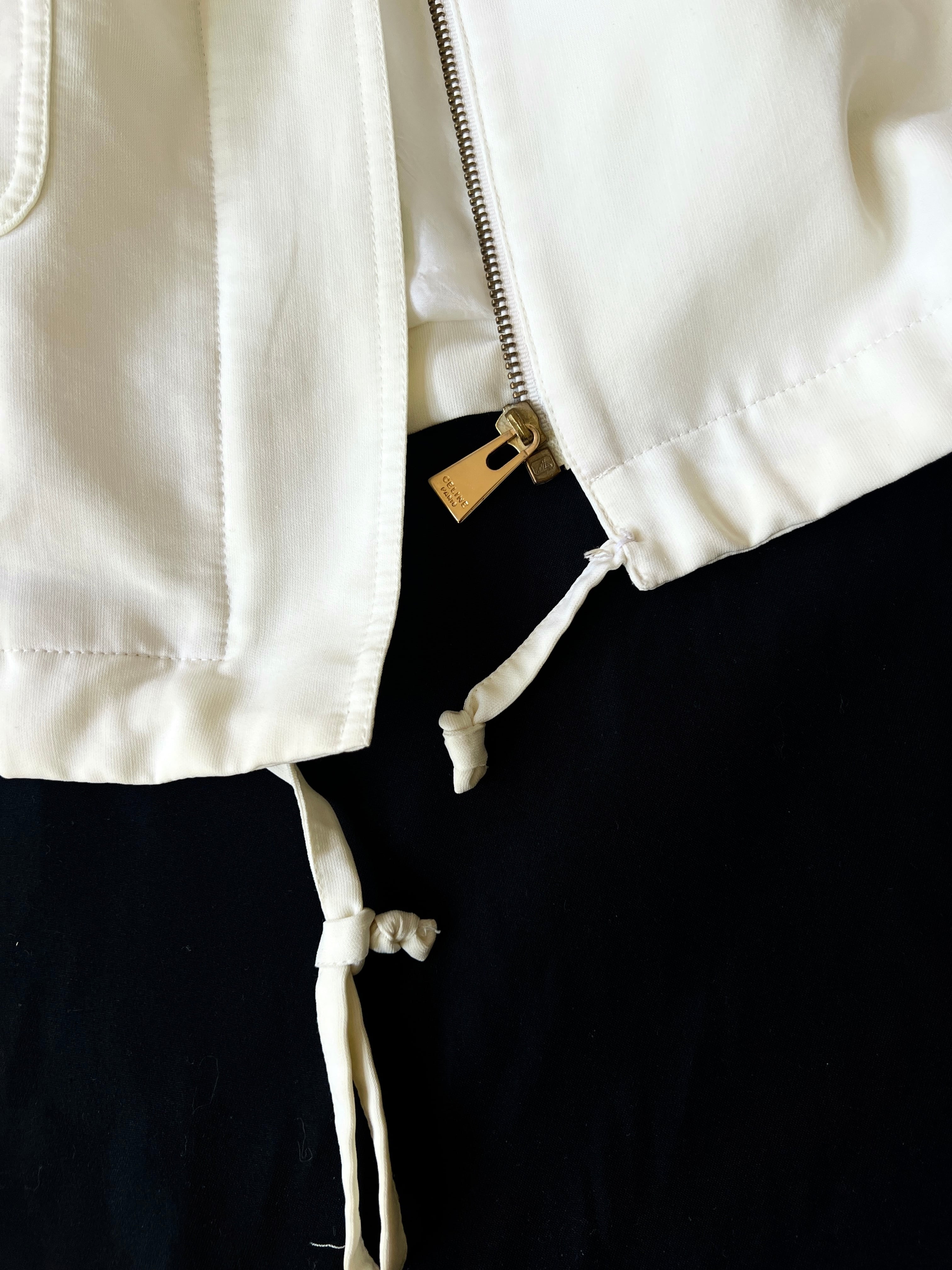 フード周りのドローストリングや、天然素材を思わせるロゴ入りのボタンなど、洗練されたディテール。職人の丁寧な仕事と高い縫製技術が保証されたmade in France.