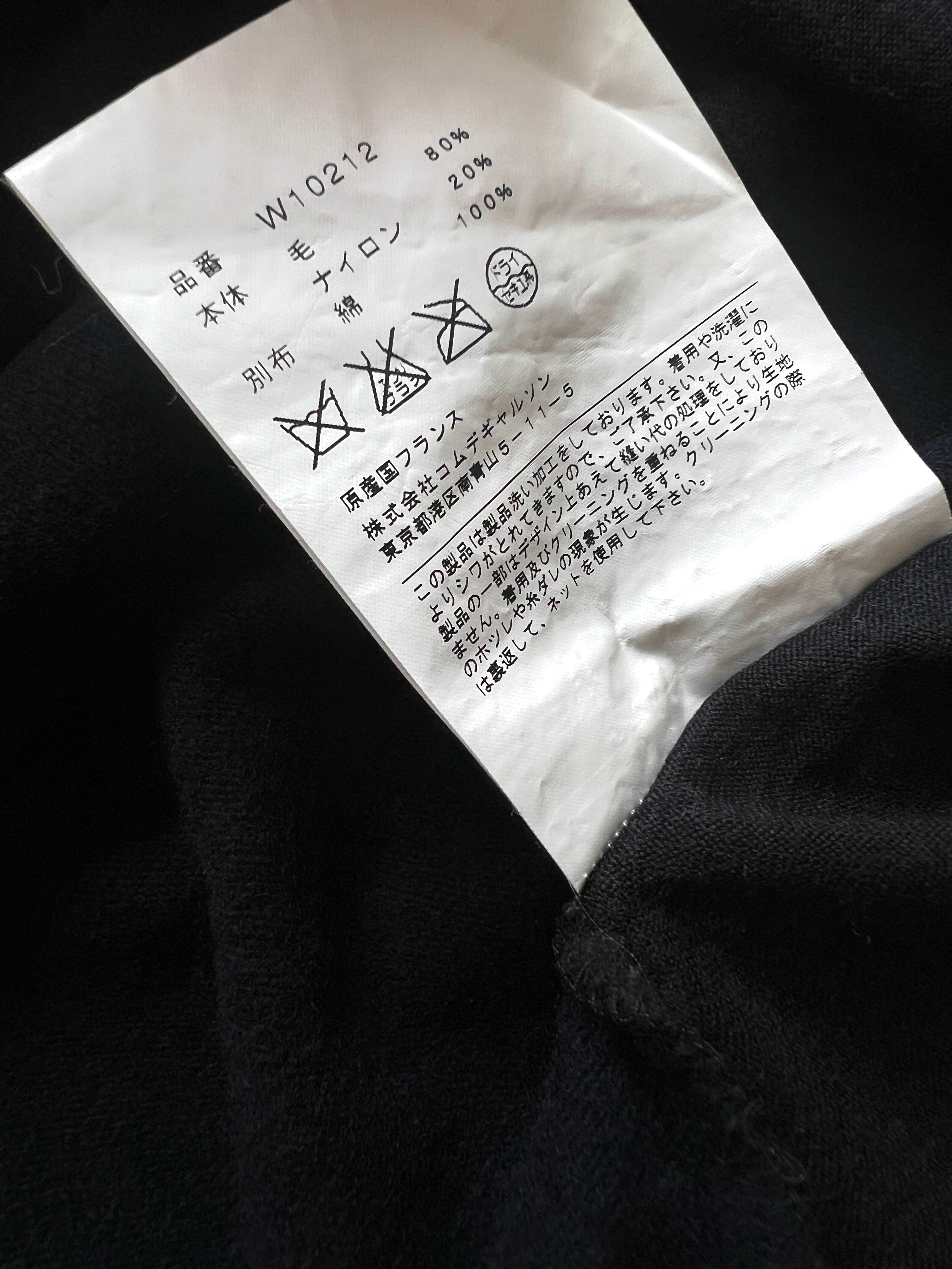 肩のラインや袖ぐり、など、あえてオーバーロックミシンで処理されたままの切りっぱなしのようなラフな状態で縫い合わされています。製作過程の痕跡をデザインとして見せる、ギャルソンが得意とする手法で、手作業の温かみと、ストリート的なアバンギャルド感が加わりコーディネートに複雑な表情をもたらしてくれる一着です。