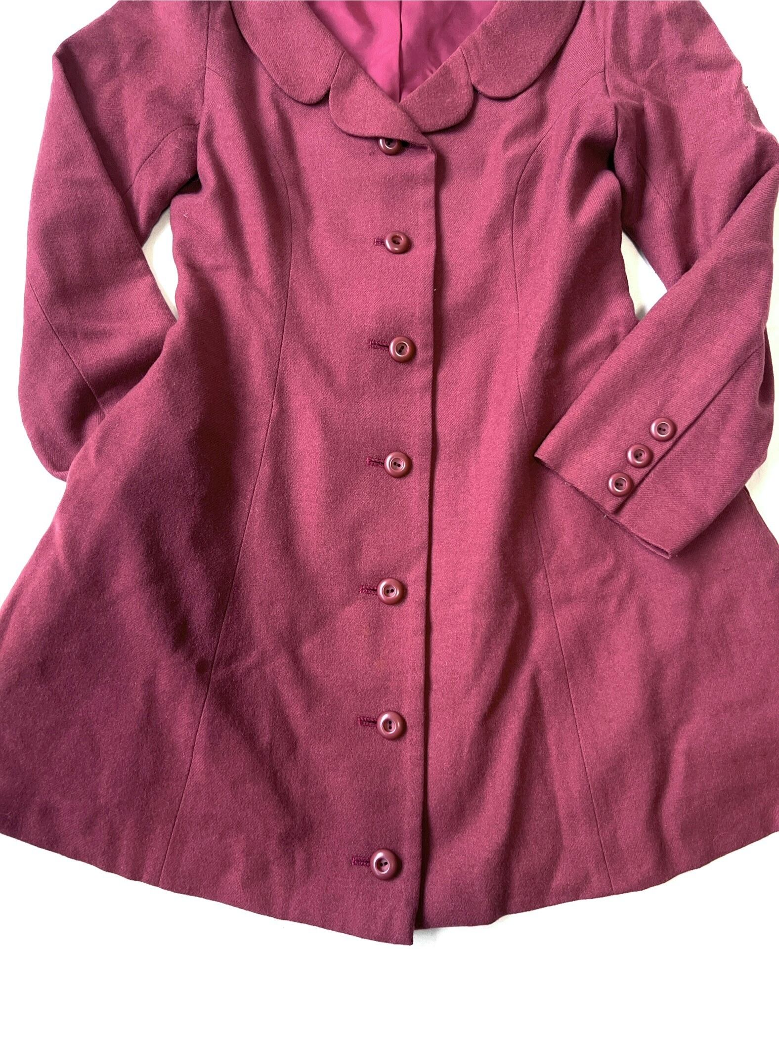 襟元は愛らしいスカラップのラウンドカラー、
