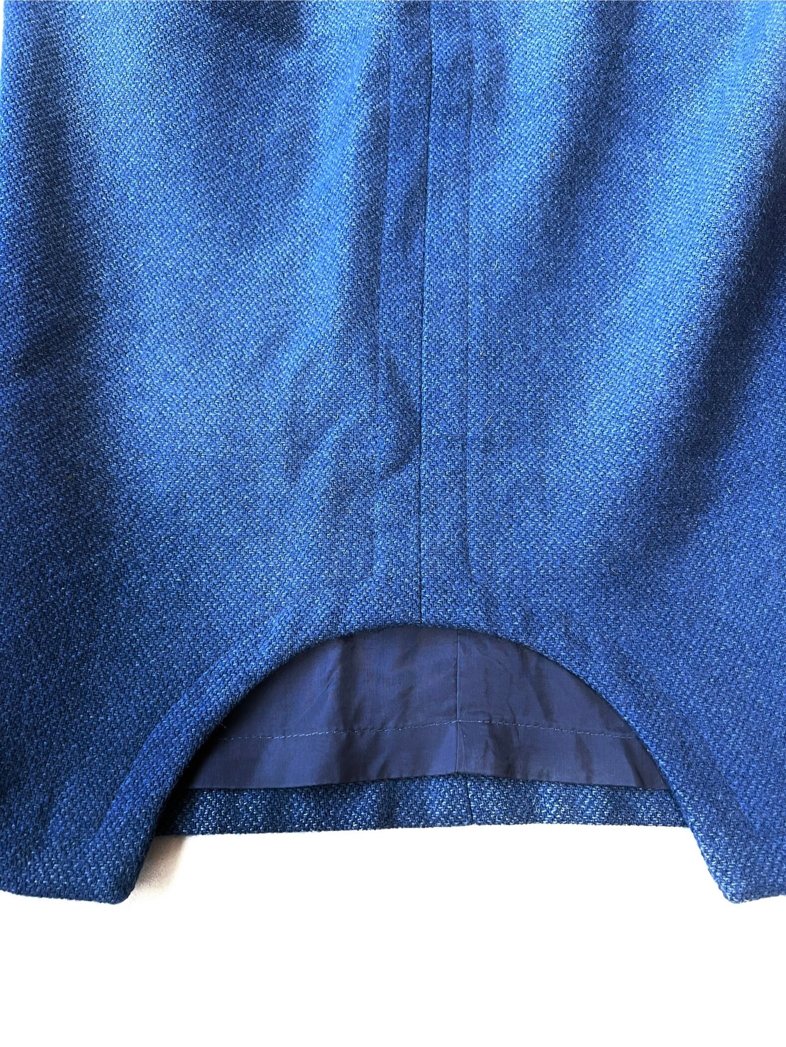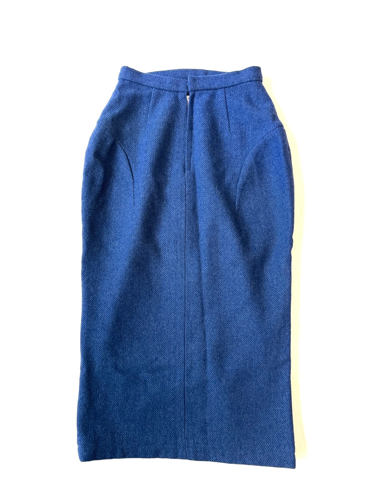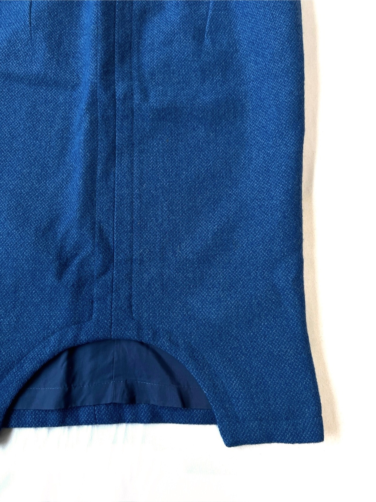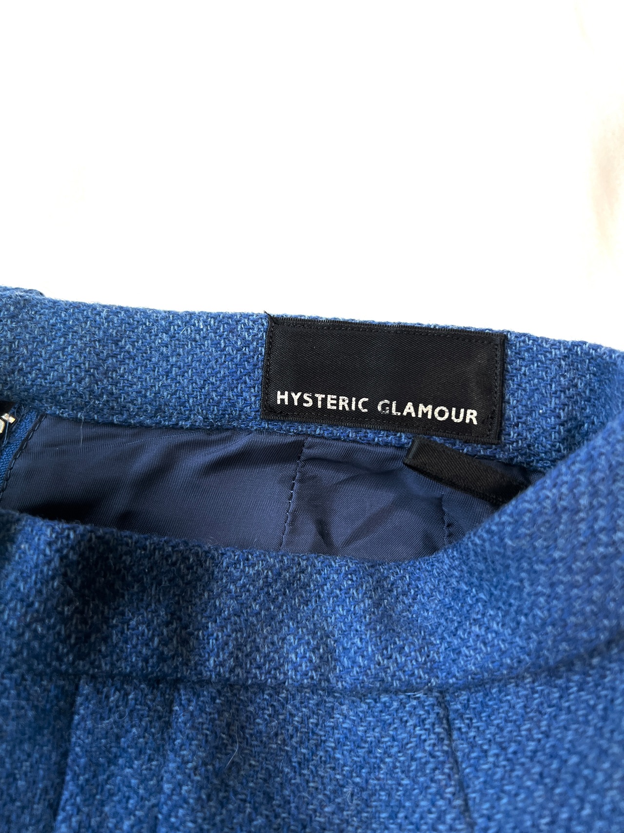 鮮やかなブルーの上質な素材と、計算されたシルエット、初期のヒステリックならではの大胆なディテール、あえて無地パターンを採用したモードを感じる希少な逸品です。