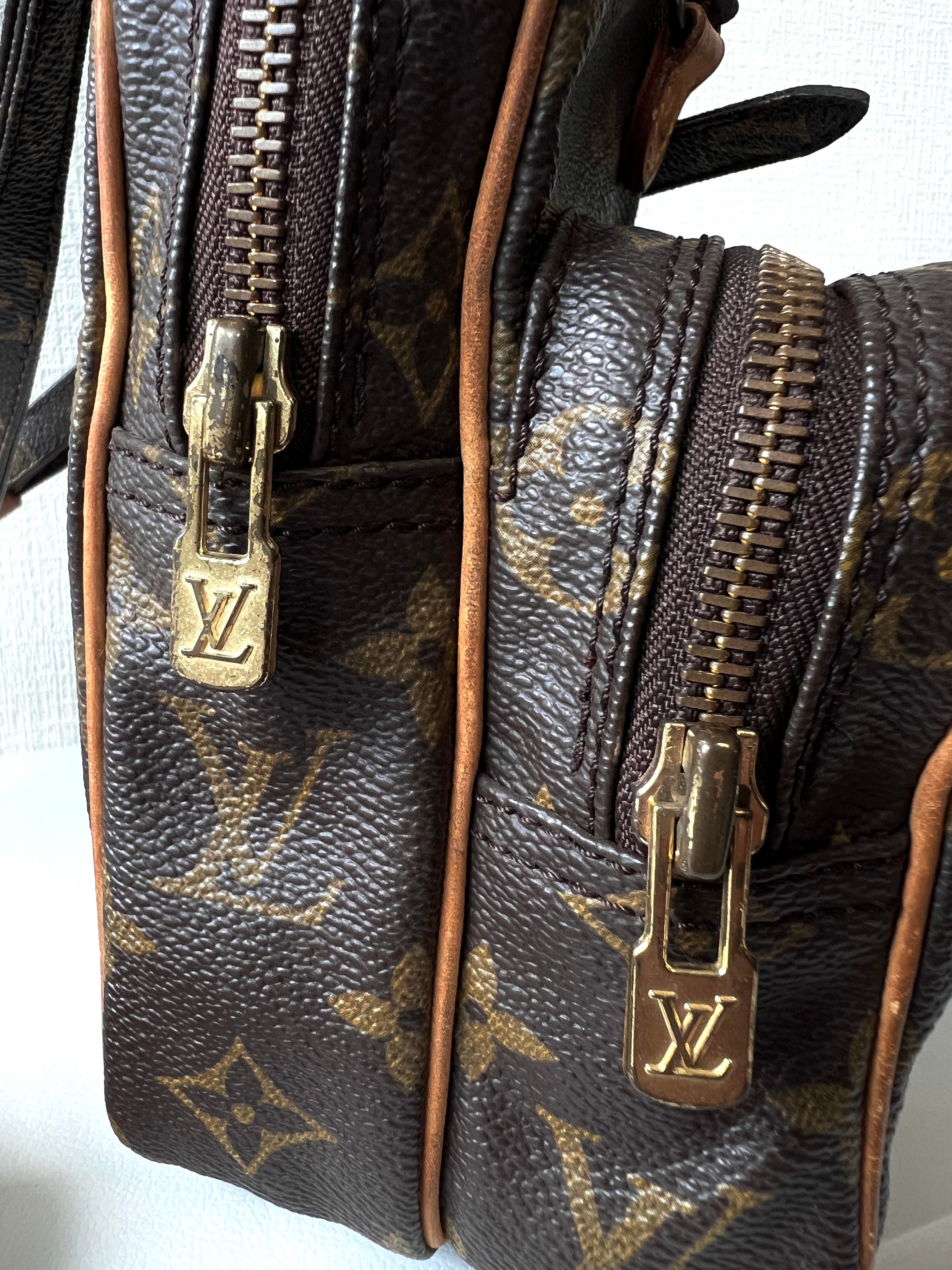 アイコニックなモノグラム・キャンバスに、ヌメ革のトリミングが時を経て魅力を放っています。