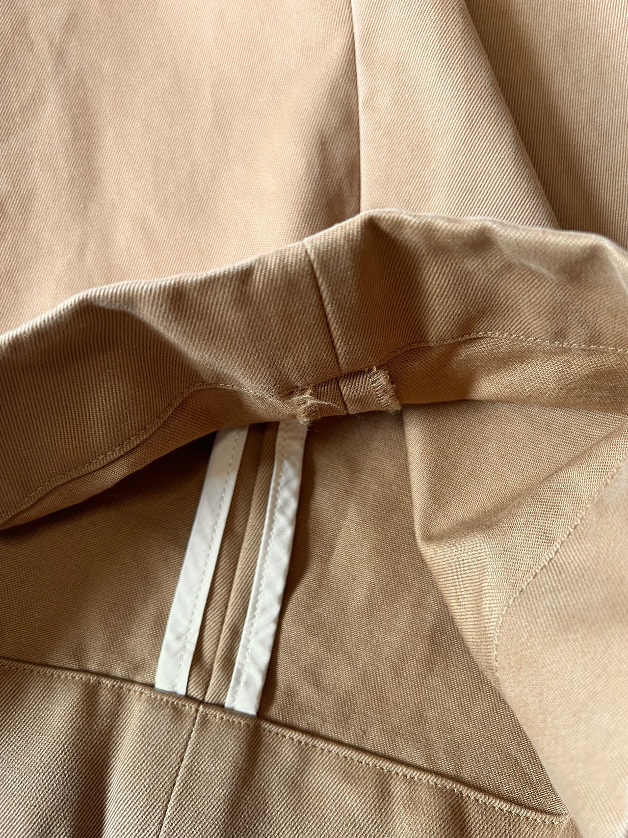 表情のあるツイルの模様が魅力的で、ハリがあり、独特なシルエットを美しく表現しています。