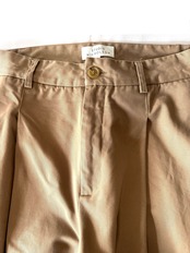 フロントのワンプリーツ、やや起毛感のある生地の質感で上品さもしっかりと組み込んでいます。