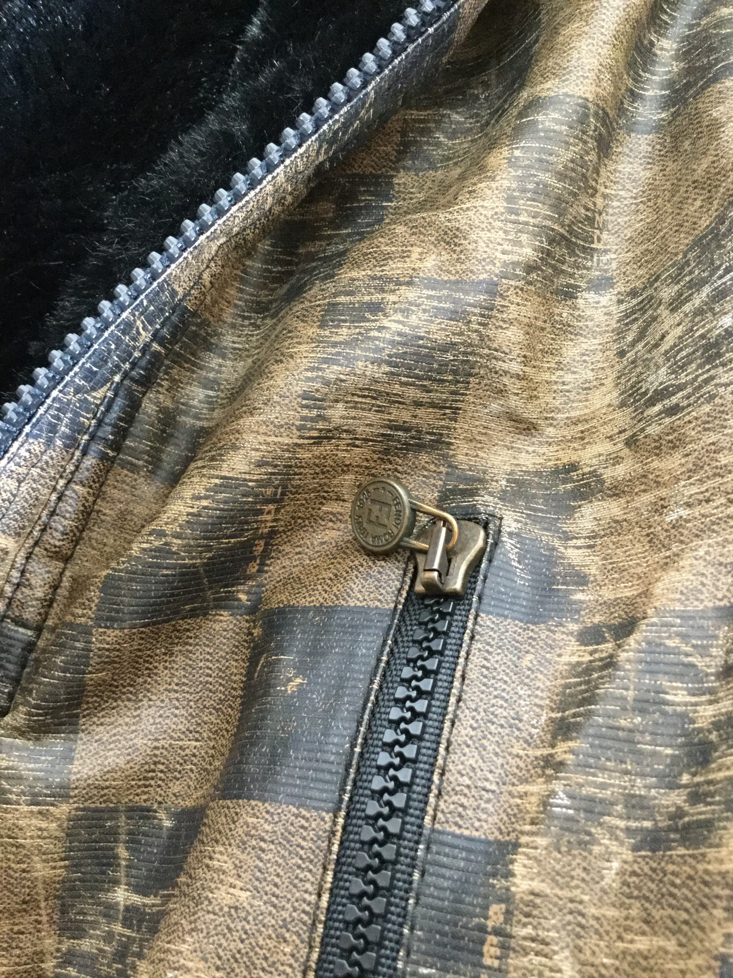 ブラックのフェイクファーとチェッカーフラッグ柄のダブルフェイス仕様!
