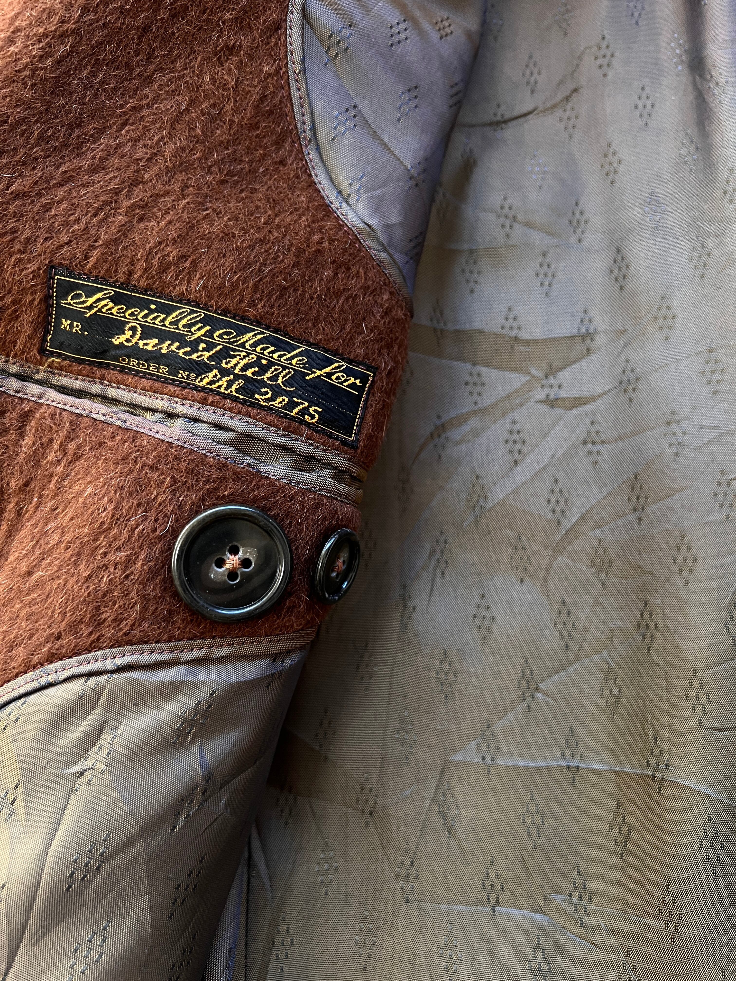 1960年代に香港・九龍の"MARILELA'S CUSTOM TAILORS"(マリレラズ・カスタム・テーラーズ)にて、特定のお客様のために仕立てられたオーダーメイドコート。