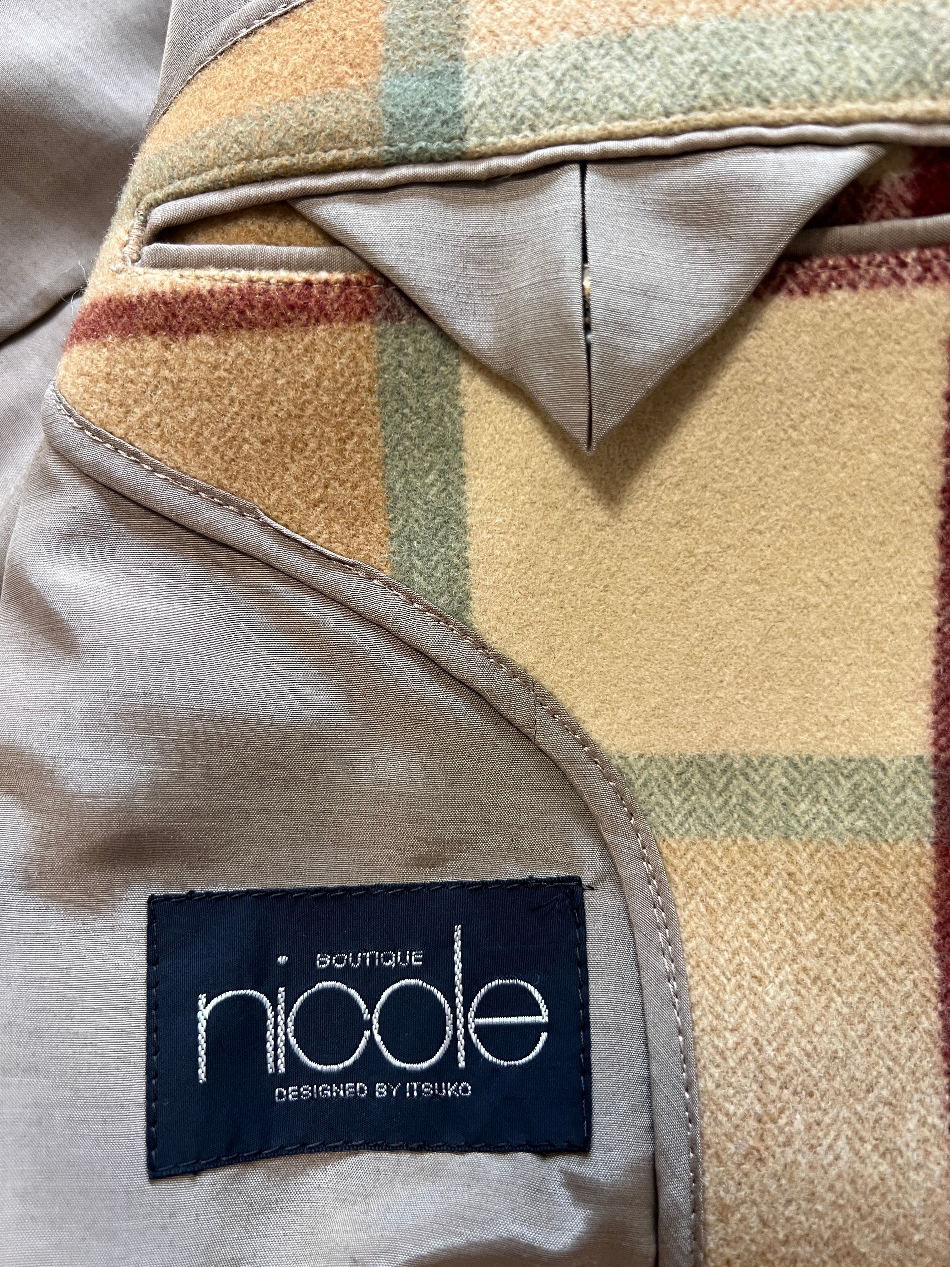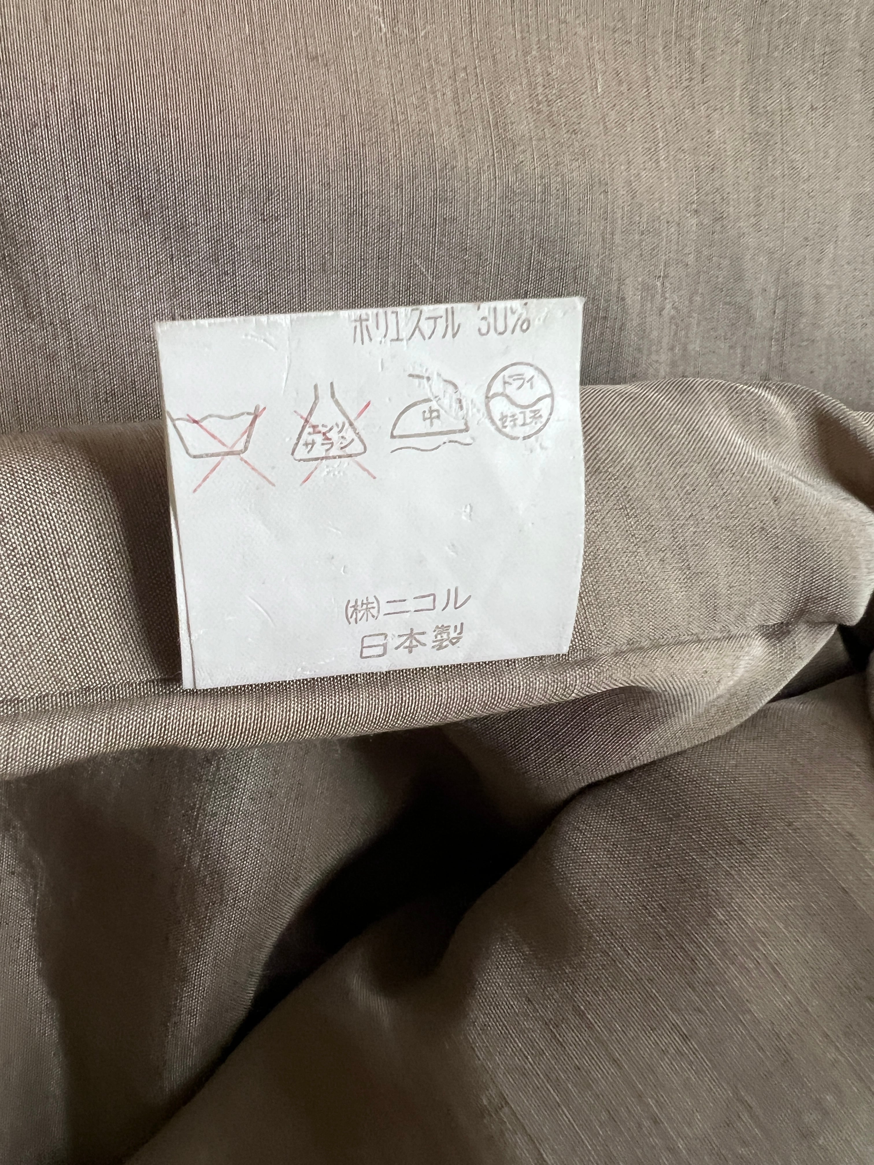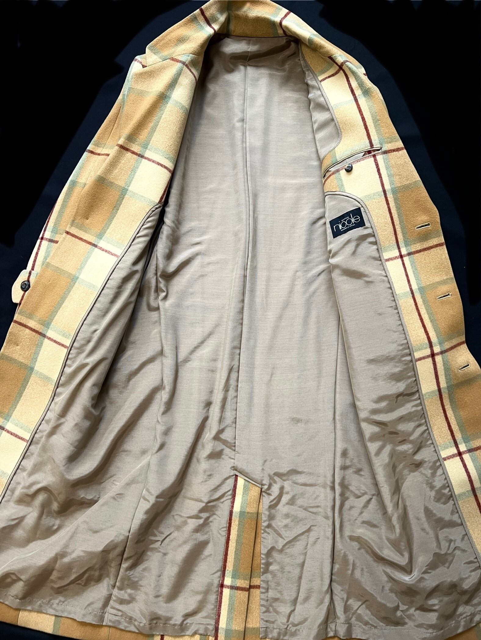 デザイナーの松田光弘氏(ニコル創業者)の美学を継承しつつ、Itsuko氏が手がけたこの時代のコートは、現在のトレンドである「オーバーサイズ」や「マキシ丈」に完璧にフィットしながらも、仕立ての良さが際立っています。