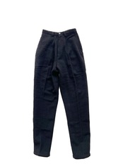 股上が深く、腰回りにゆとりを持たせたクラシックなハイウエストシルエット。裾に向かって緩やかにテーパードしていますが、こちらはかなり小さめの作りとなっています。伸縮性はあります。