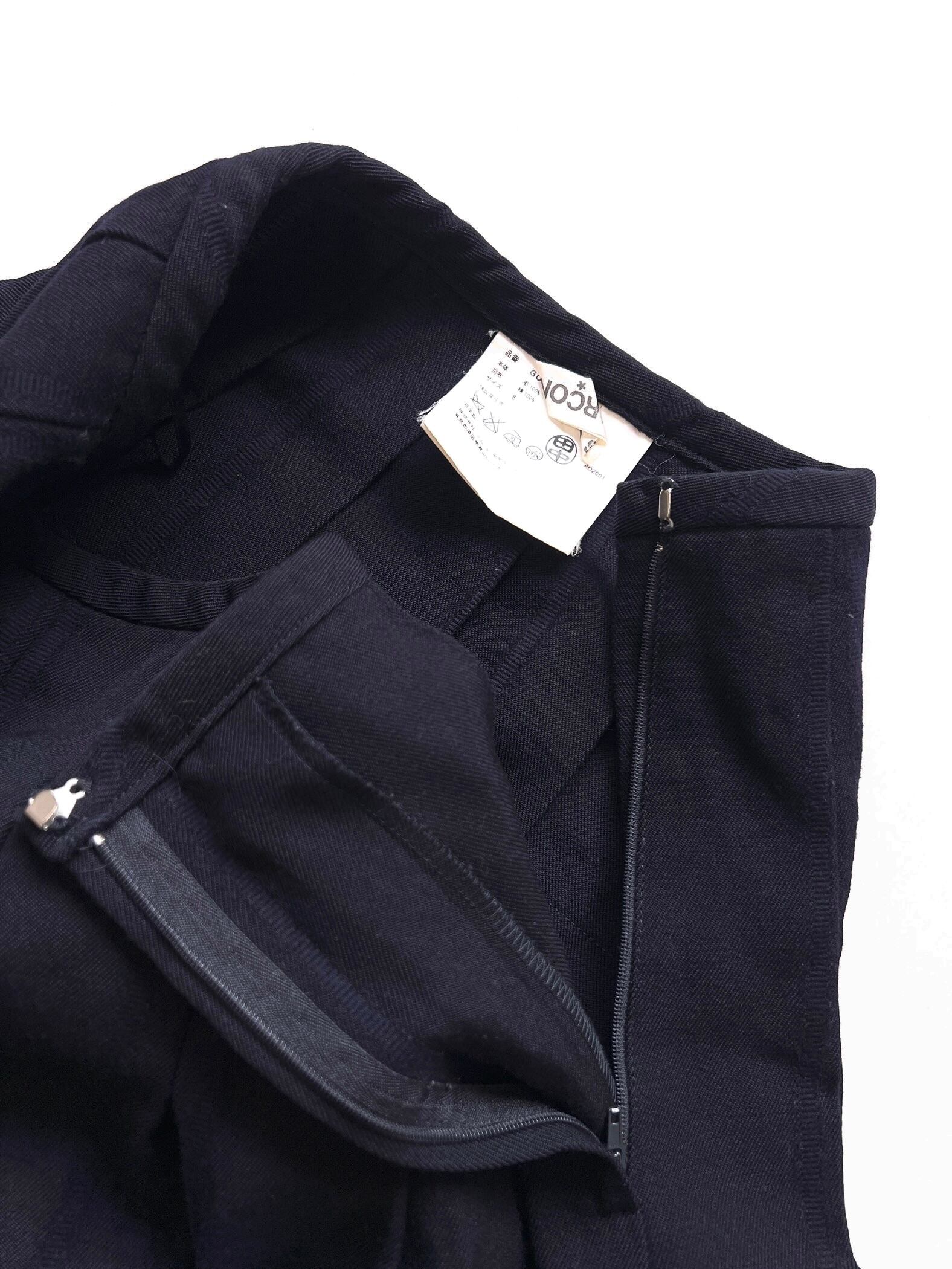 ※裾部分のベルベット地には、上部のプリーツラインと連動するような形で、起毛の摩耗(削げ)が見られます。これは長年の保管や着用により、プリーツの折り目がベルベットに干渉して生まれたアーカイブ特有の経年変化です。生地の破れではなく、ヴィンテージ・ギャルソンらしい「テクスチャーの対比」の一部としてご理解いただける方におすすめいたします。