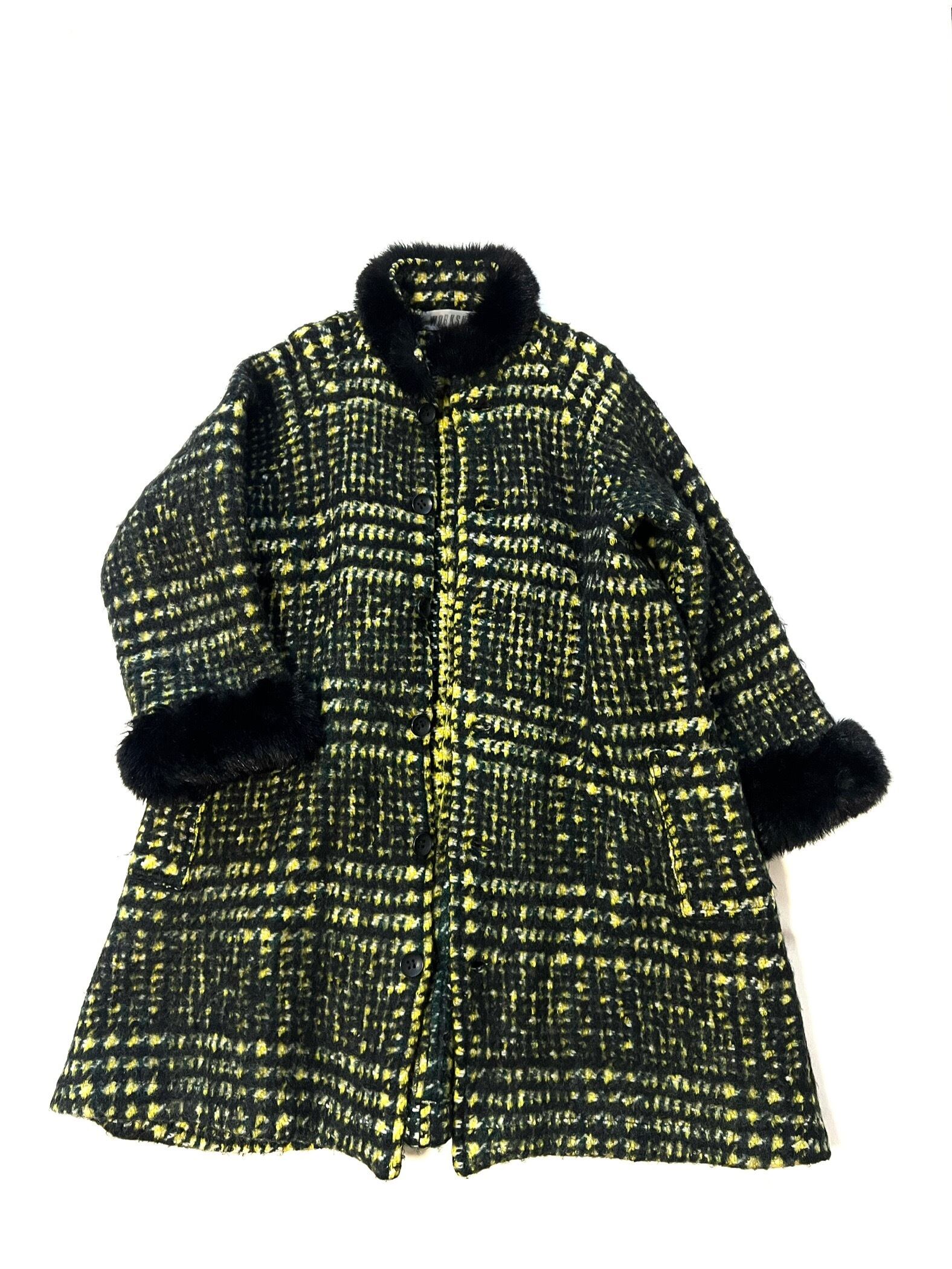 1980's WORK SHOP by Yohji Yamamoto Faux-Fur Trimmed Knit Coat