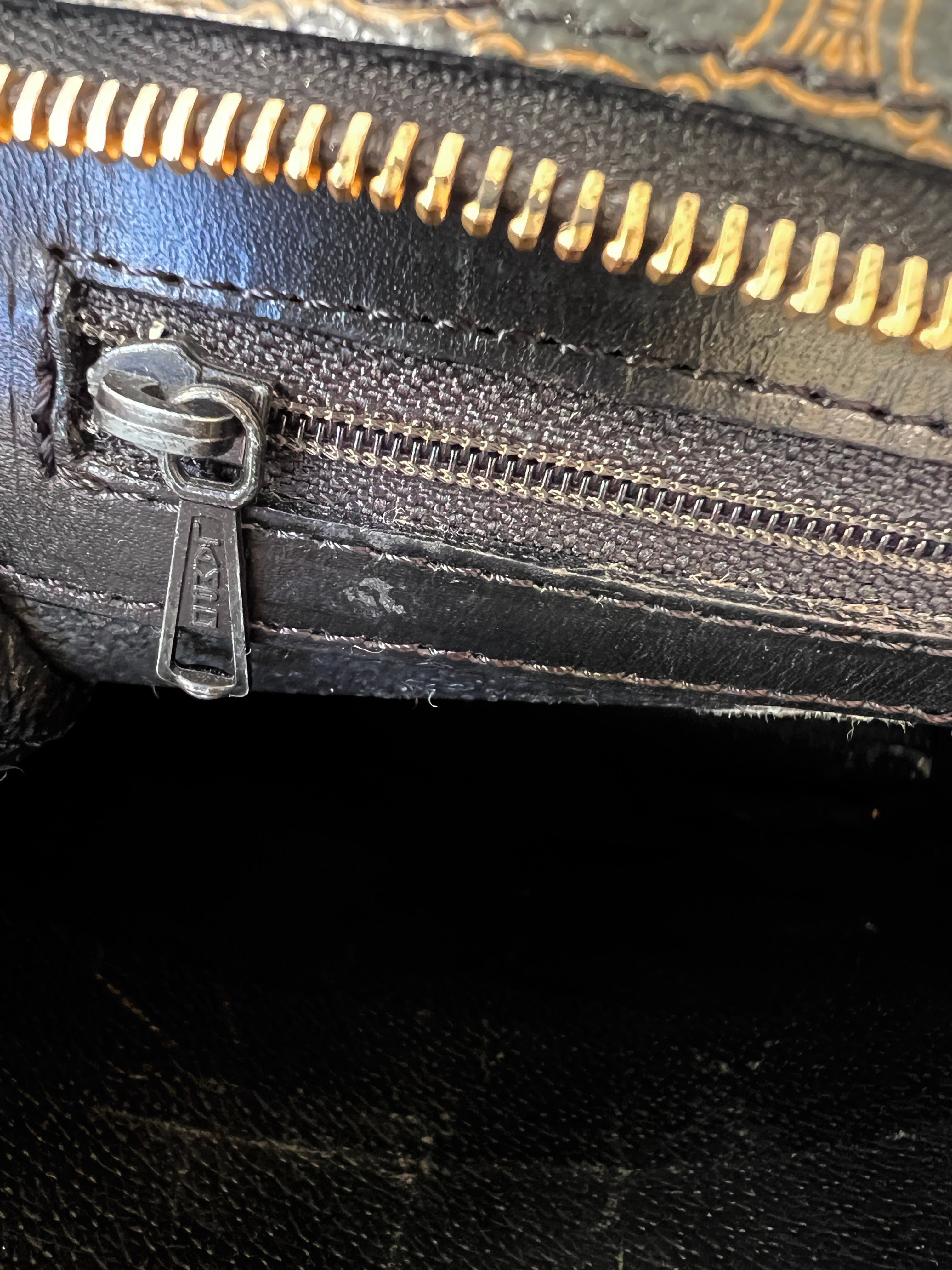 使用感や背面中央のブラックレザー部分に、使用に伴う薄いスリキズがございます。またバッグ内の表面に所々、スレがあります。画像でご確認下さい。