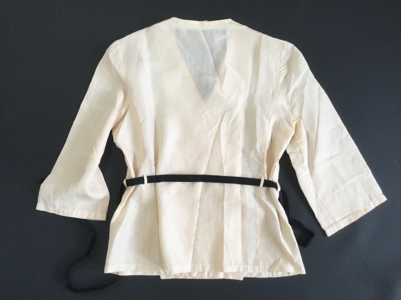 ダブルブレストのゴールドココボタンを配した着物デザインの珍しいお品です。