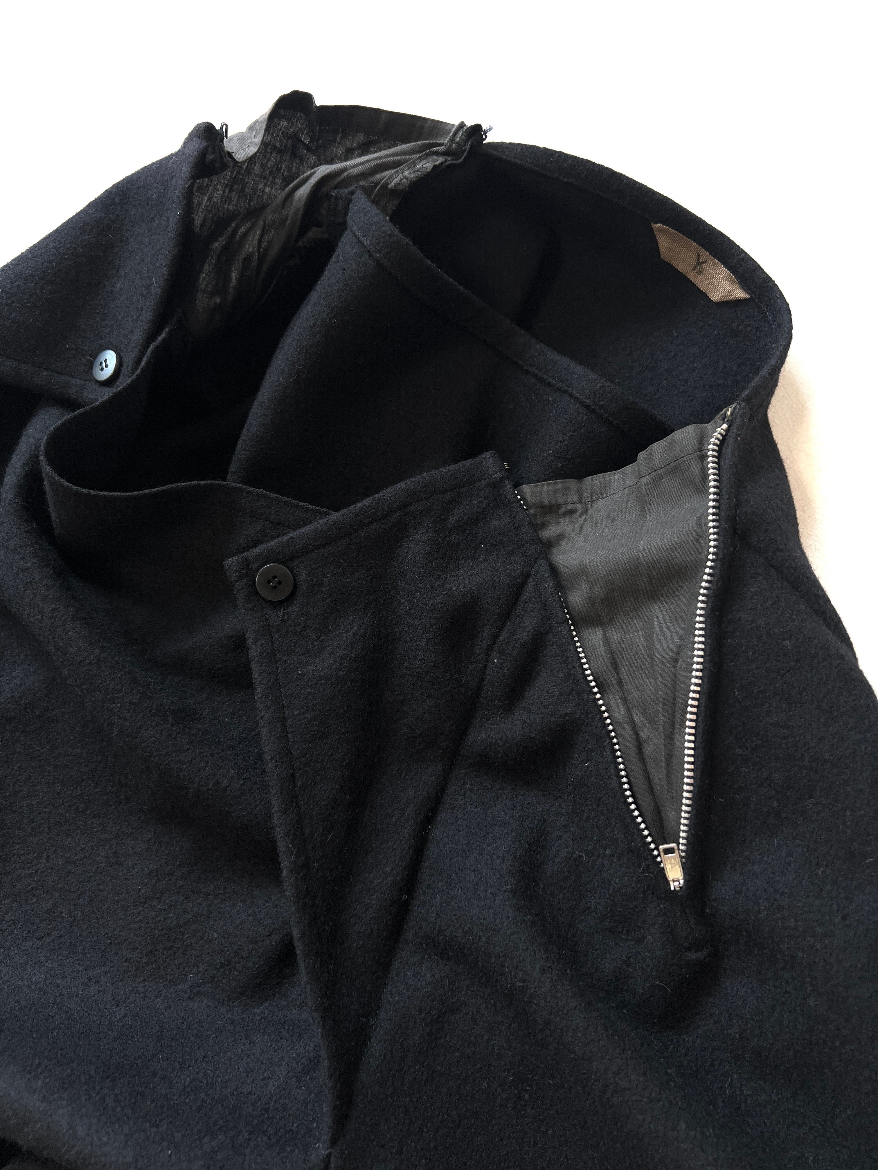 肩周りに施されたデザインが特徴的で、ボタンやジップ開閉によってシルエットに変化をつけられるだけでなく、無機質なメタルジップがウールの質感にエッジを効かせています。
