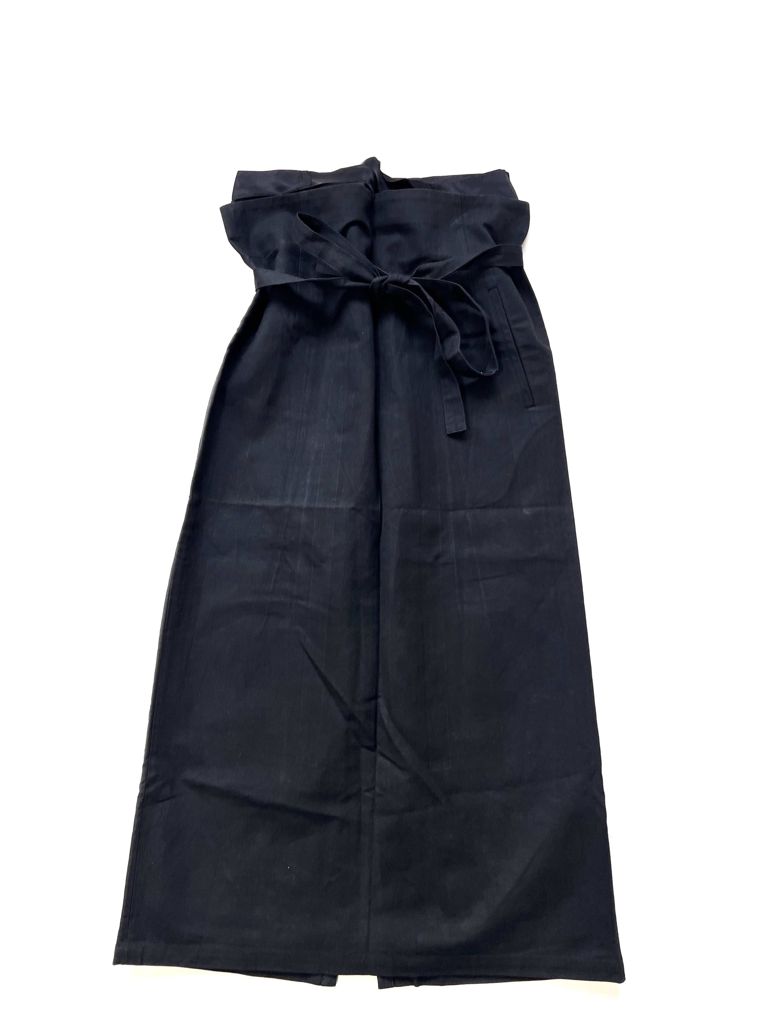 ウエストの紐を絞って着用するラップデザインのため、ハイウエストでタイトに絞ったり、少し腰に落としてラフに穿いたりと、体型や好みに合わせたシルエット調整が可能です。