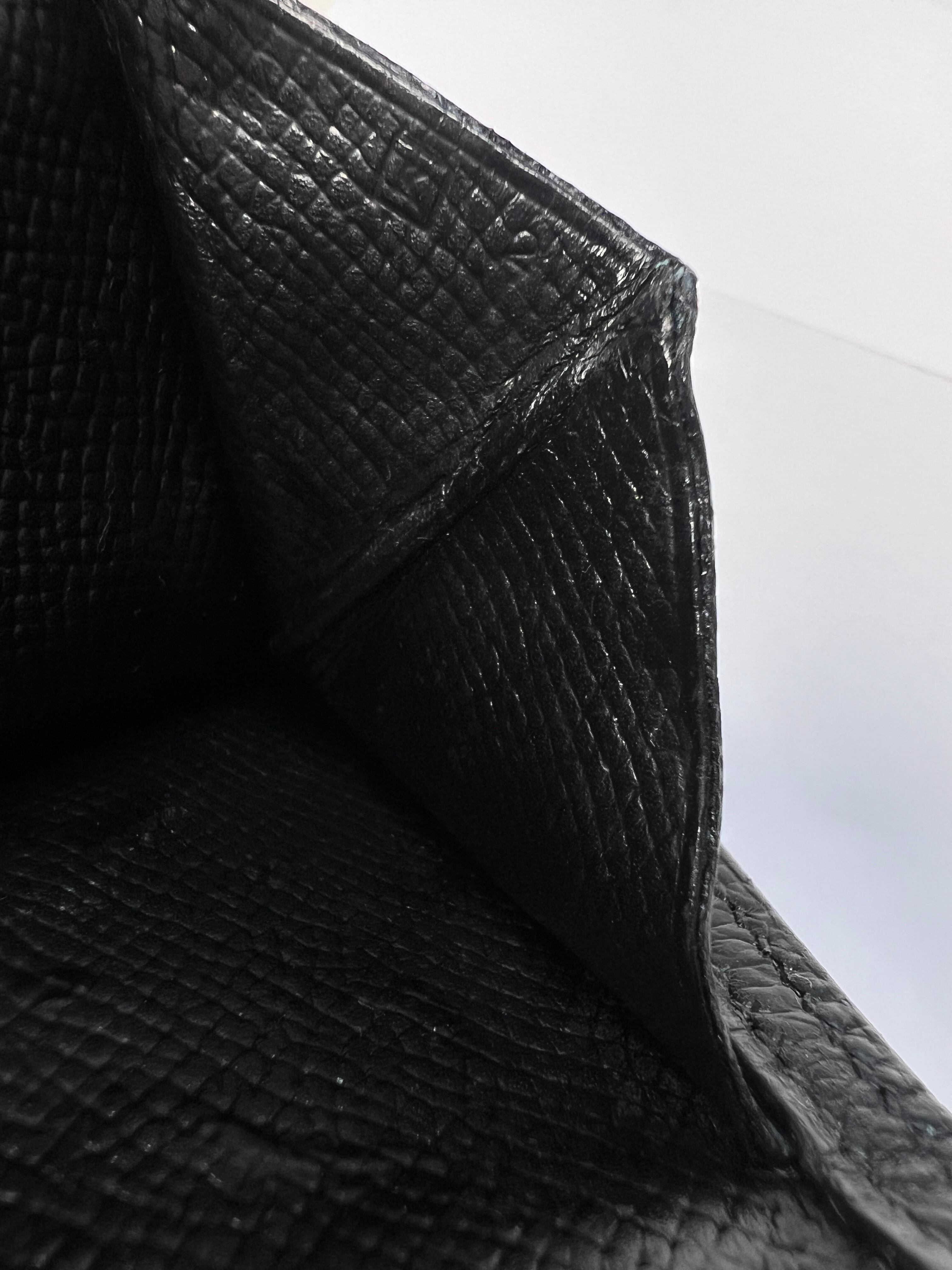全体的に使用感(レザーの馴染み、金具のスレ、微細なステッチの毛羽立ち)はありますが、ベタつきはなく、小銭入れのジップ開閉もスムーズです。