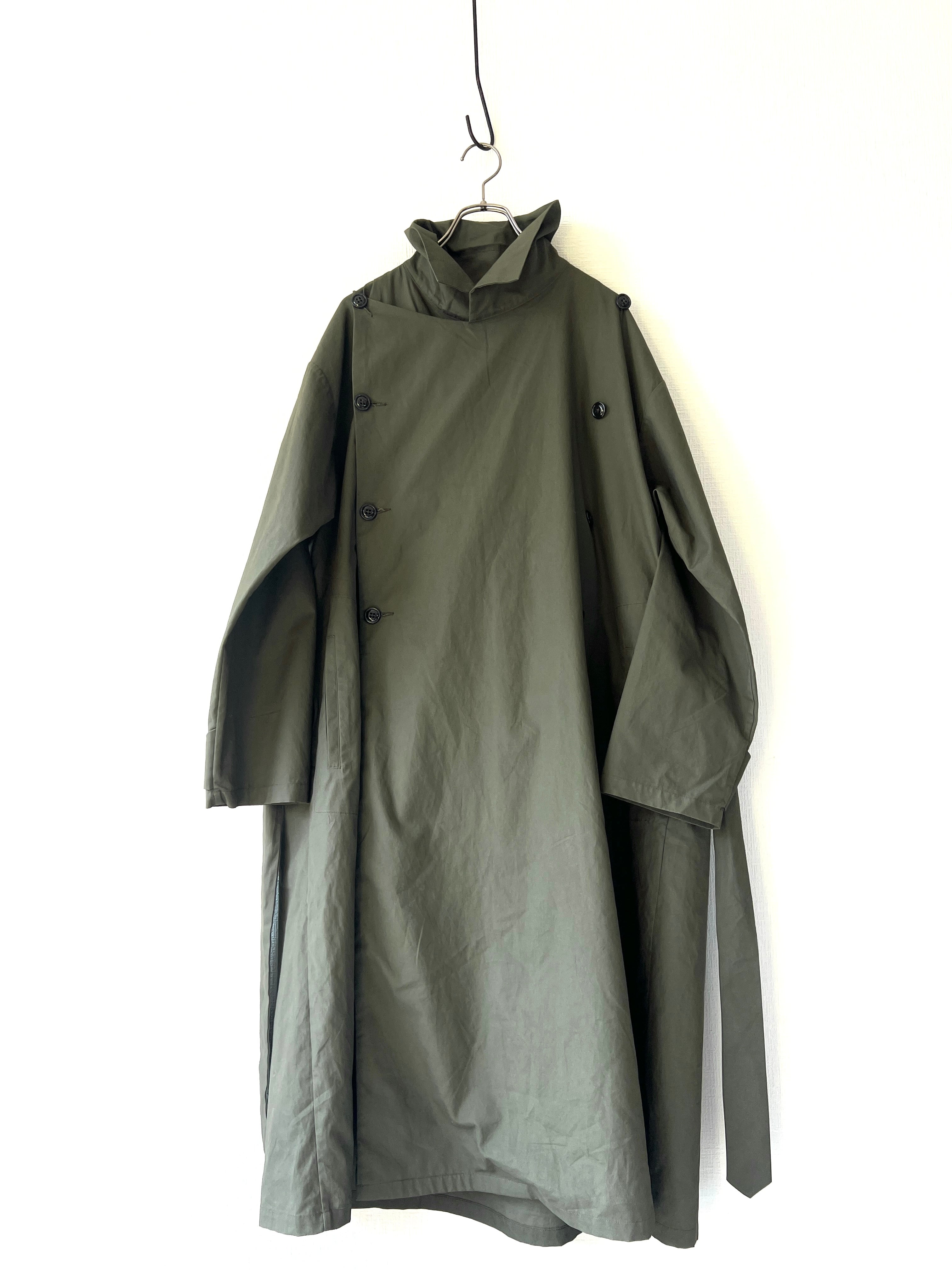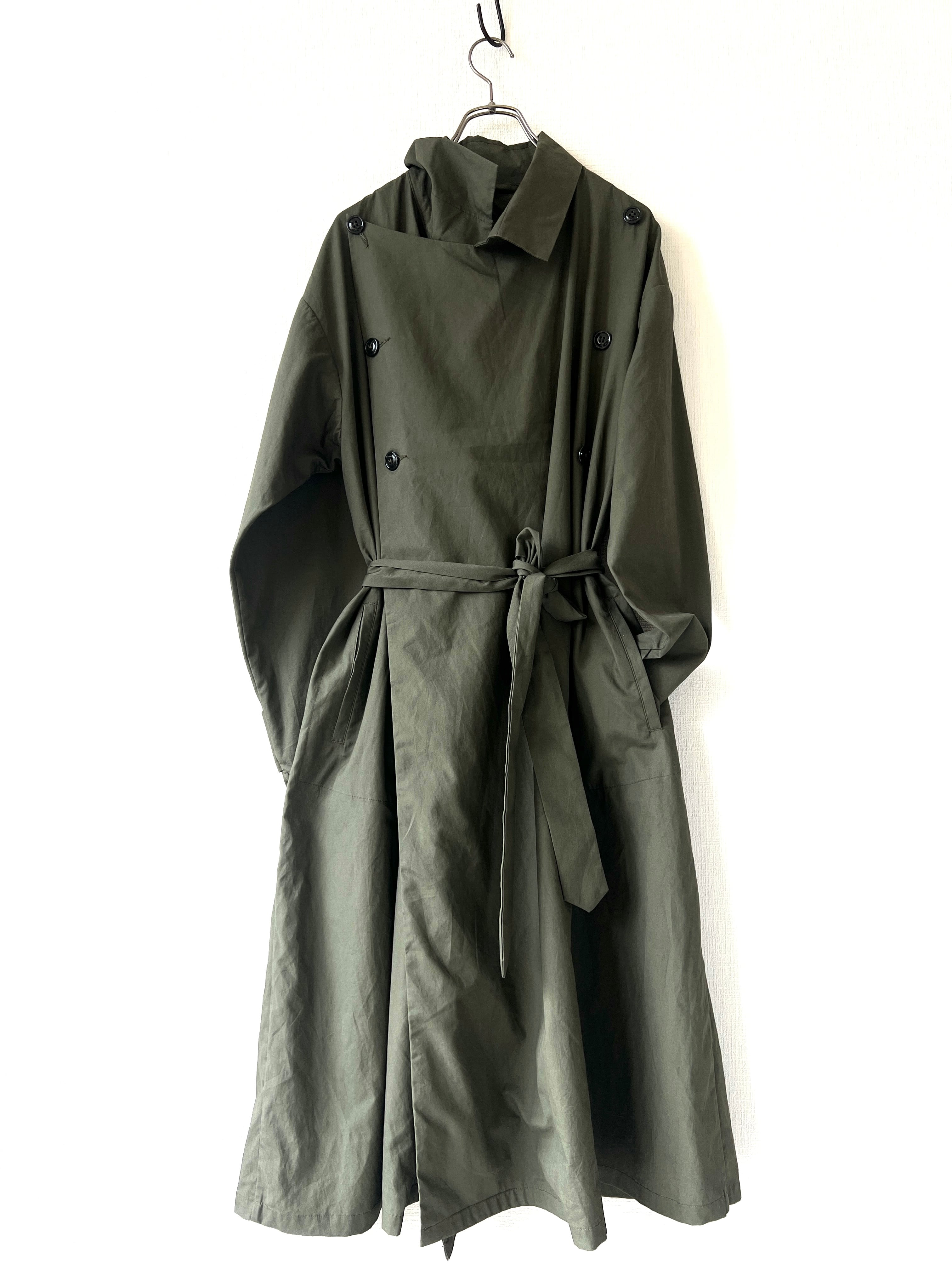 空気を孕むようなワイドな身幅は、ベルトを絞ることでドラマチックなドレープを生み出し、無骨な軍モノの印象を「洗練されたモード」へと一変させます。また、取り外し可能なウールライナーにより、冷え込む冬から軽快なスプリングコートとしても。