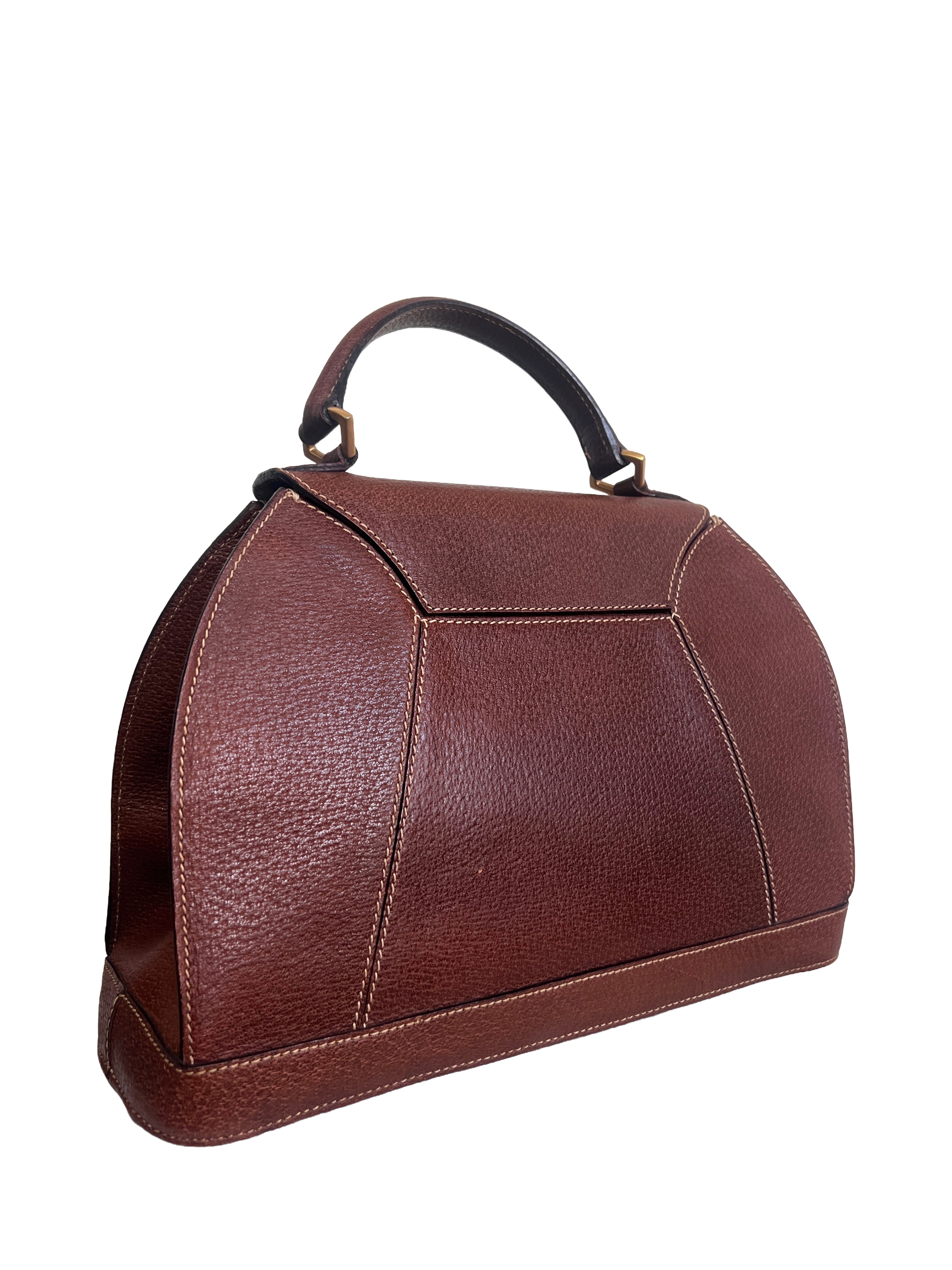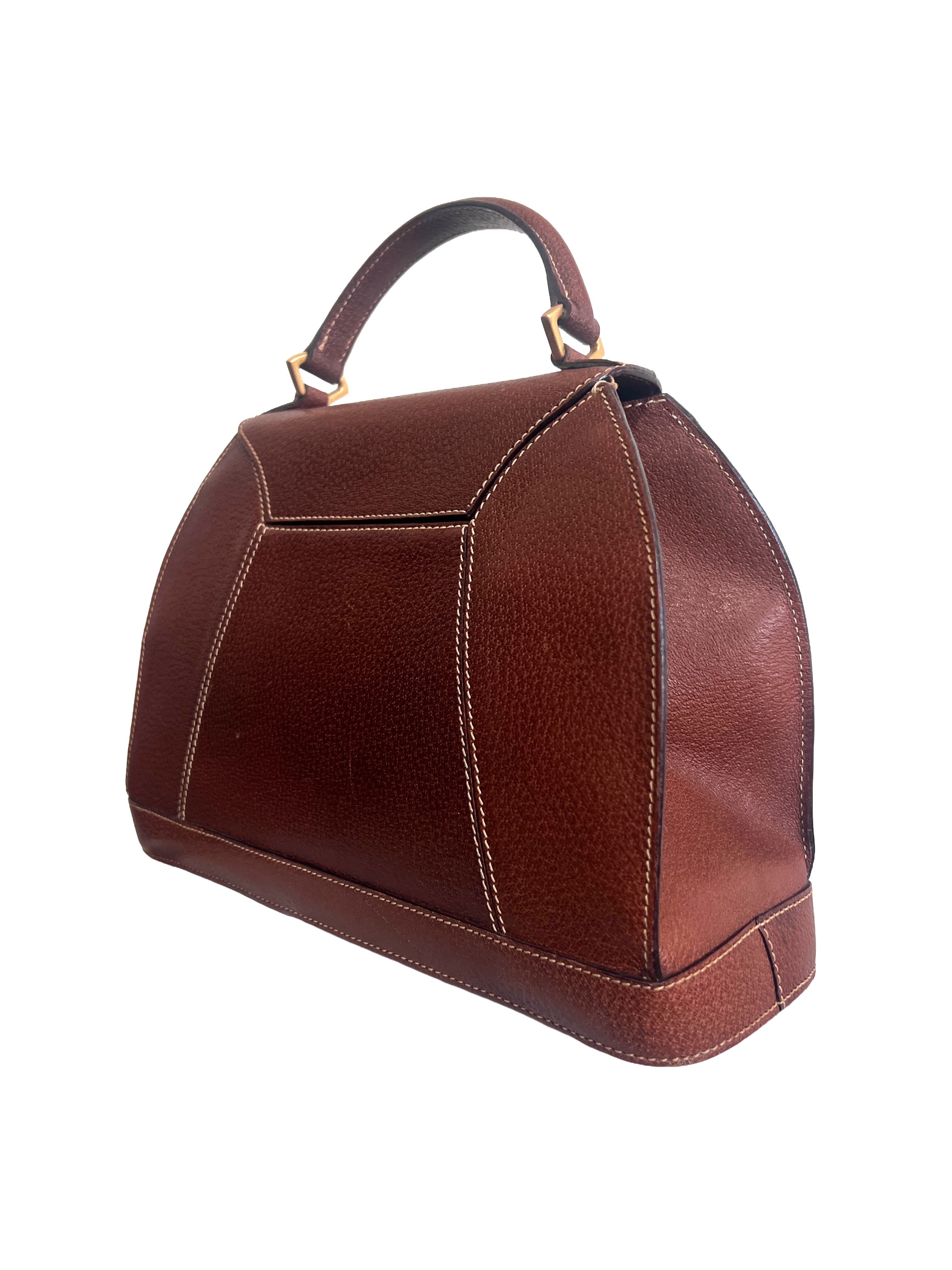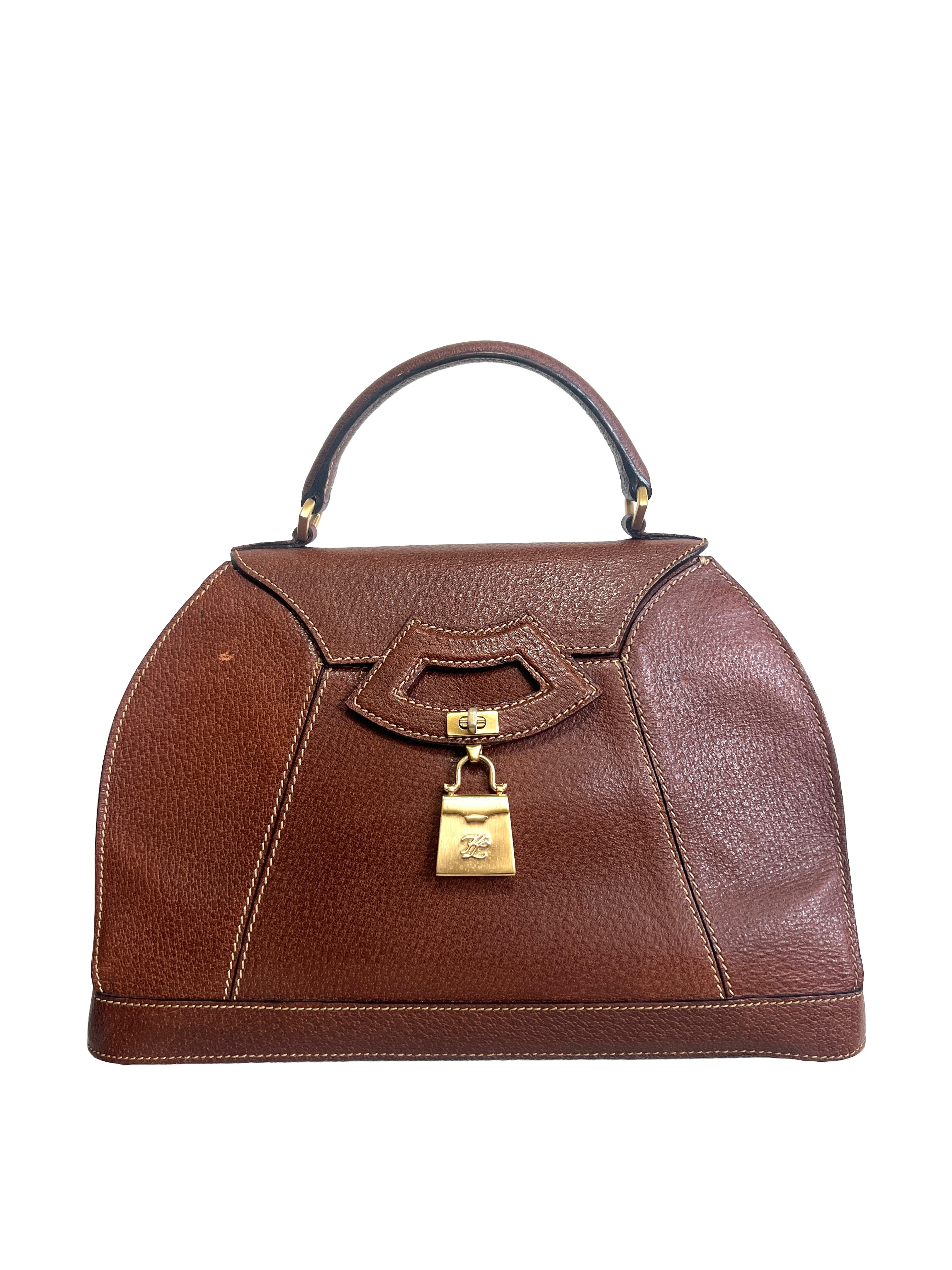 1980's Karl Lagerfeld Brown Leather Handbag with zip Compartment Gold Logo