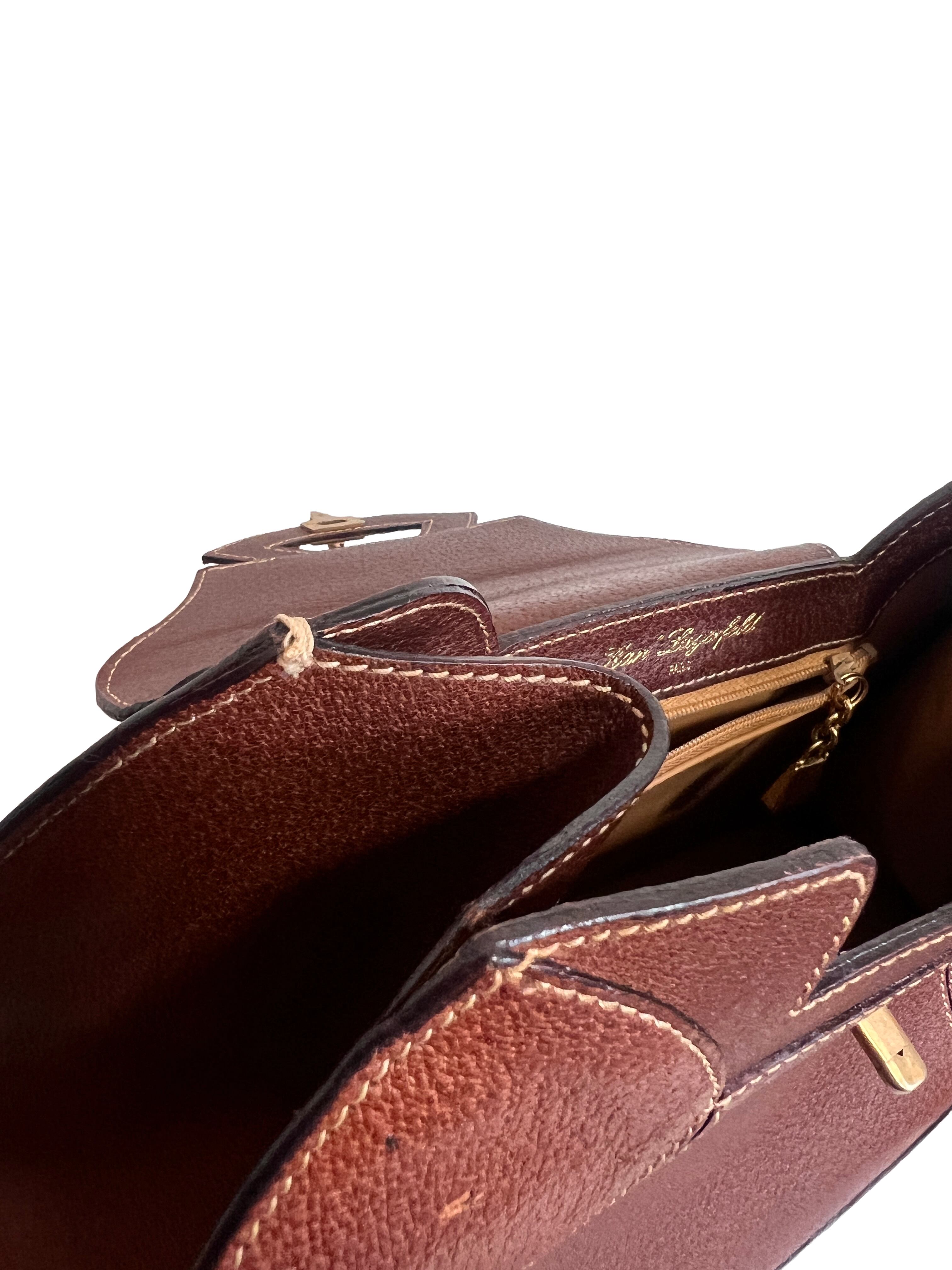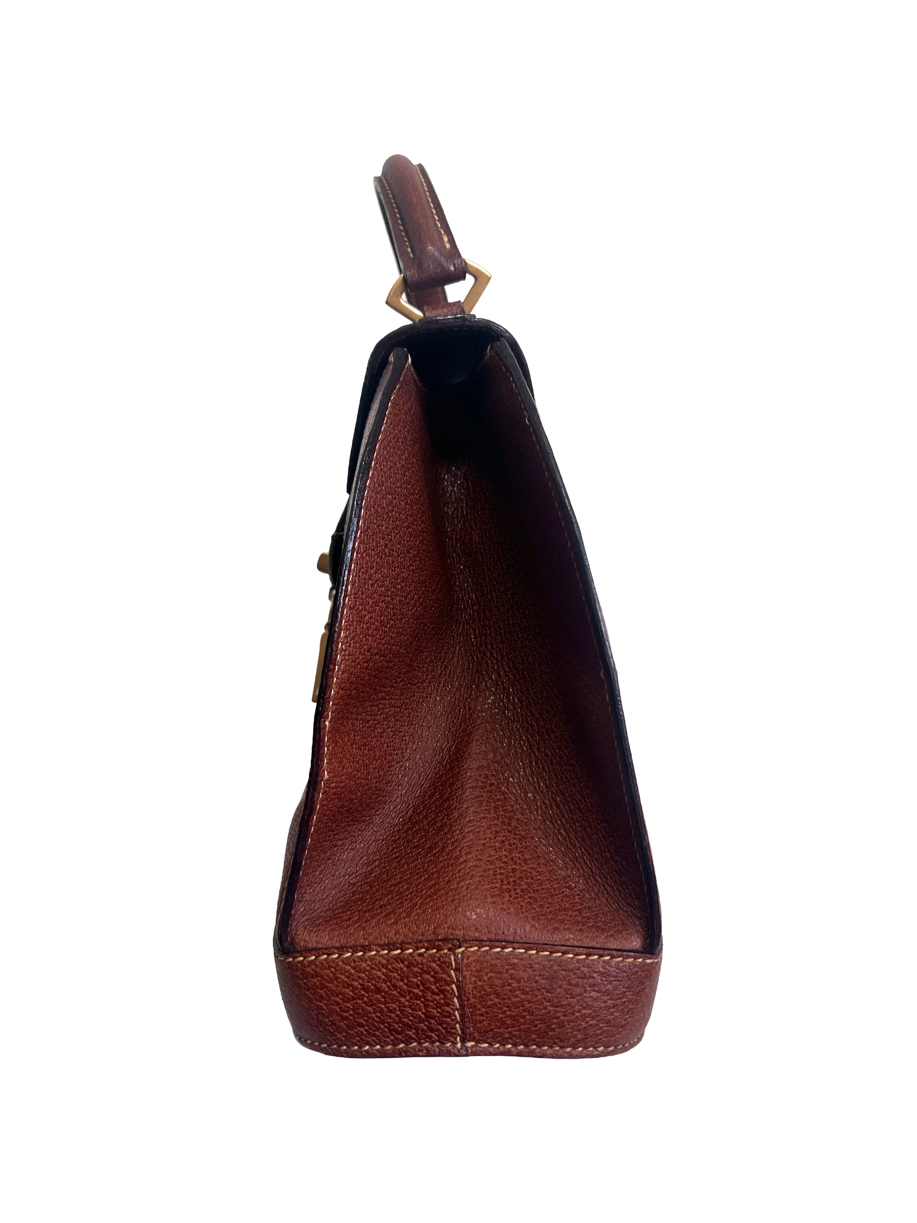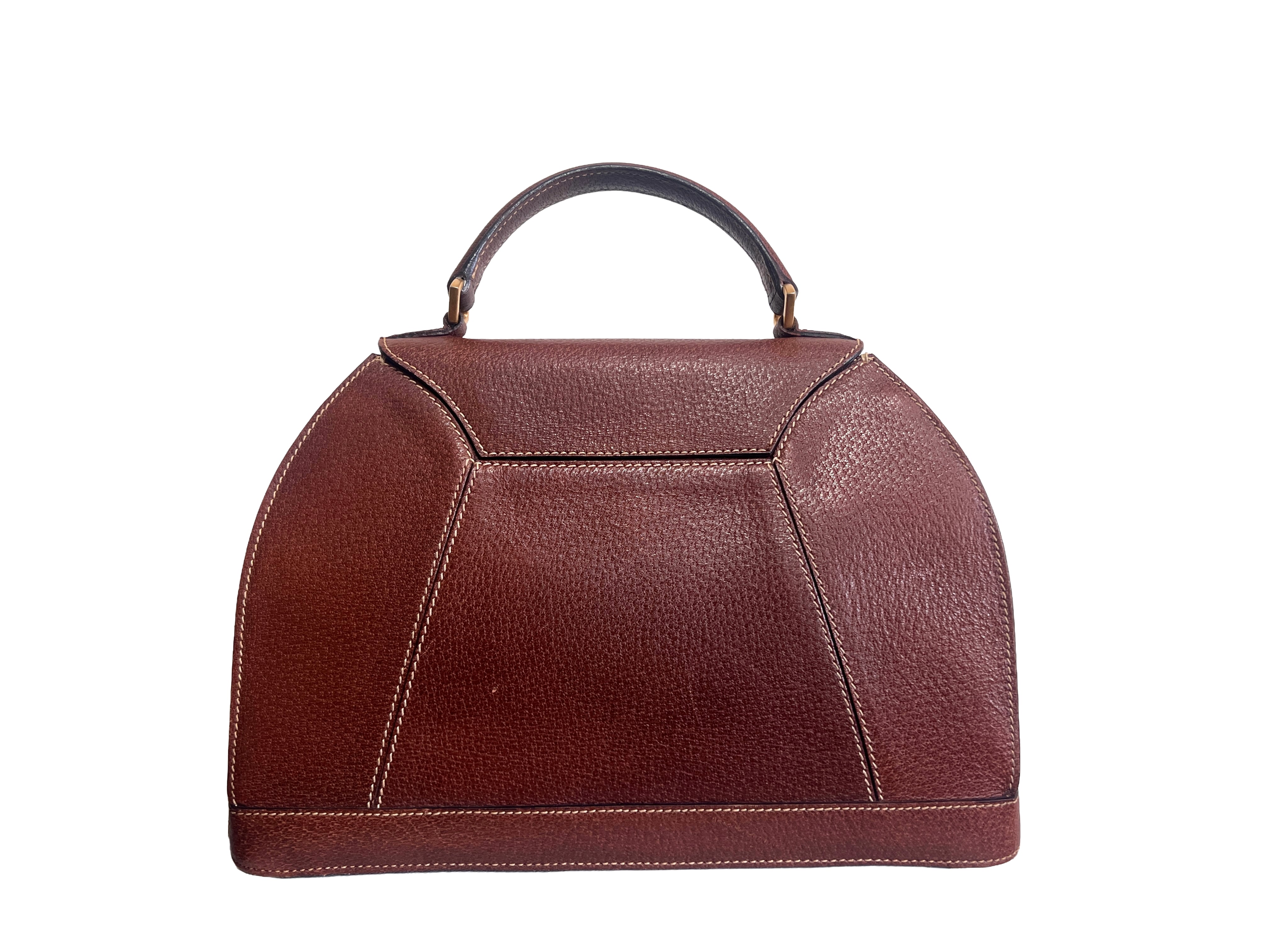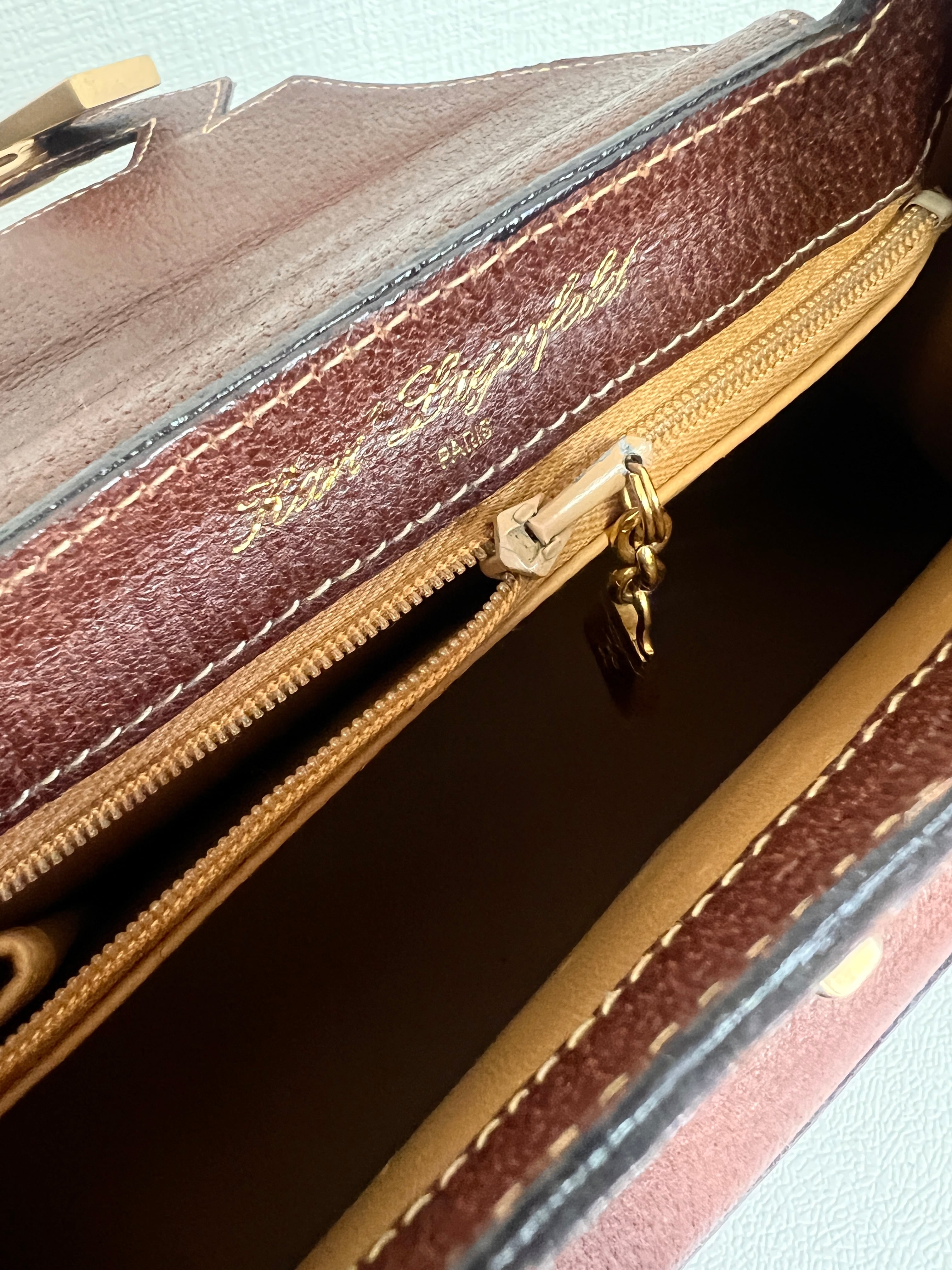 1980's Karl Lagerfeld Brown Leather Handbag with zip Compartment Gold Logo