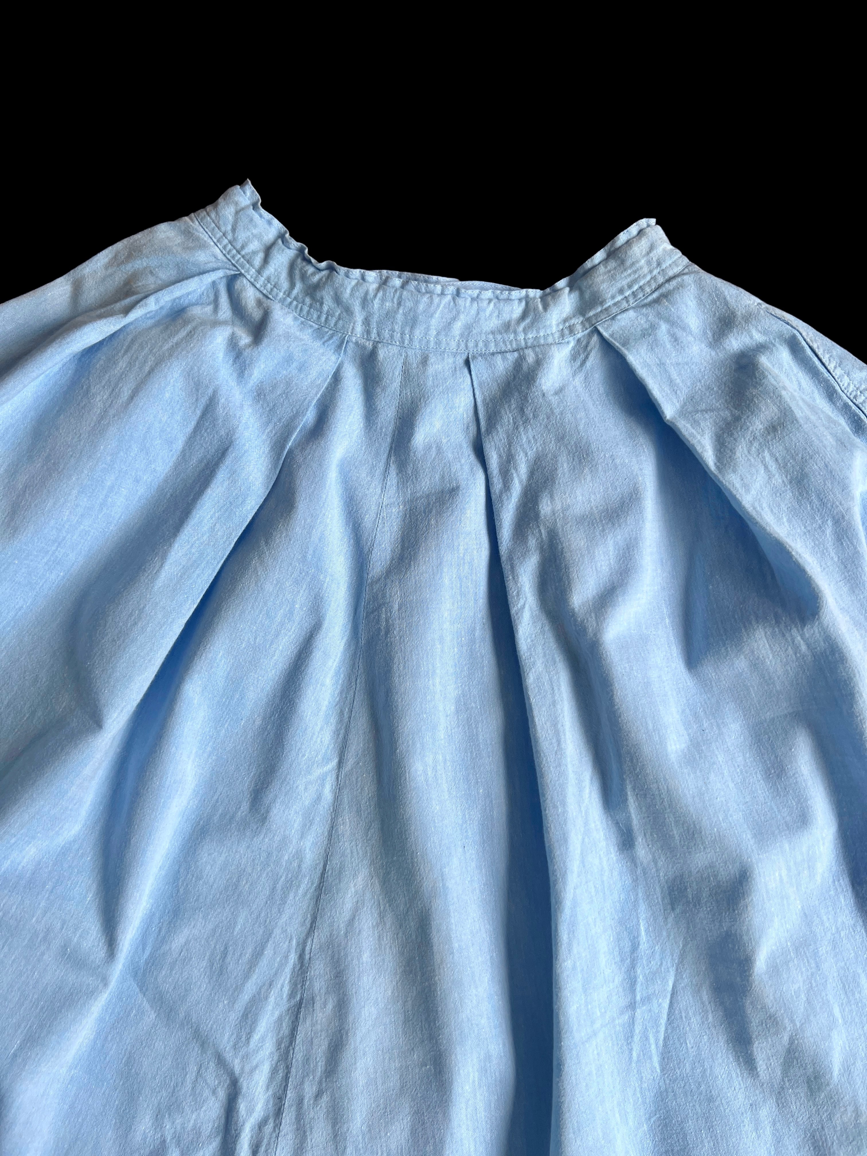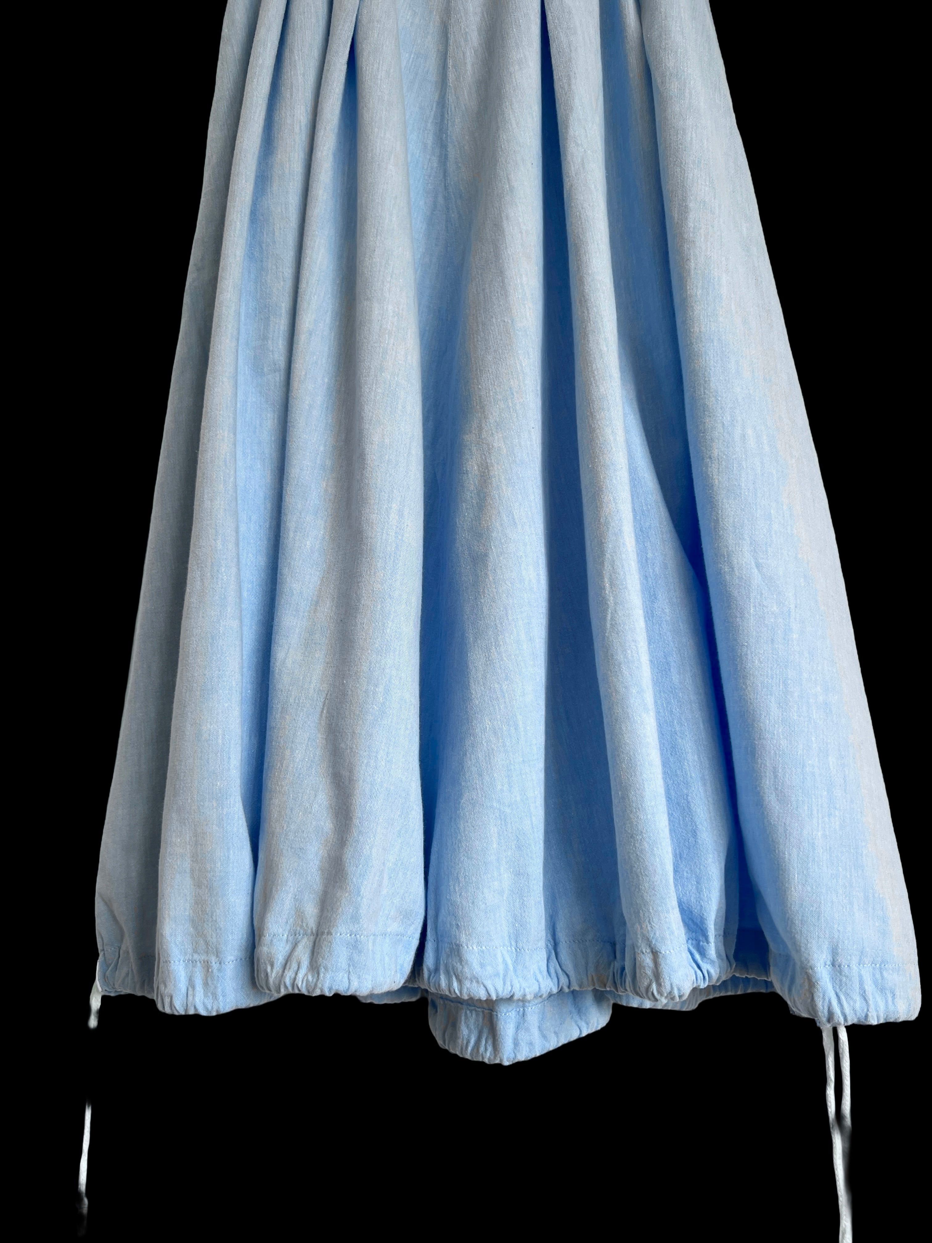 清涼感のあるスカイブルーのコットンシャンブレー。さらりとした肌触りで、春夏シーズンに適した質感です。