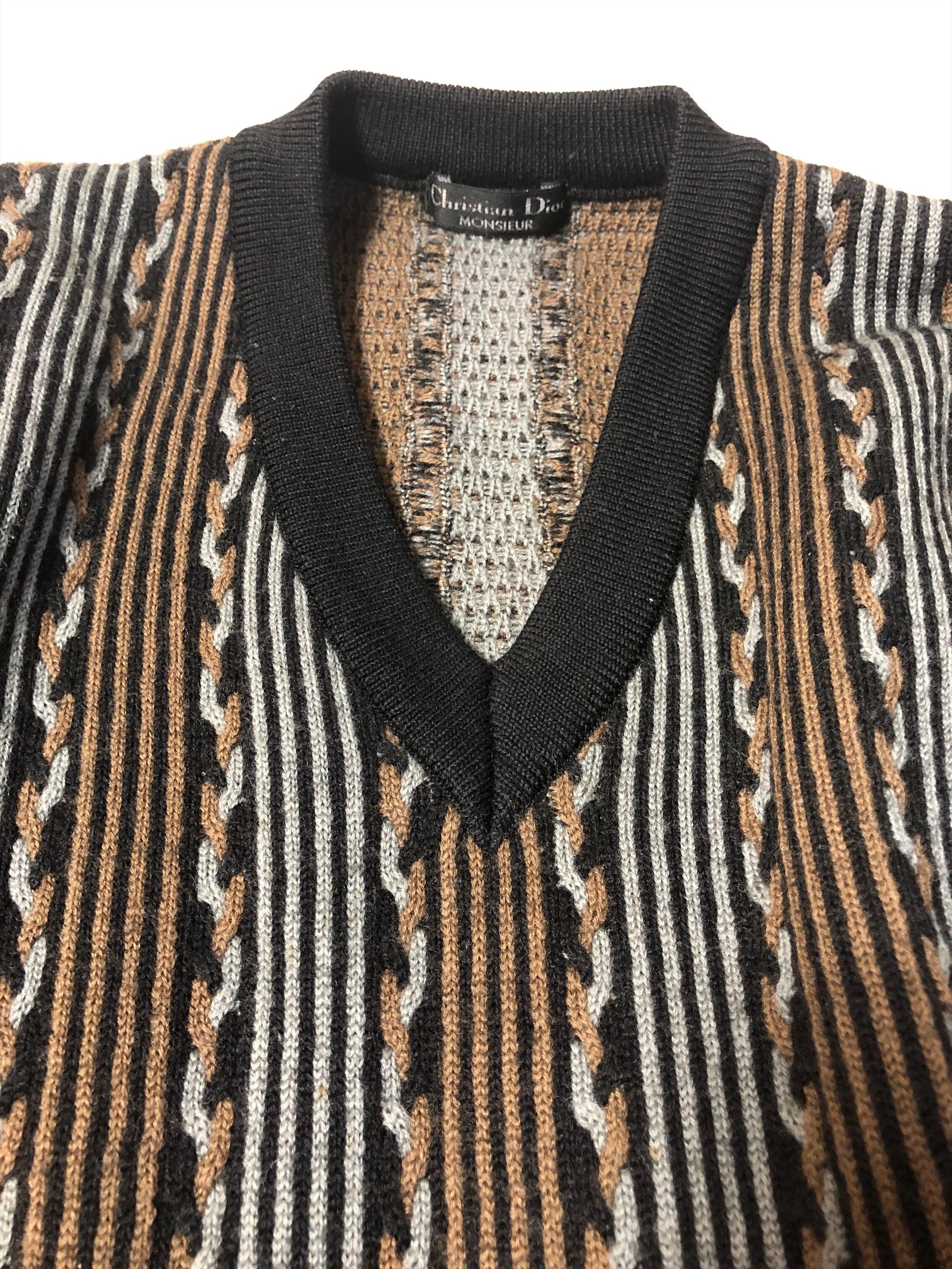 三つ編みロープのストライプに黒、グレー、ブラウンの組み合わせがシックな雰囲気のニットです!!