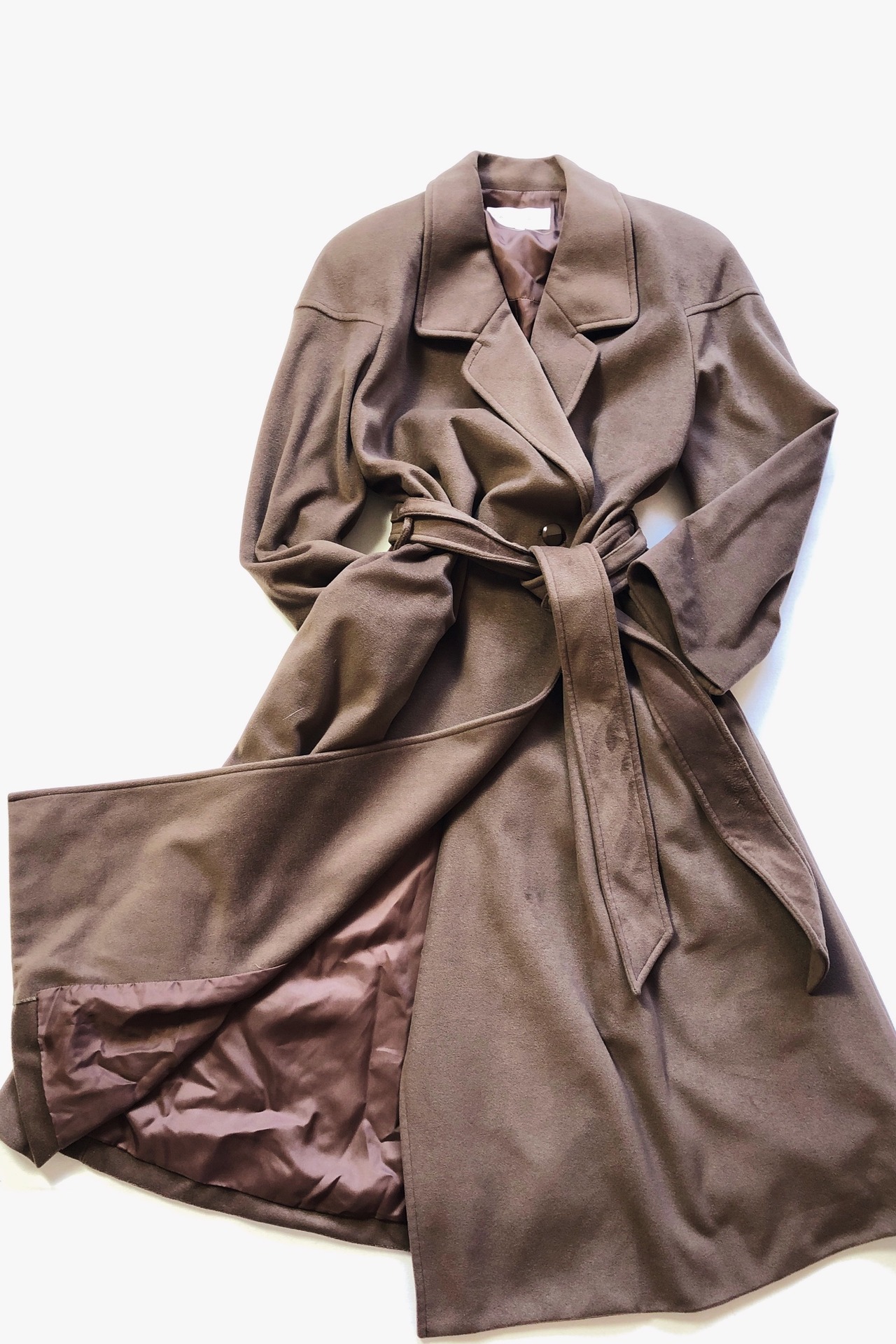 上質で軽く暖かなモールスキン素材のベルテッドコート!