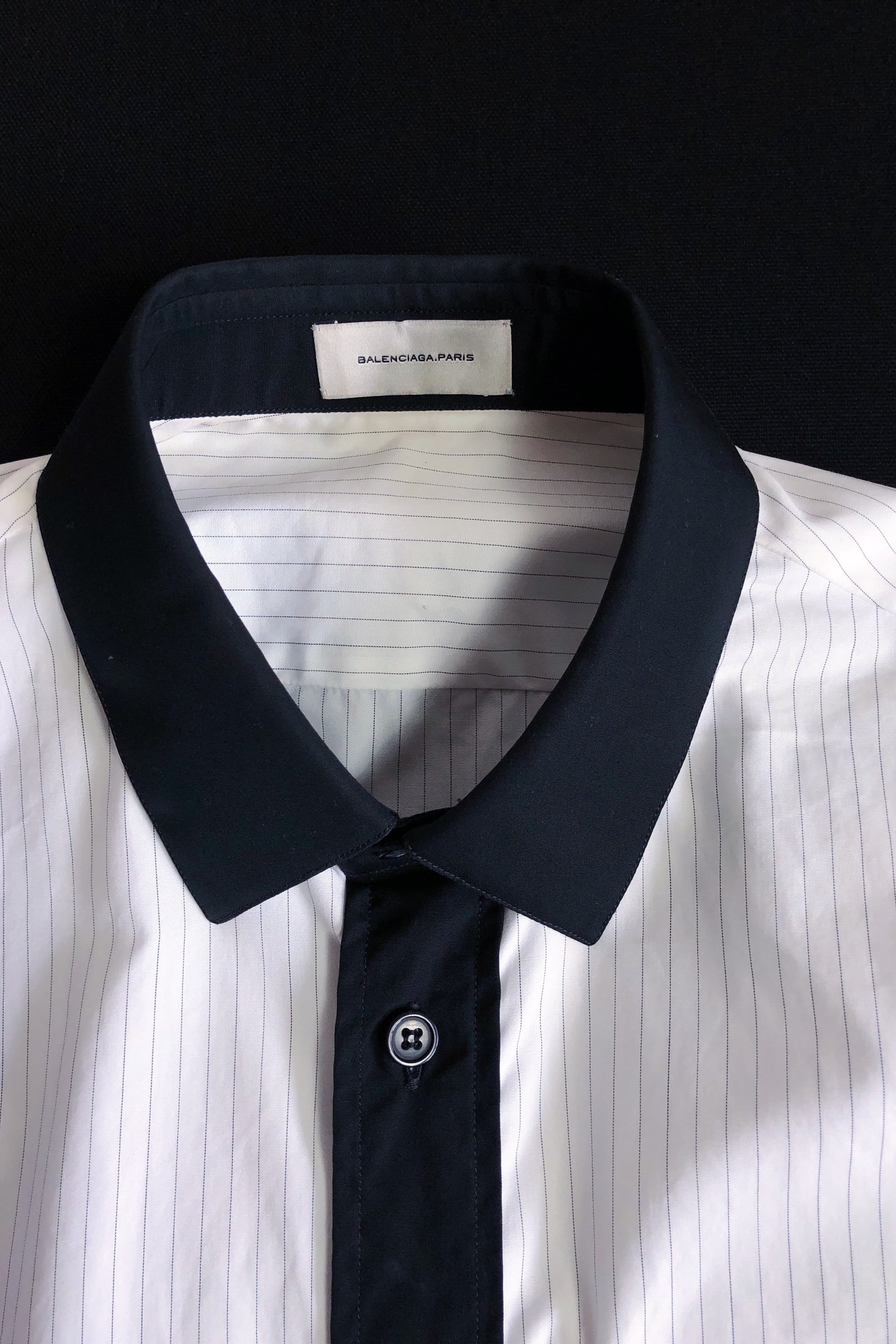 ◆シックな黒襟がハンサムなバレンシアガのクレリックシャツ。