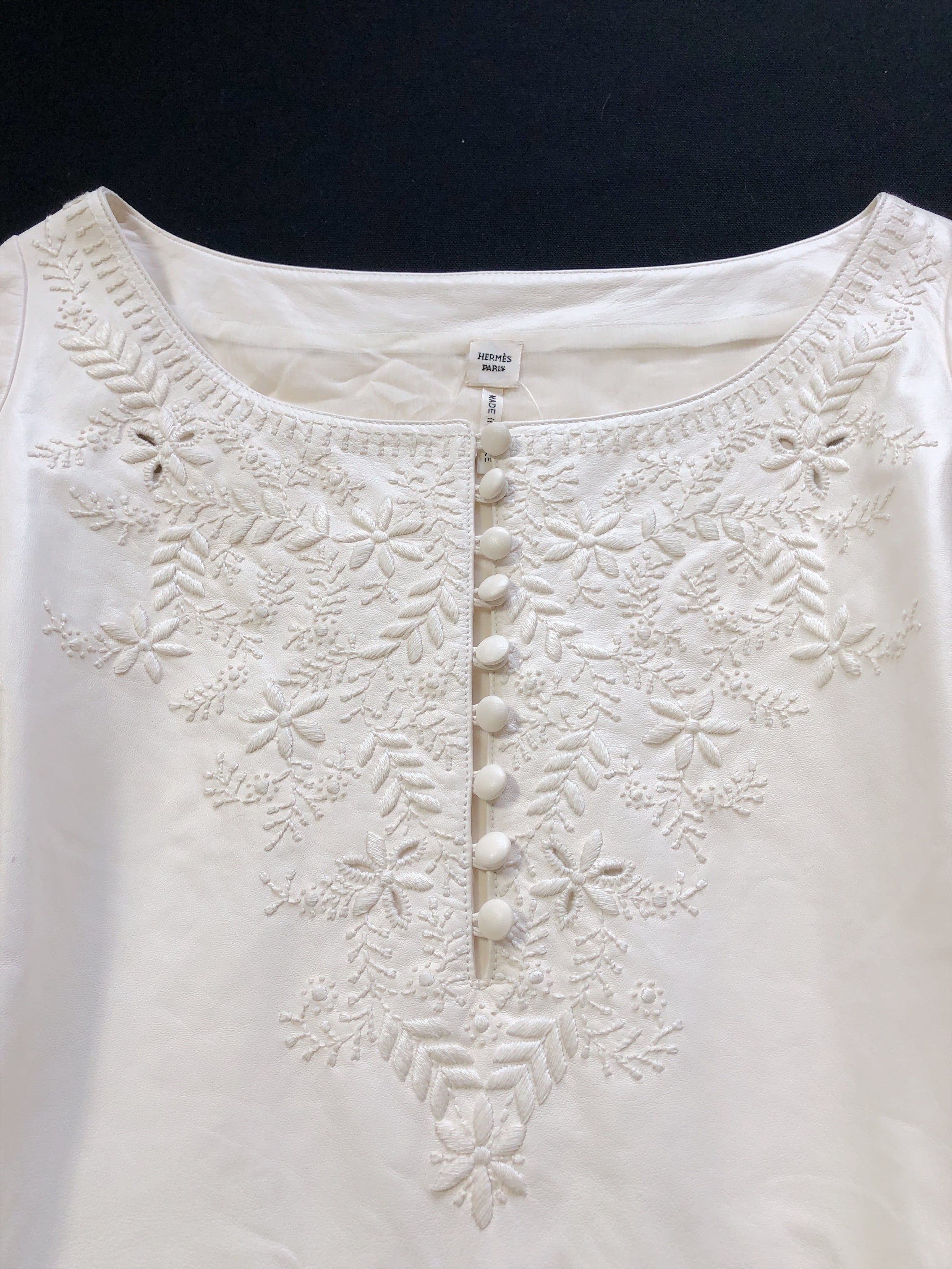 ◆しなやかで極上のラムスキンに繊細で美しい刺繍を施したアイボリーカラーのレザーチュニック!