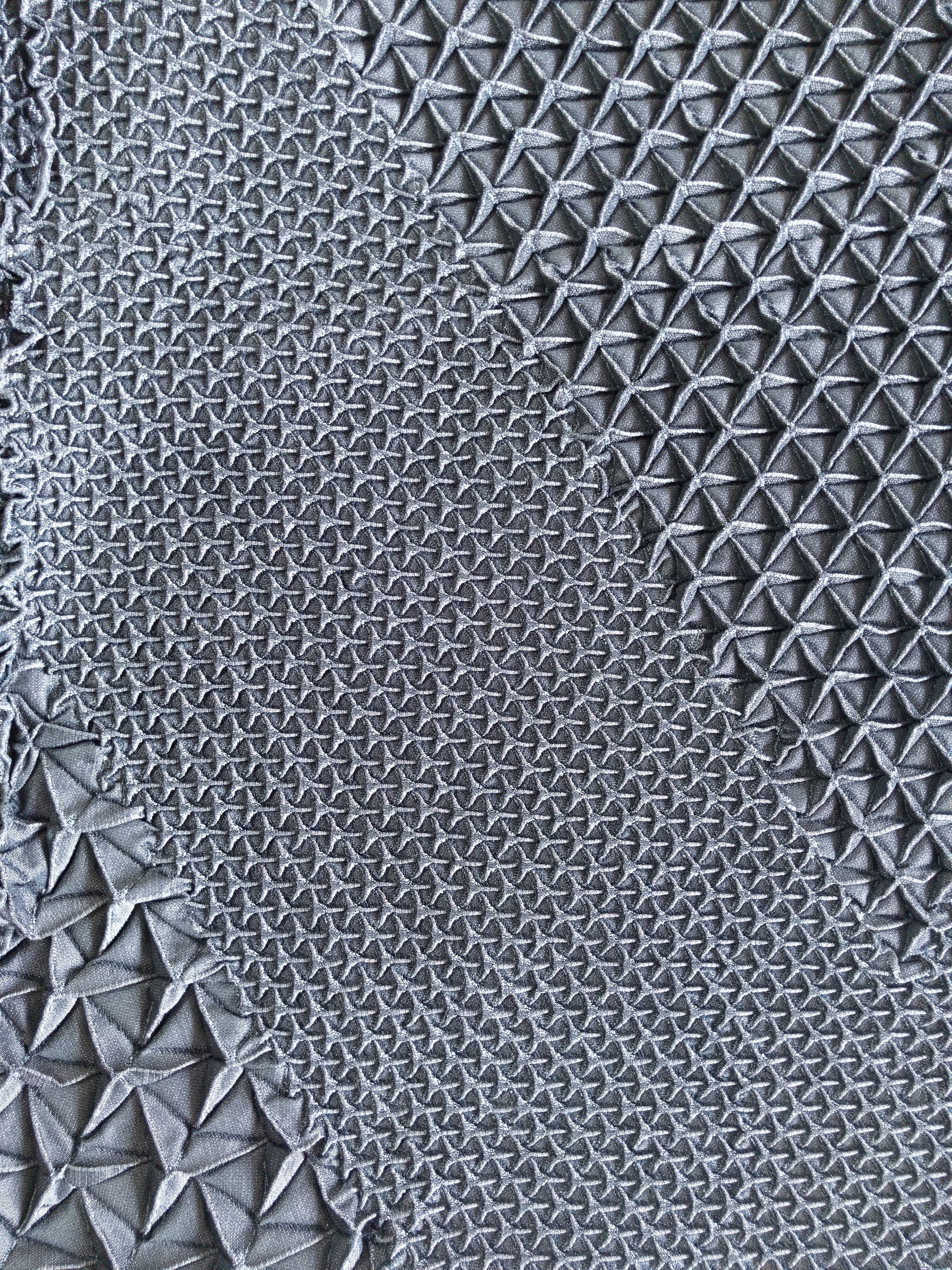 多面体のテキスタイルを用いて三角形を立体的に組み合わせ造り出した3Dスチームストレッチ