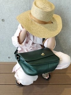 オールドコーチというとブラウンやネイビーのカラーが定番ですが希少なディープグリーンカラーはコーディネートのポイントになる逸品です。
