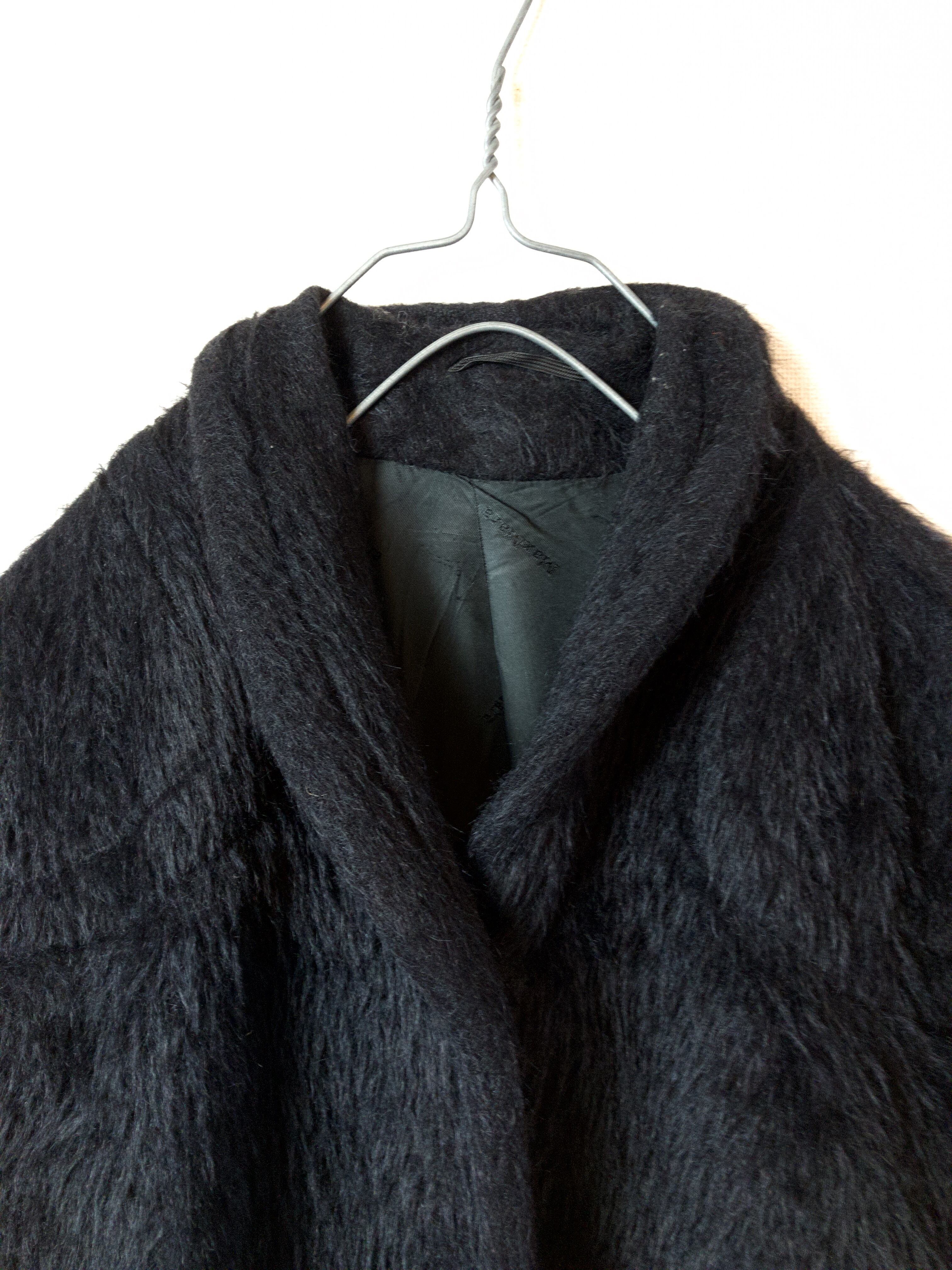 トーンダウンしたブラックに毛足の長いアルパカ混ヘアで適度なラグジュアリー感を演出